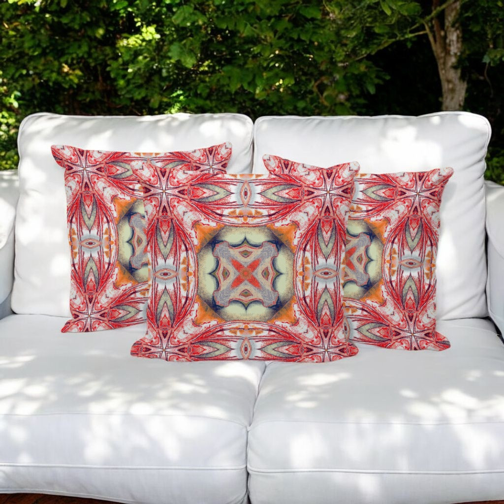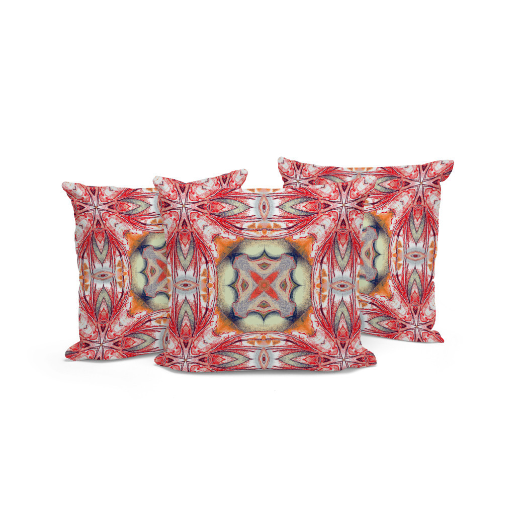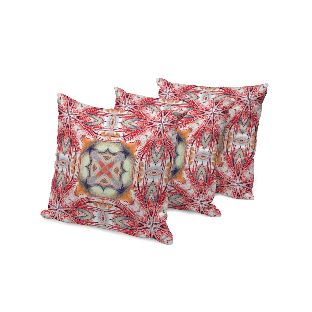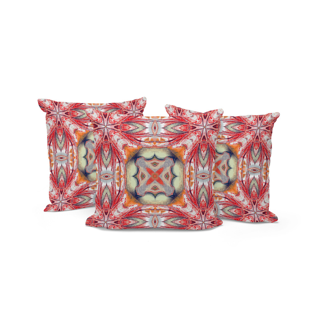 Set of Three Red Abstract Indoor Outdoor Throw Pillow