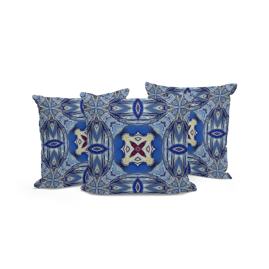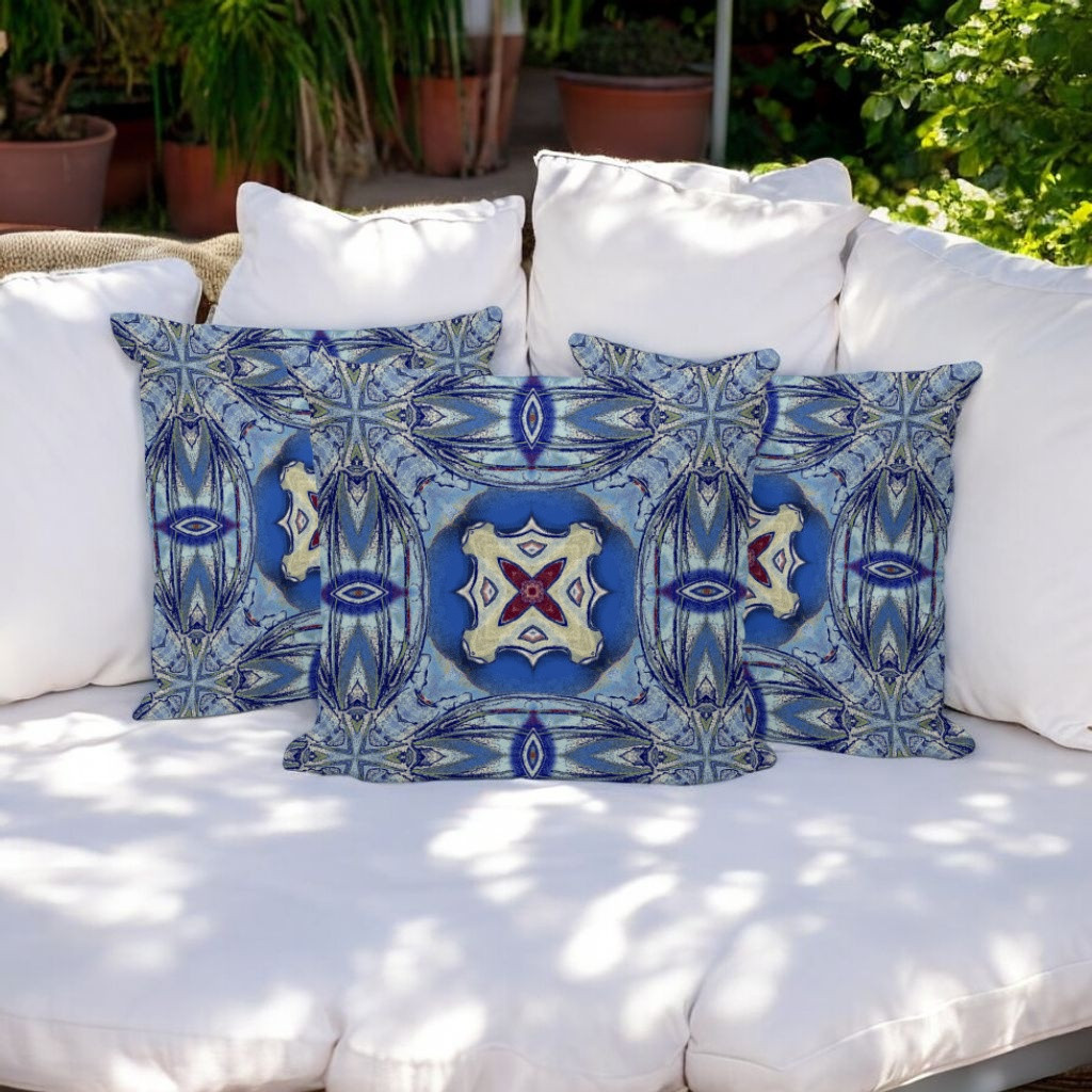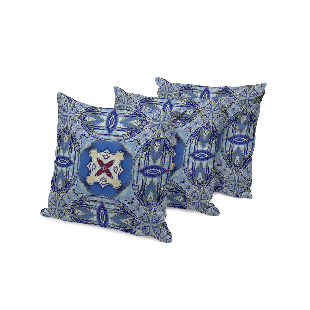 Set of Three Blue Abstract Indoor Outdoor Throw Pillow