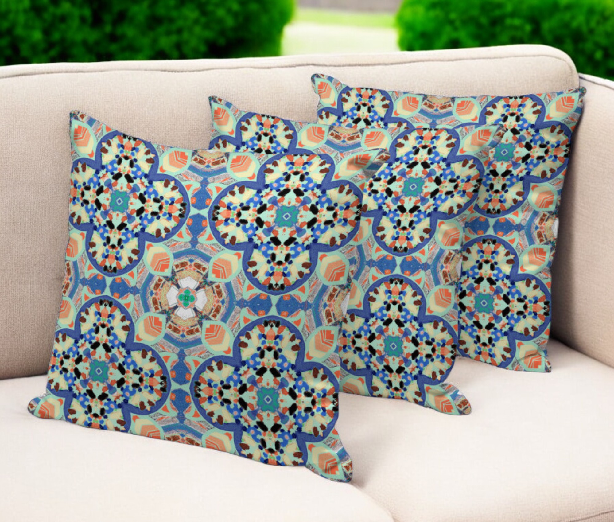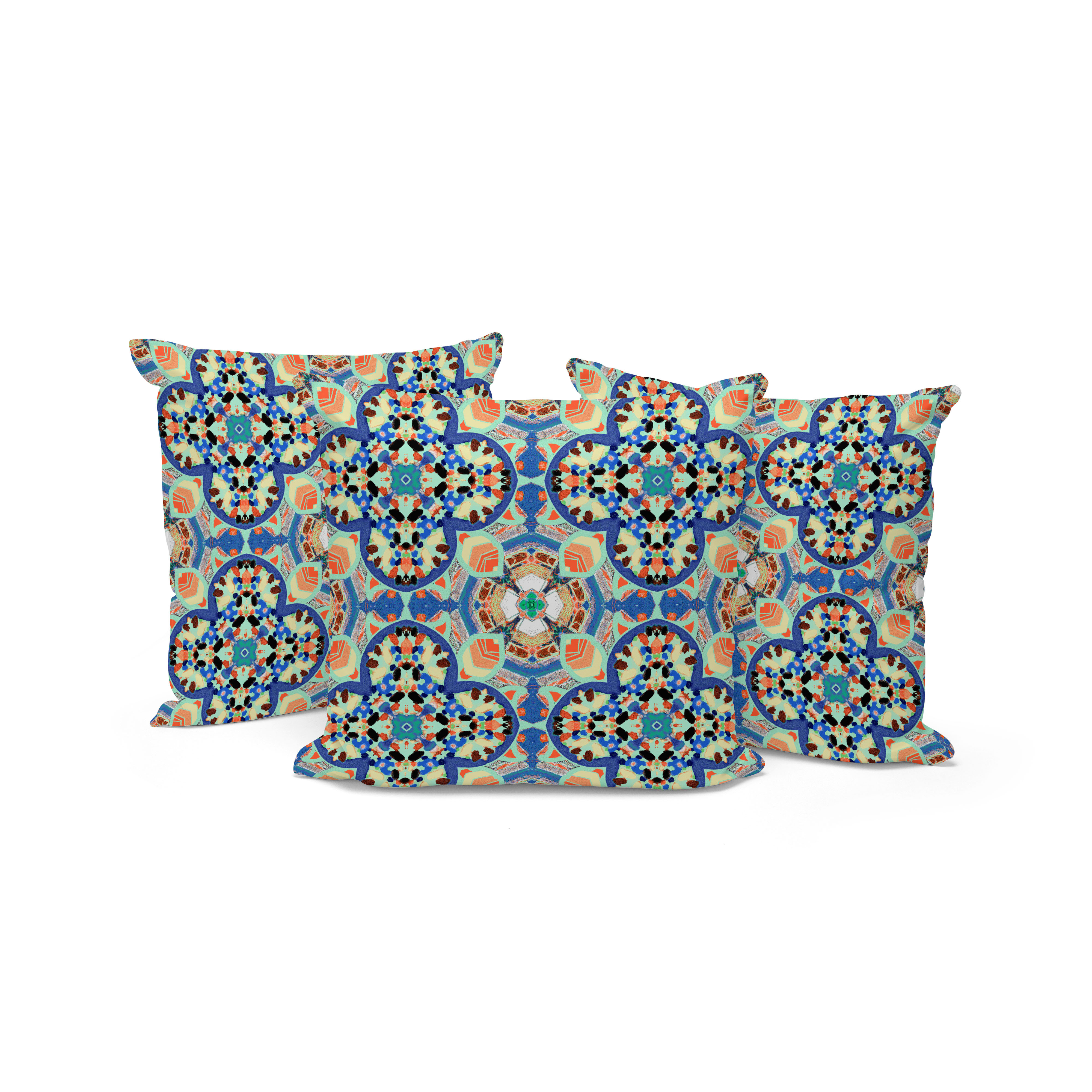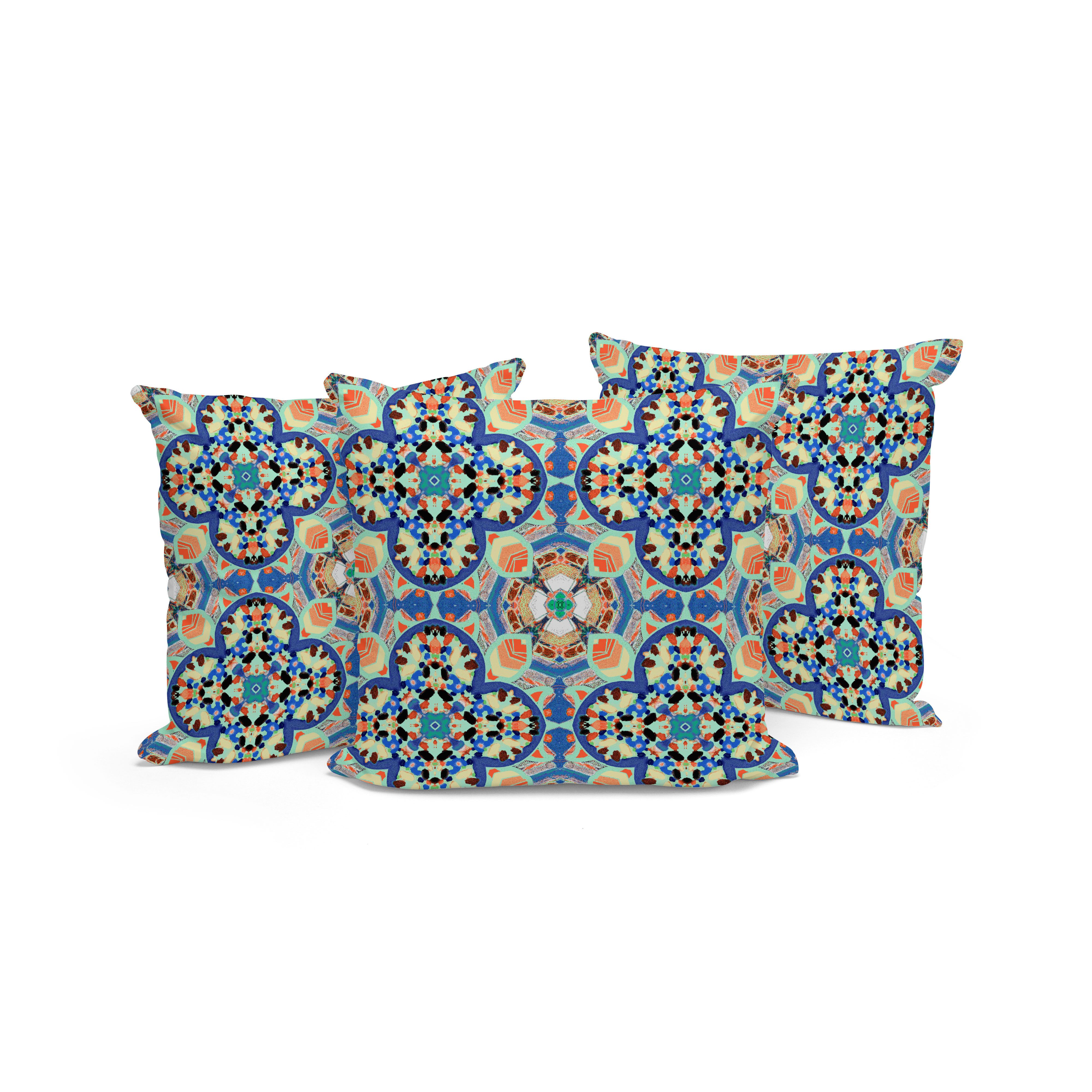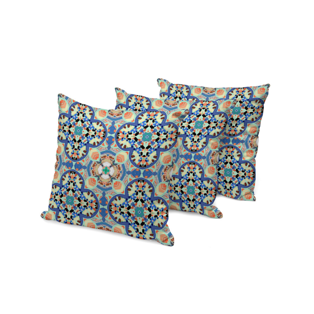 Clover Leaf Floral Indoor/Outdoor Set of 3 Pillows in Blue Purple Peach