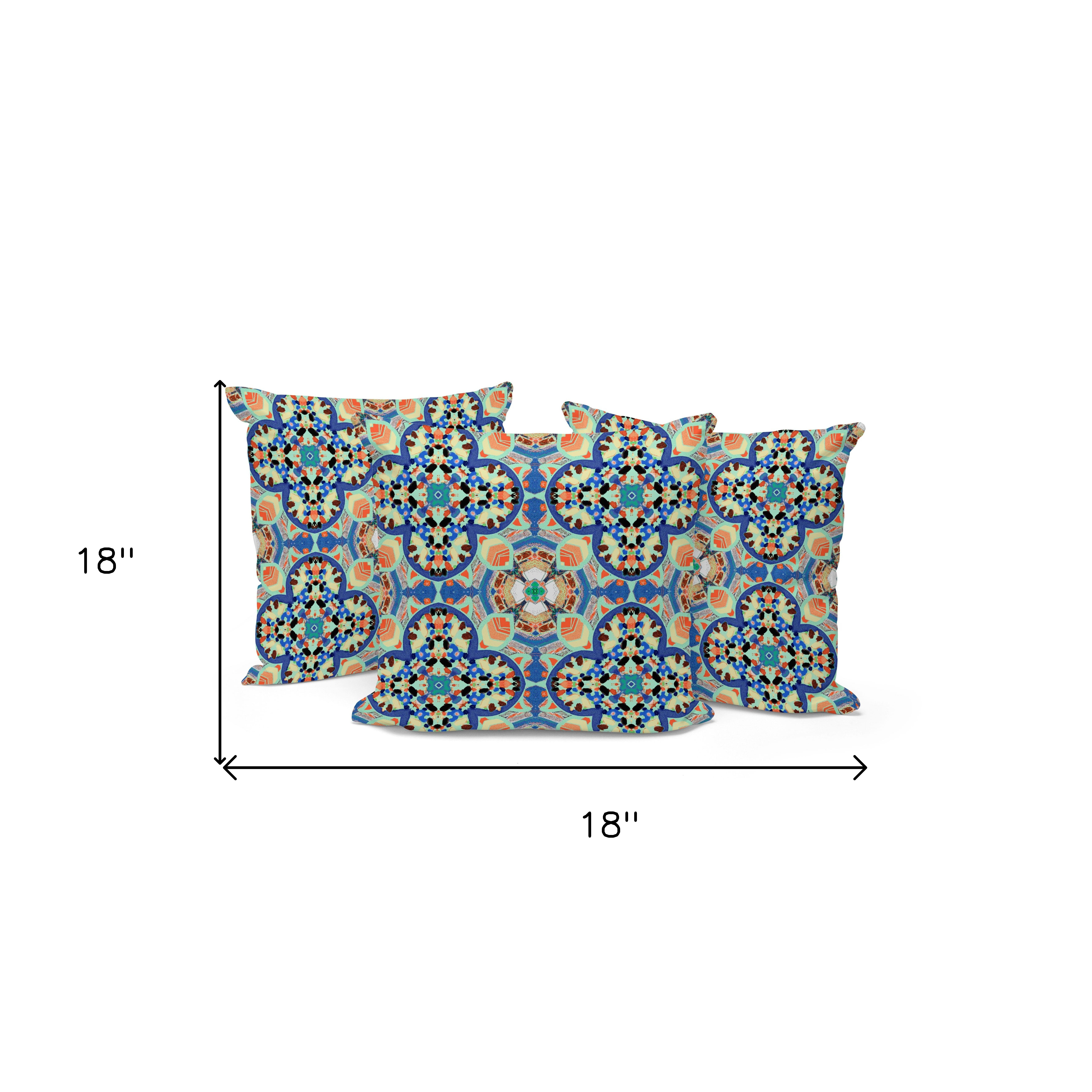 Set of Three Blue Botanical Indoor Outdoor Throw Pillow