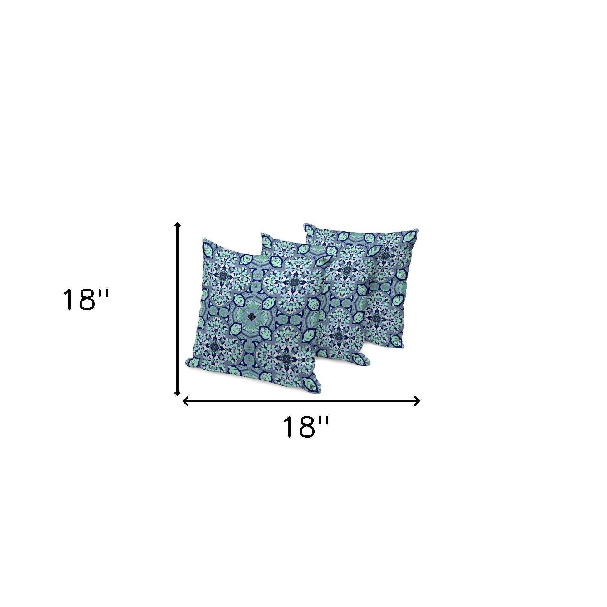 Set of Three Blue Botanical Indoor Outdoor Throw Pillow