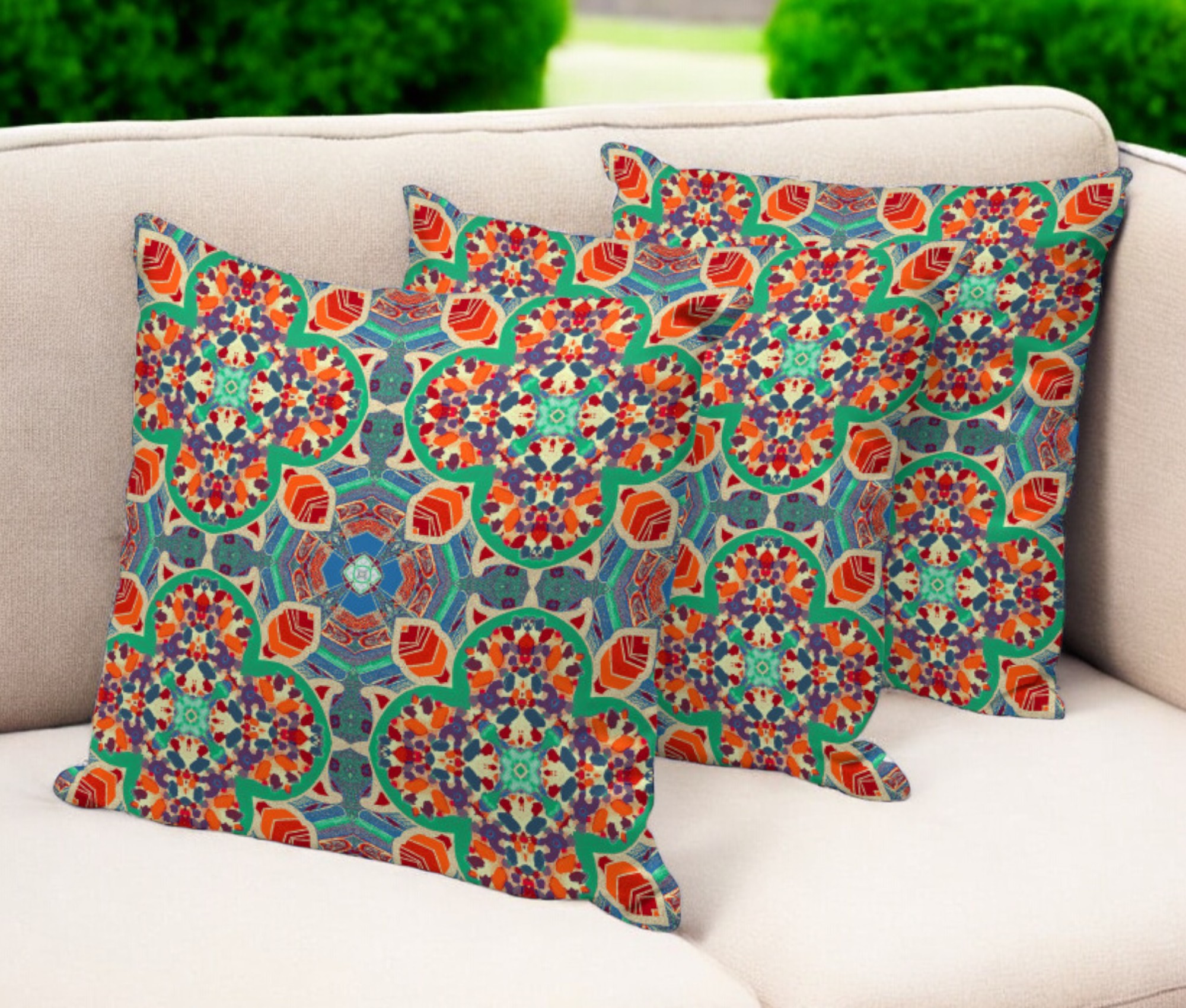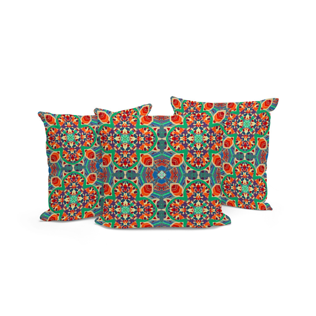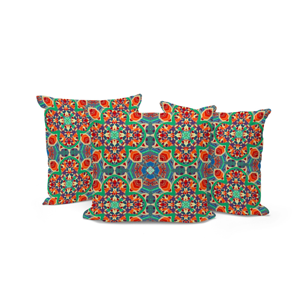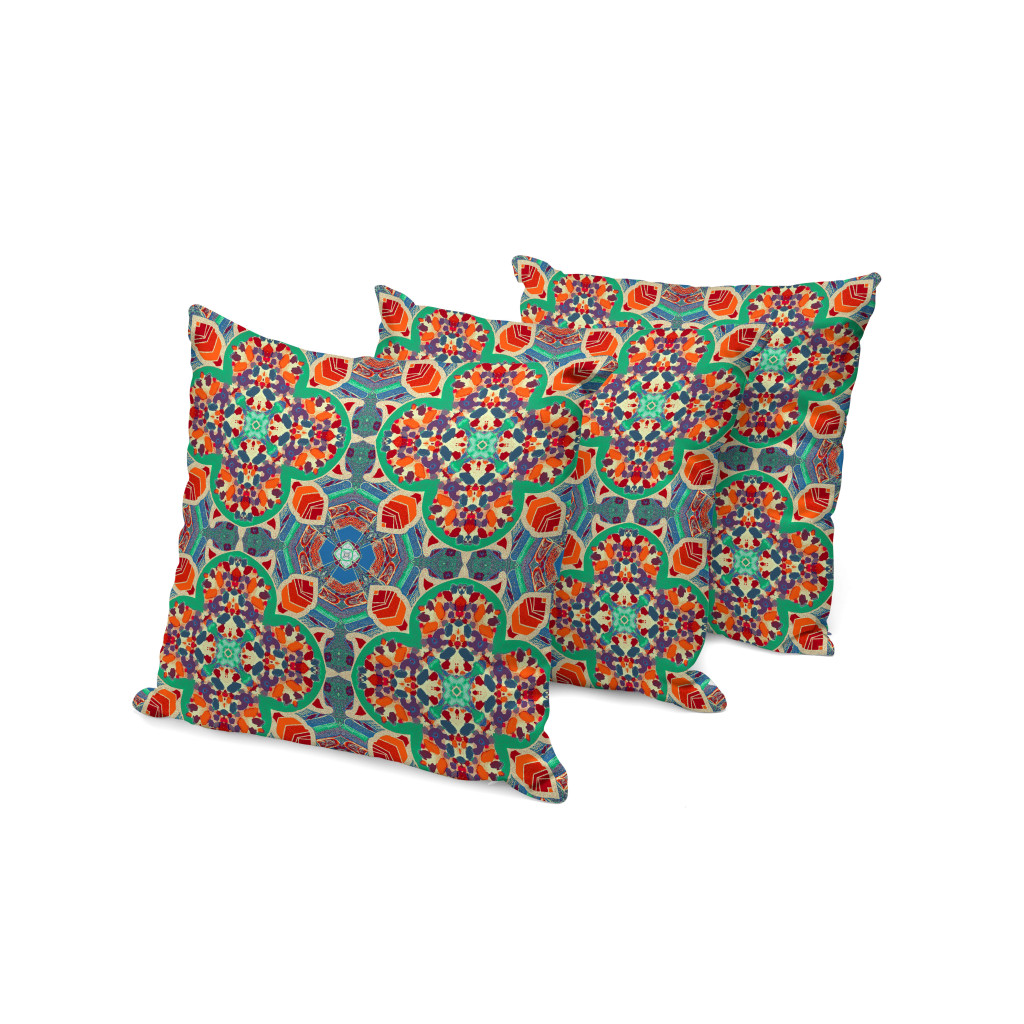 Clover Leaf Floral Indoor/Outdoor Set of 3 Pillows in Orange Green