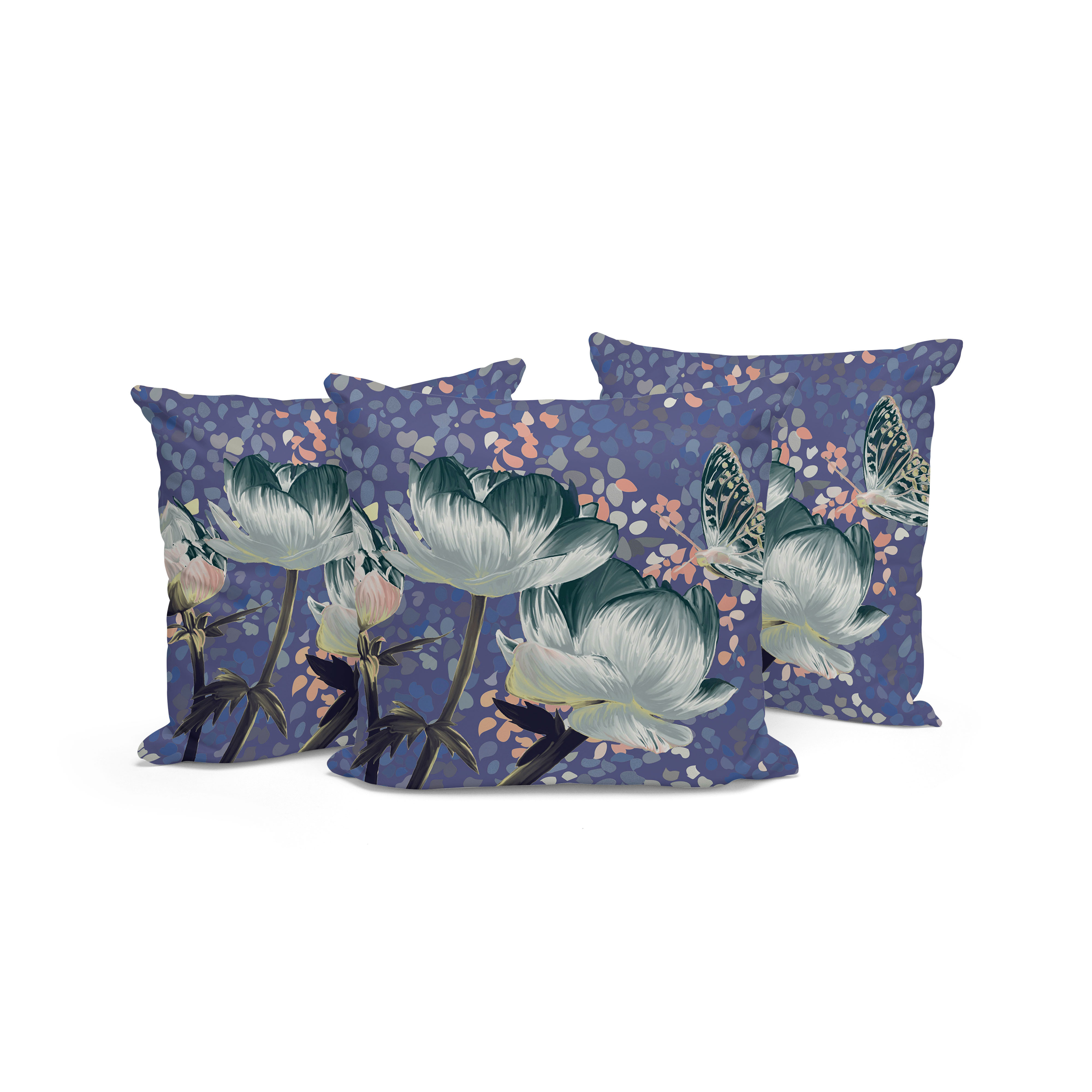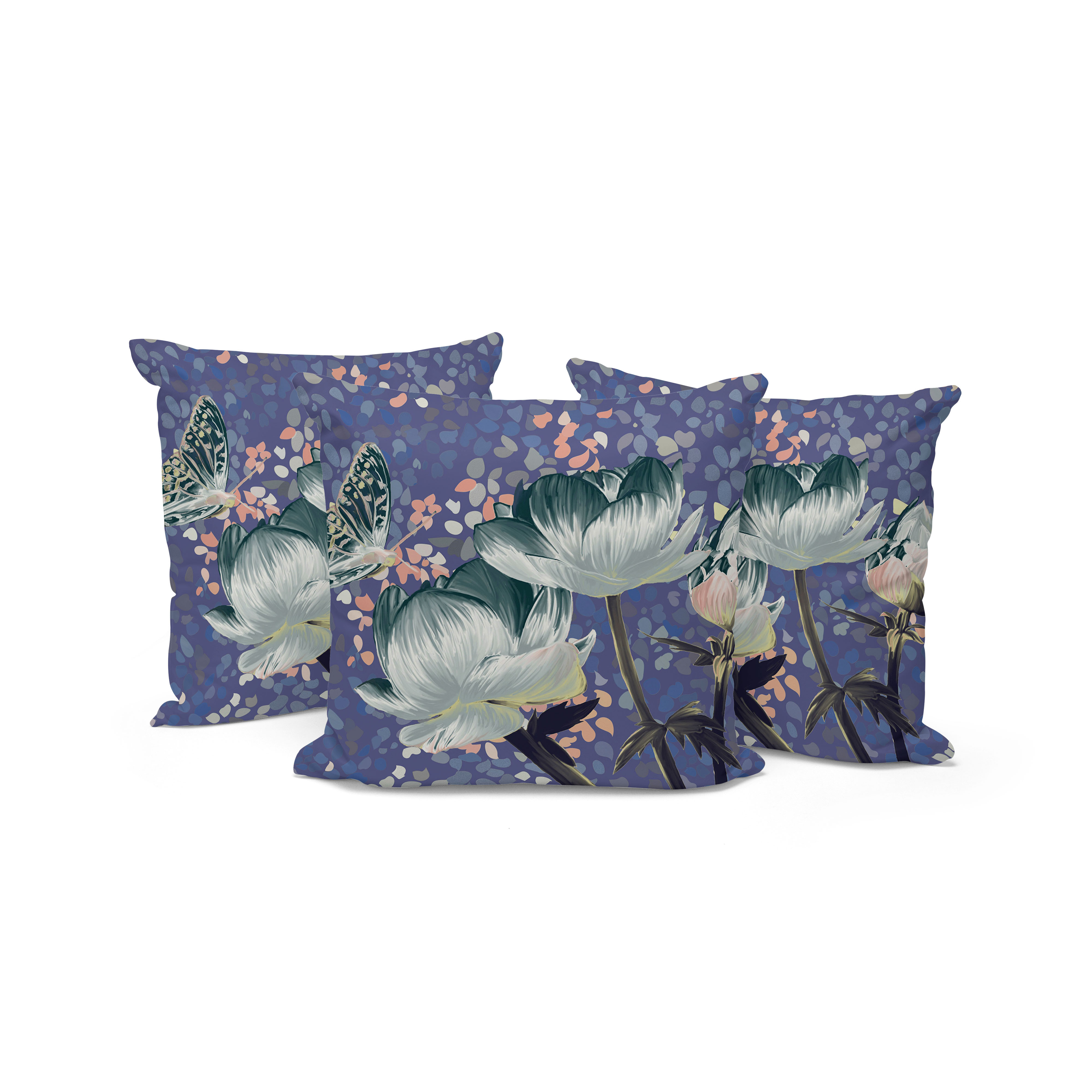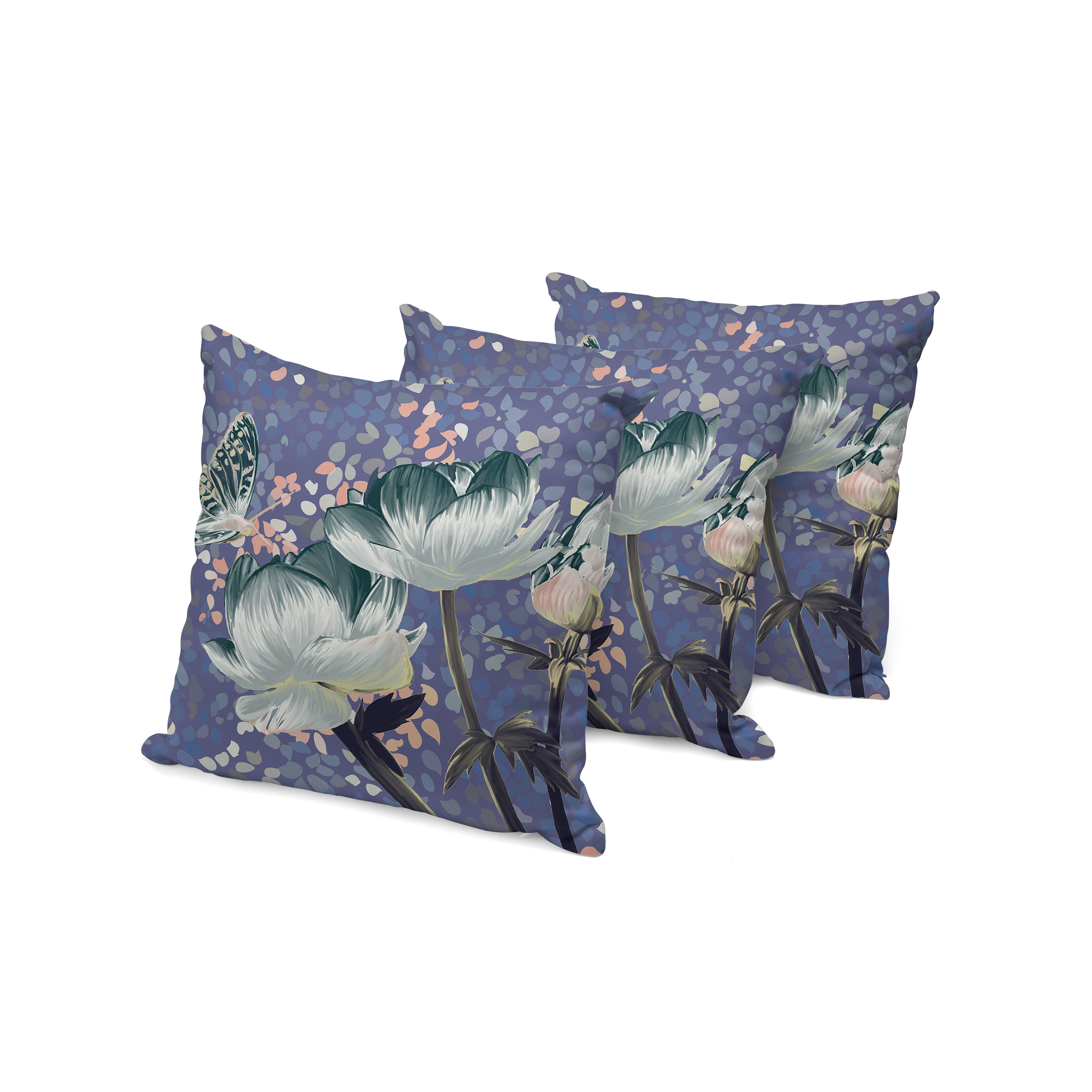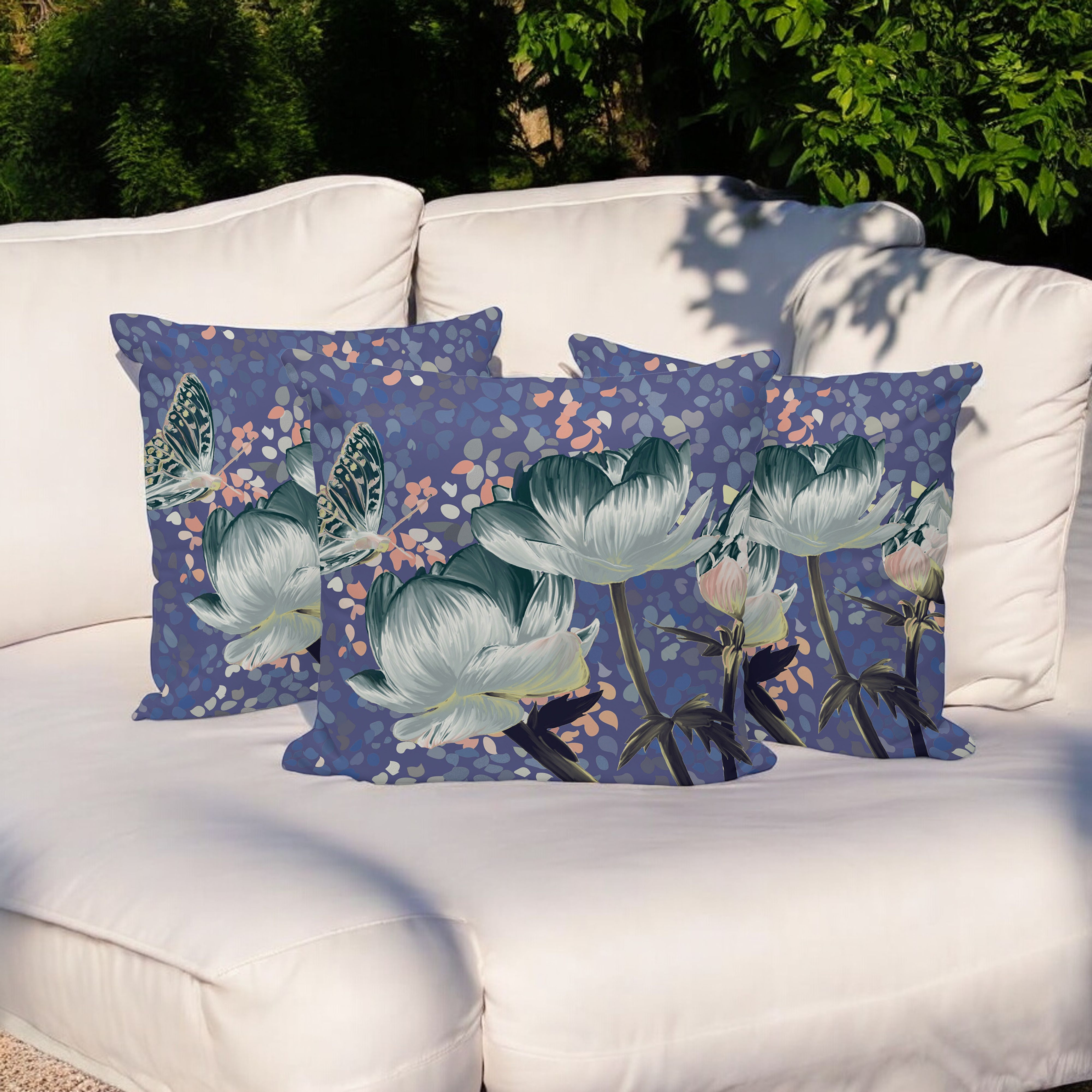 Three Roses with Butterfly Indoor/Outdoor Set of 3 Pillows in Dark Green Gray