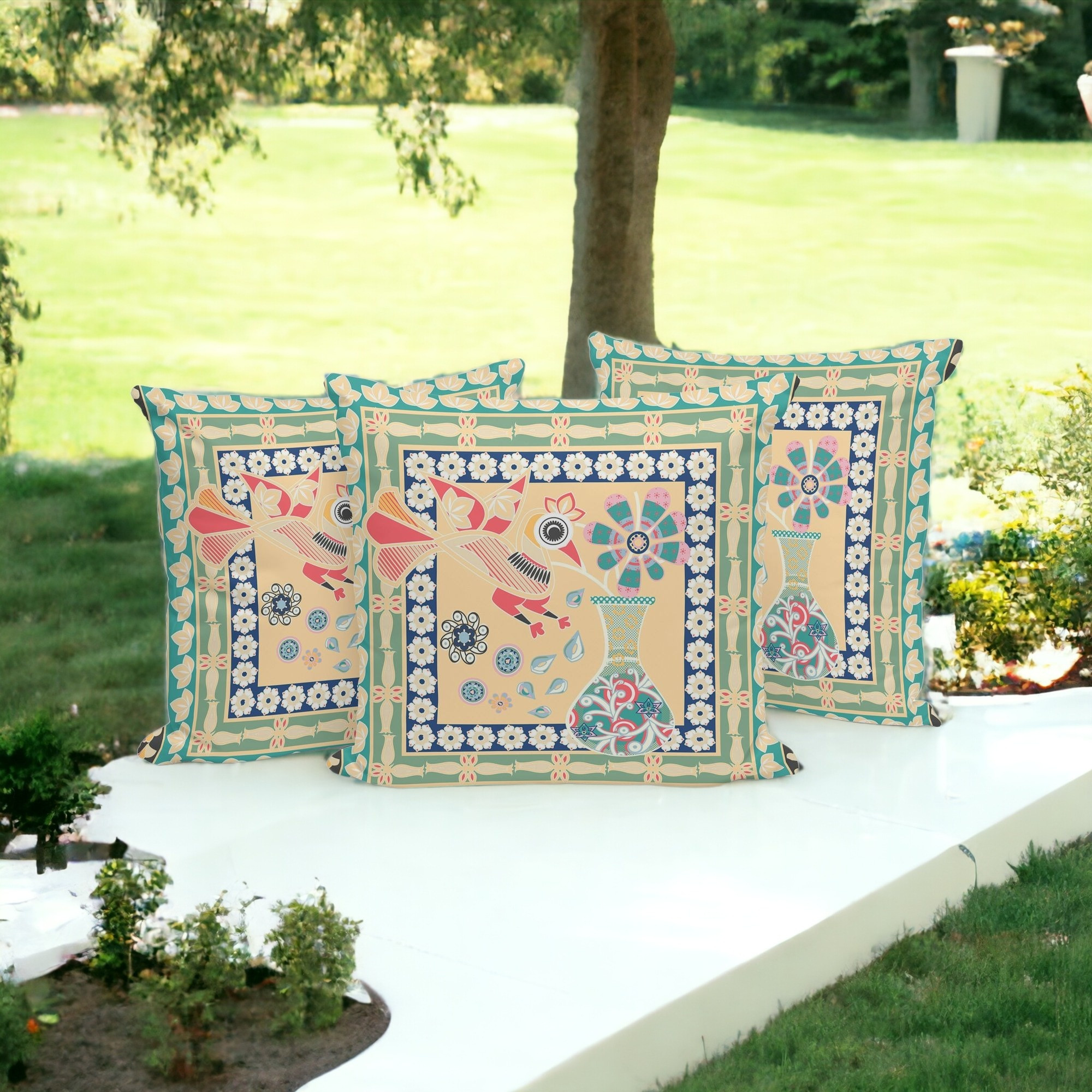 Love Your Vase Peacock Indoor/Outdoor Set of 3 Pillows in Beige Green Pink