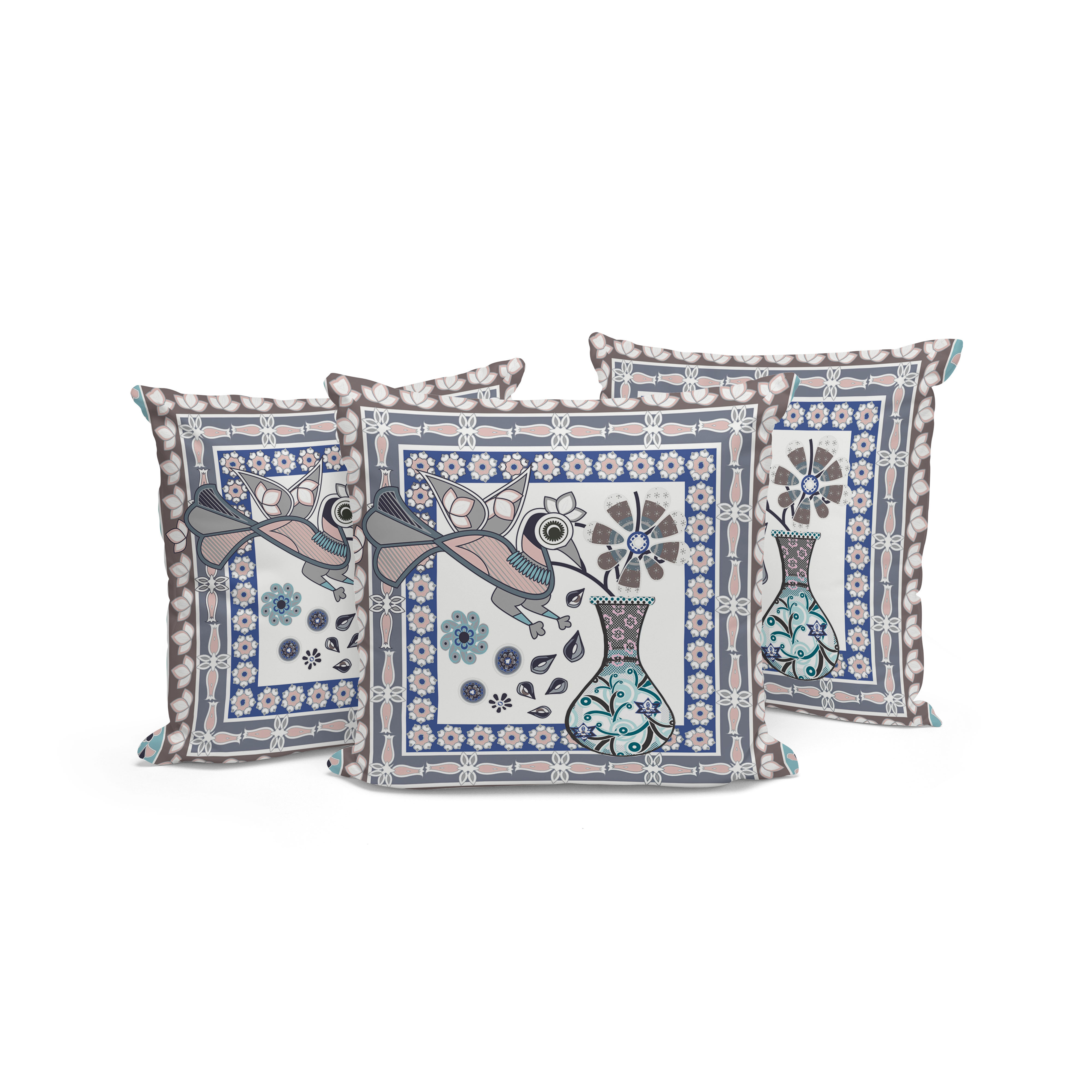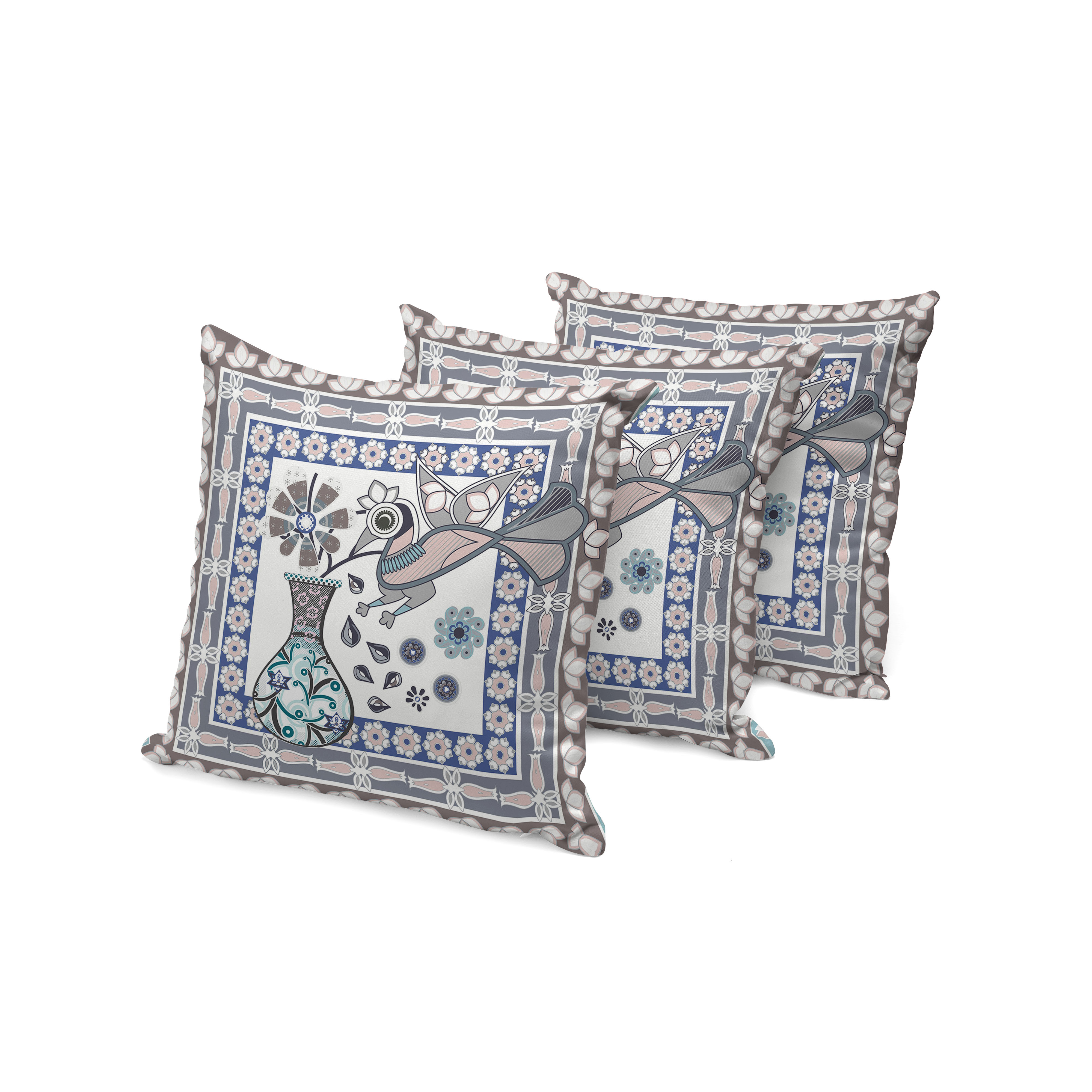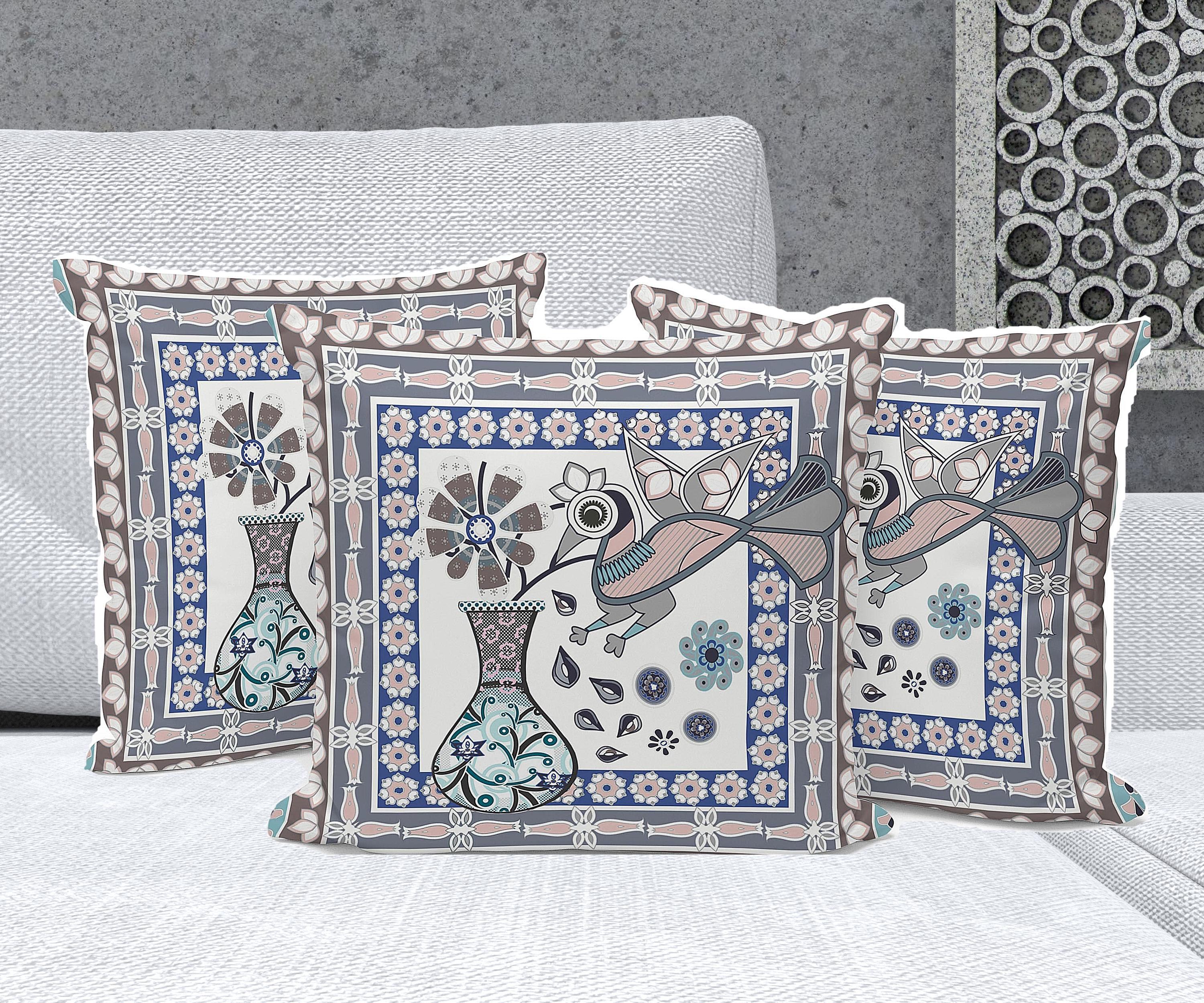 Love Your Vase Peacock Indoor/Outdoor Set of 3 Pillows in Beige Gray Dark Blue