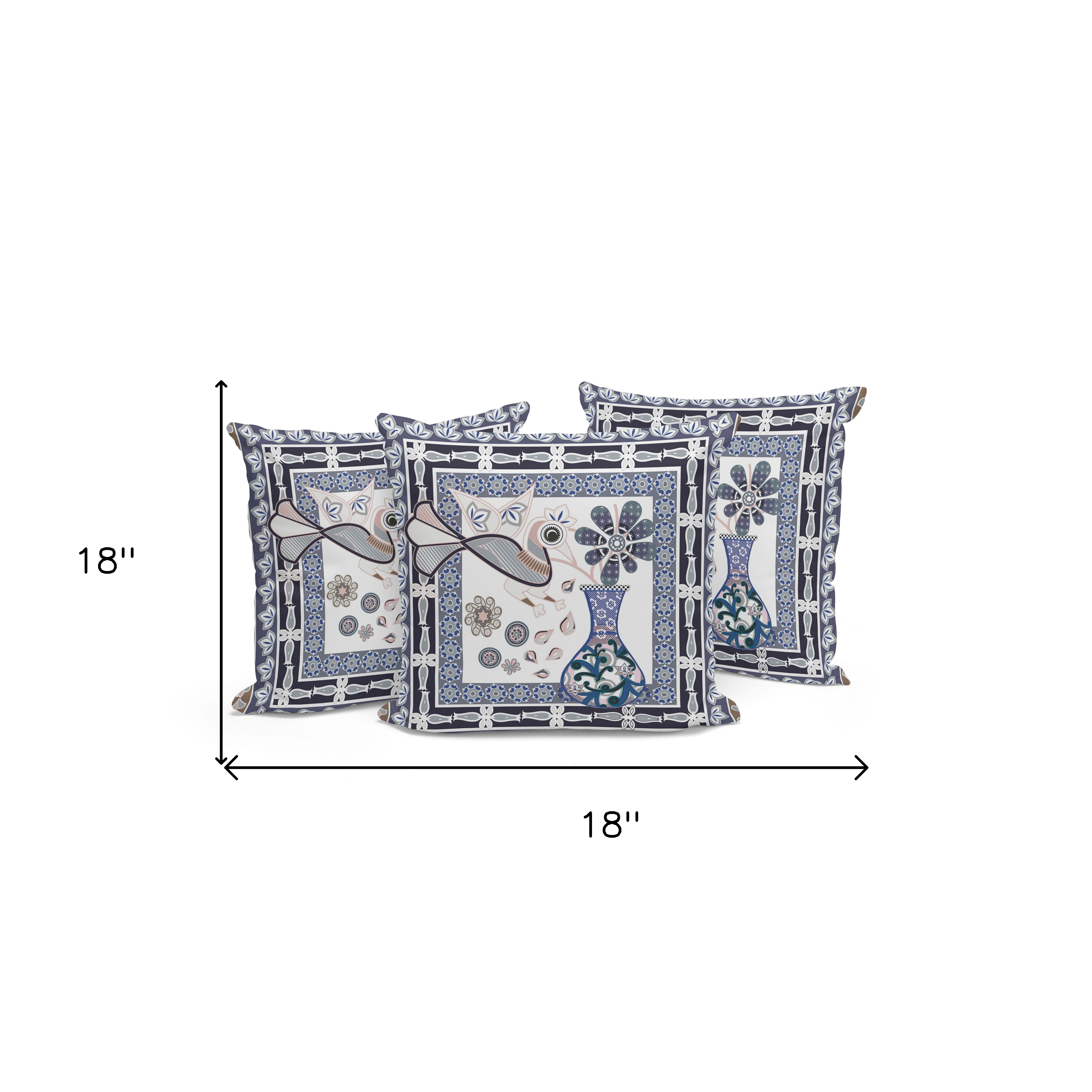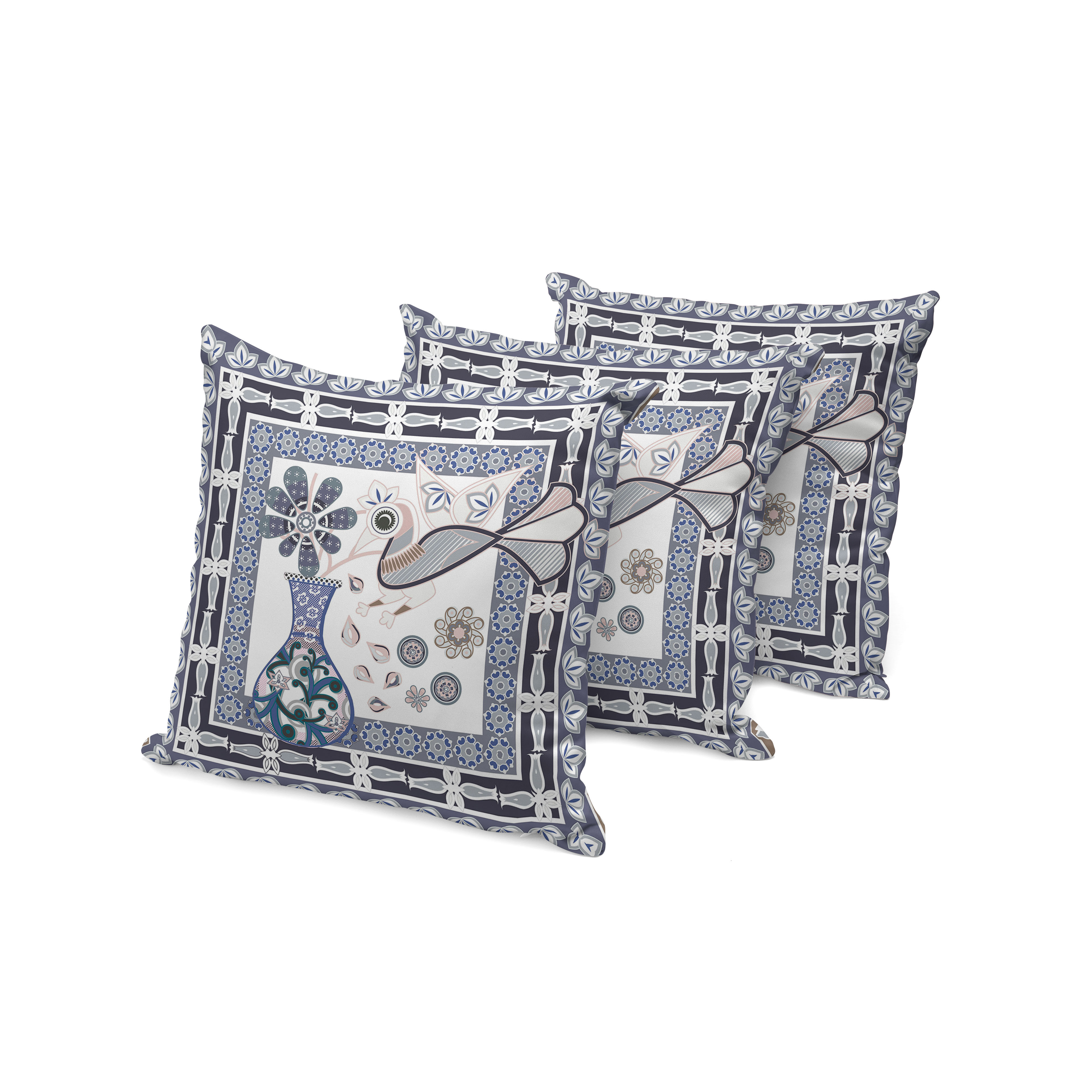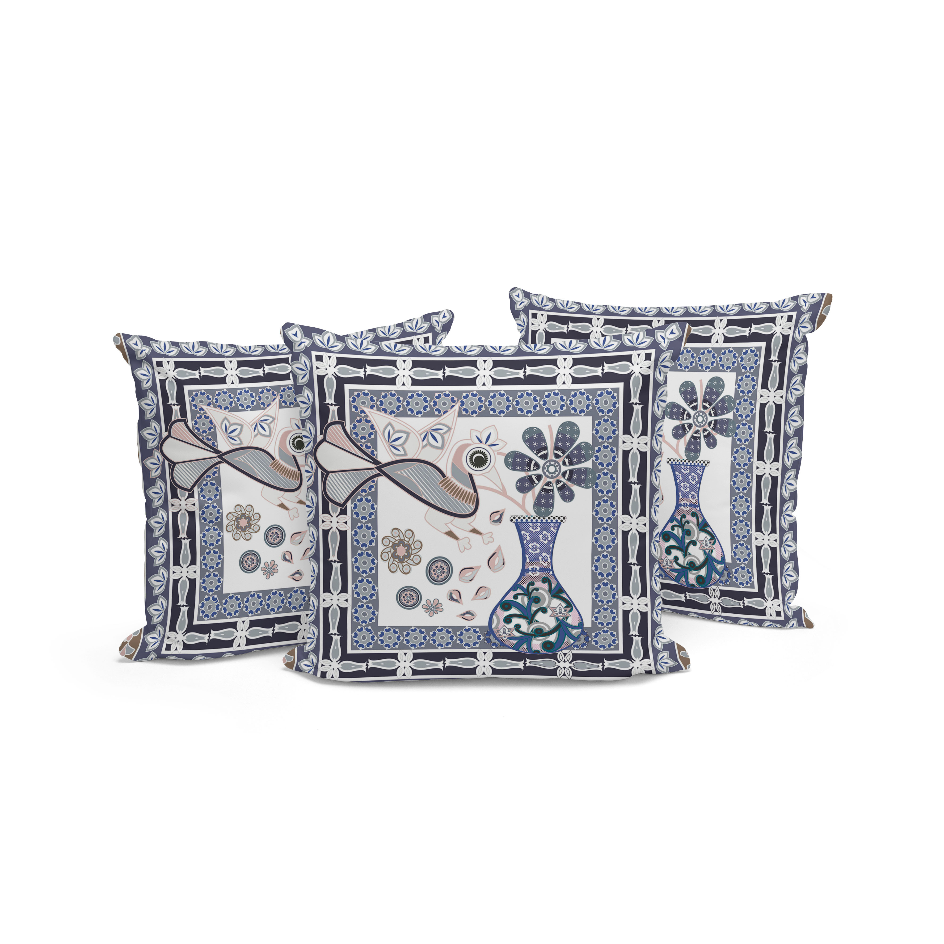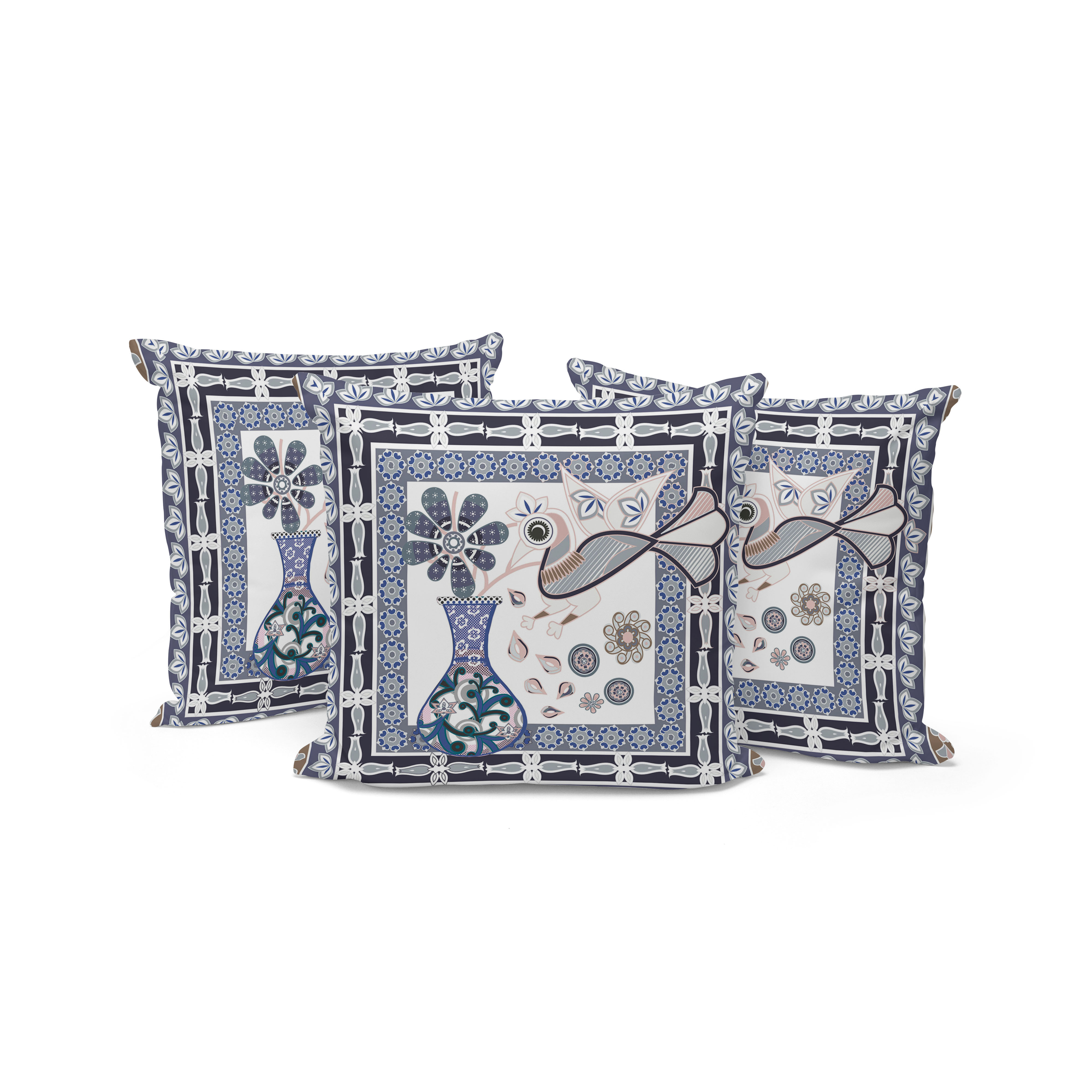 Love Your Vase Peacock Indoor/Outdoor Set of 3 Pillows in Beige Orange