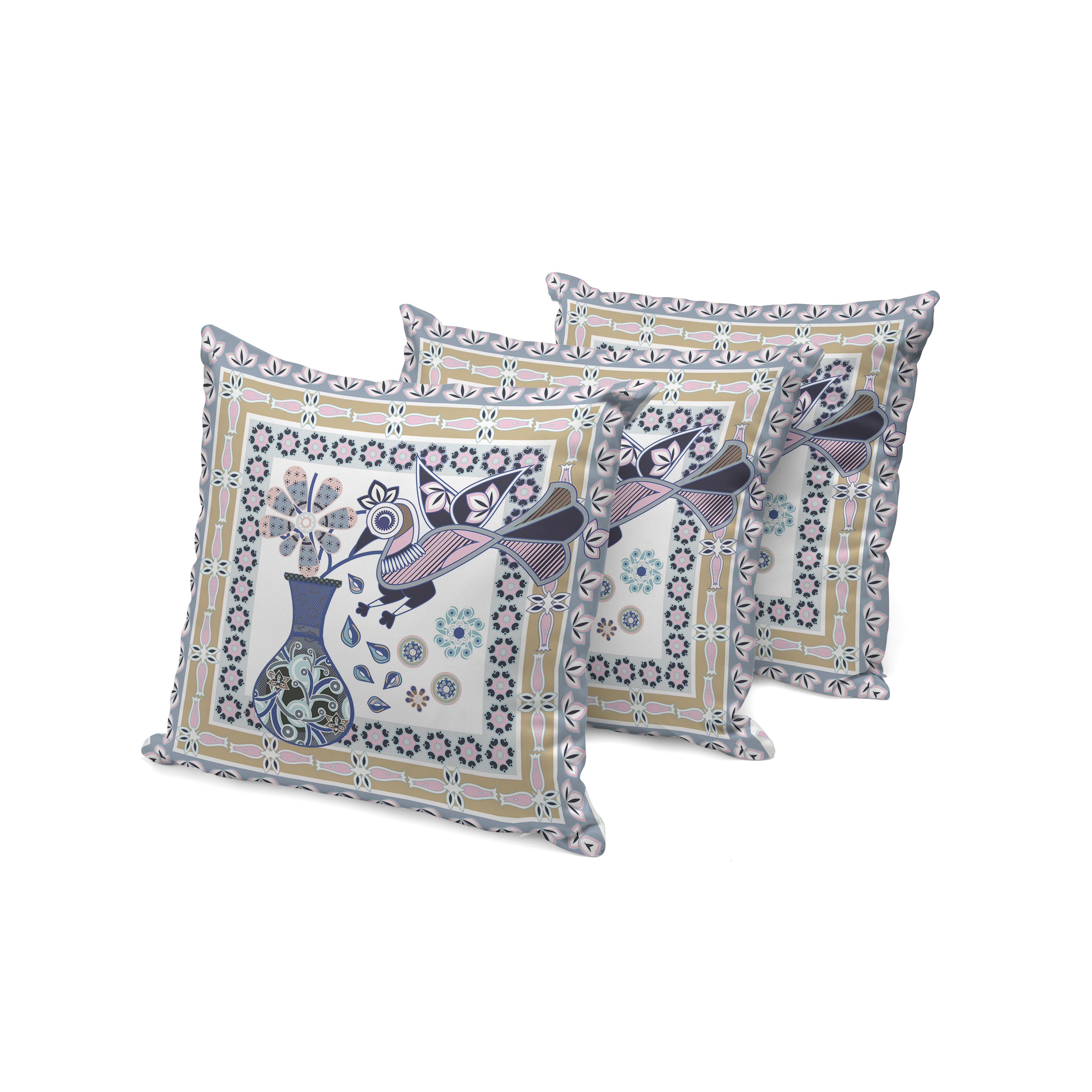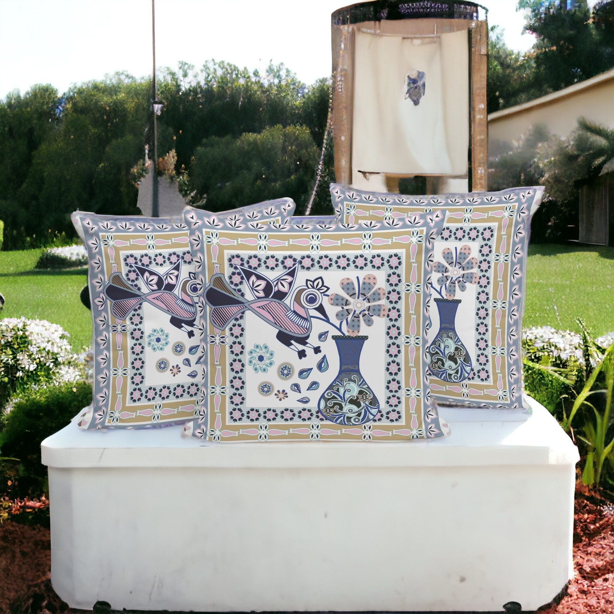 Love Your Vase Peacock Indoor/Outdoor Set of 3 Pillows in Beige Pink White