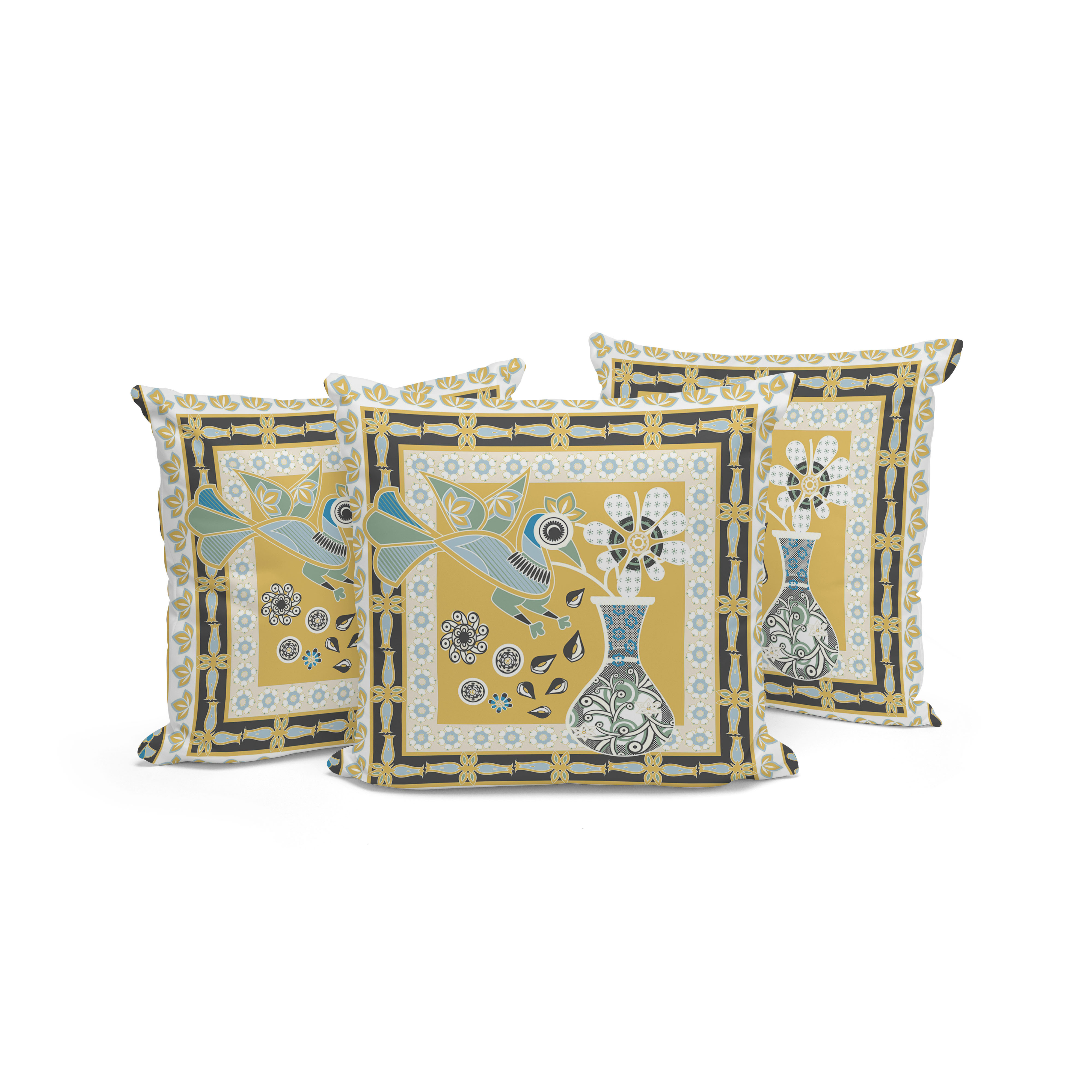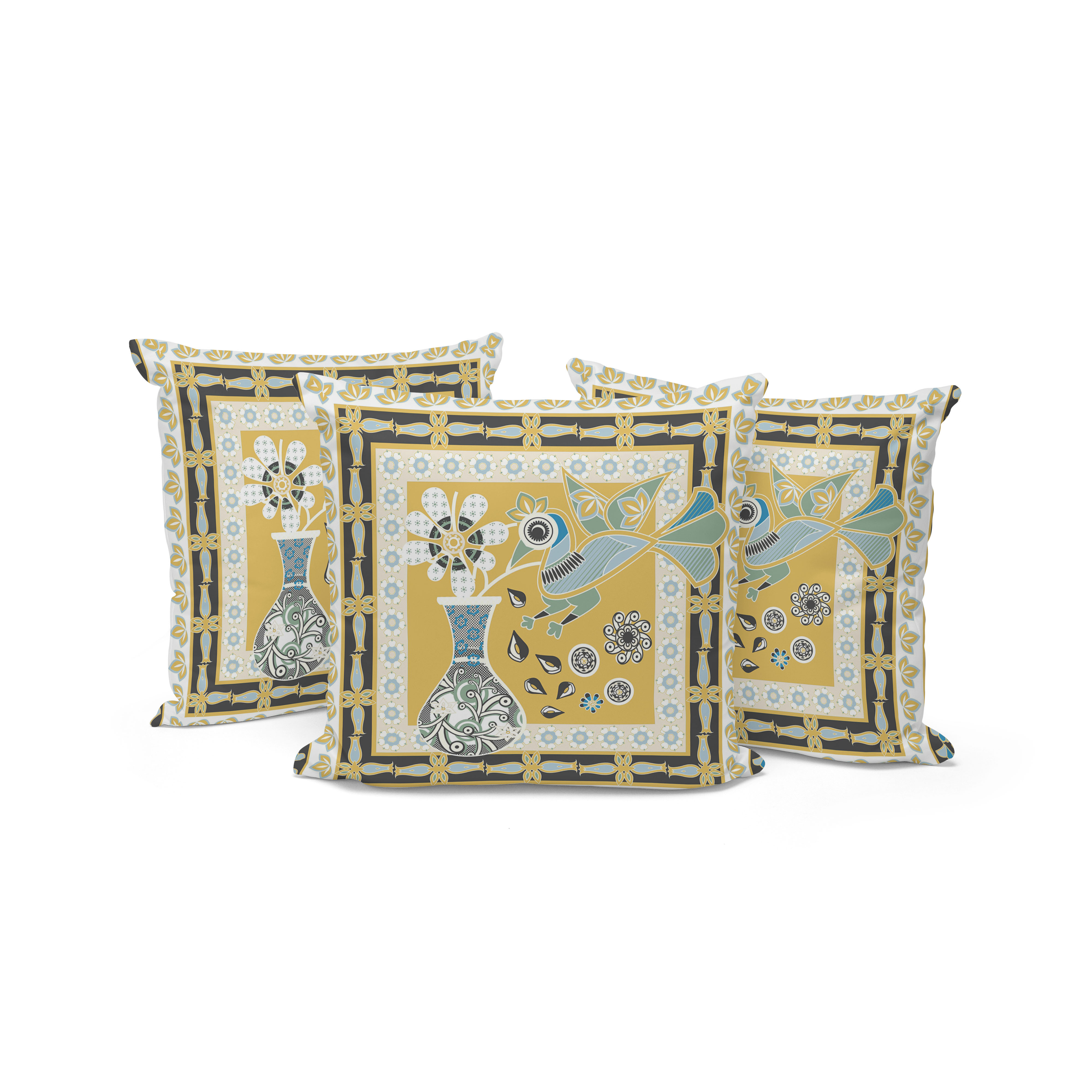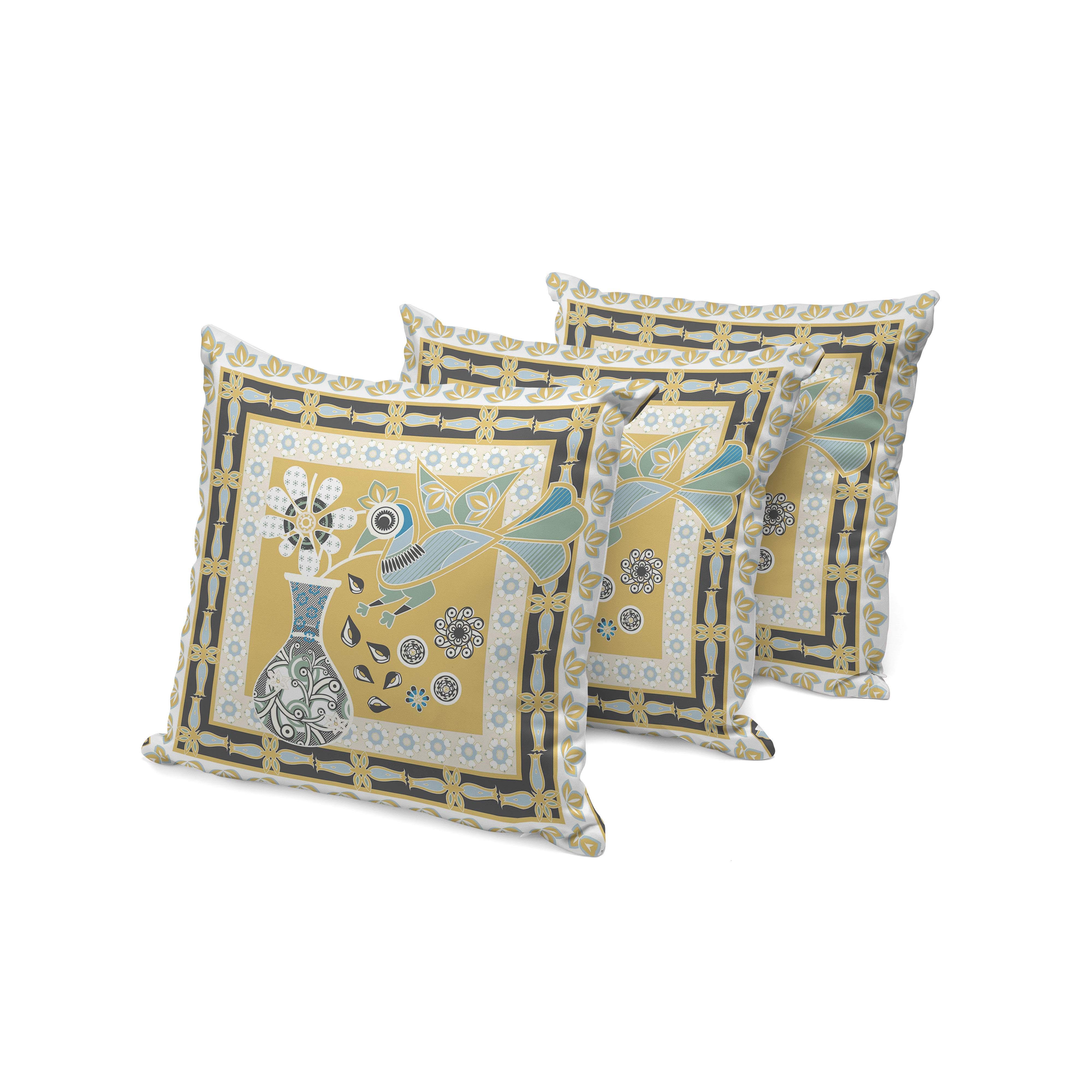 Love Your Vase Peacock Indoor/Outdoor Set of 3 Pillows in Dark Beige White Black