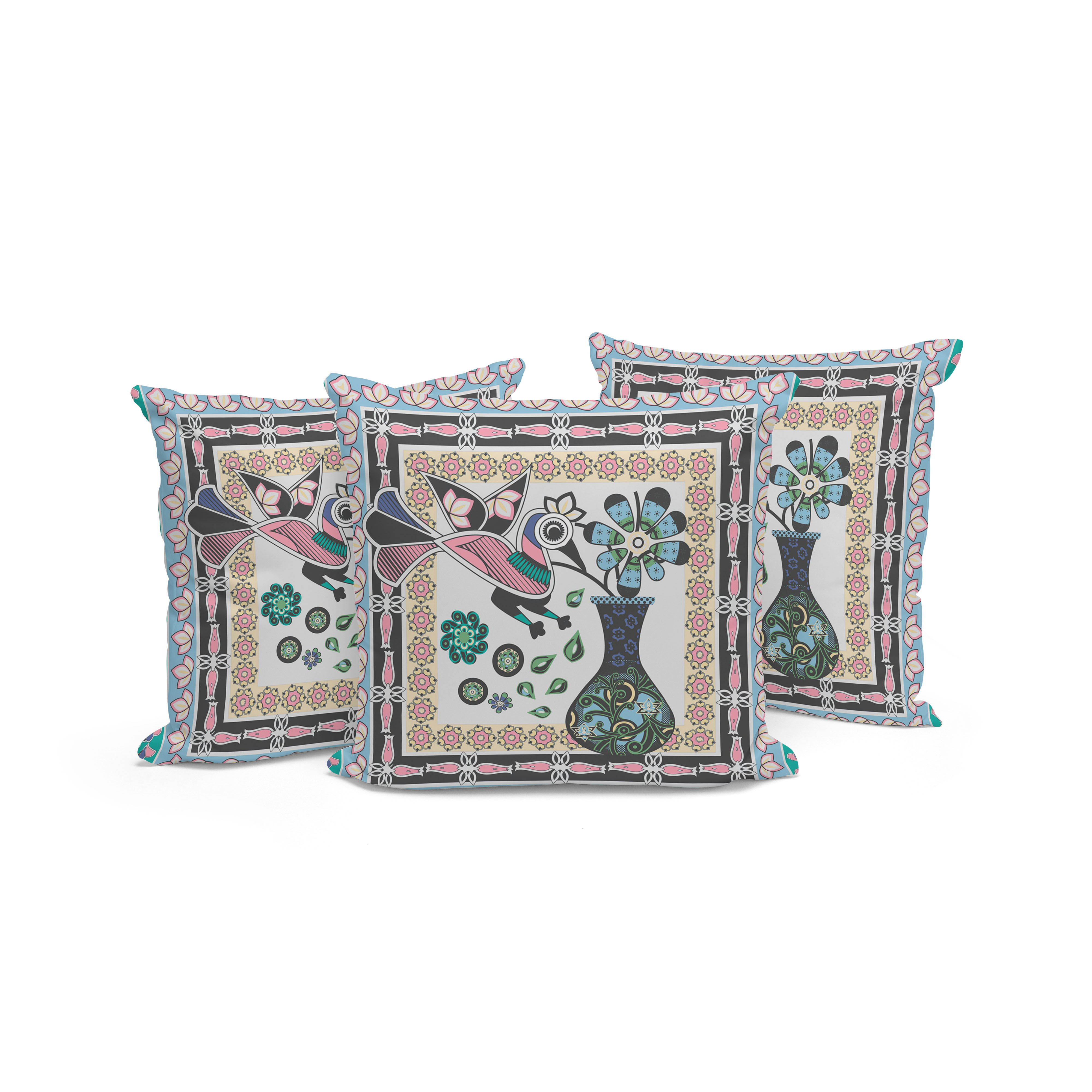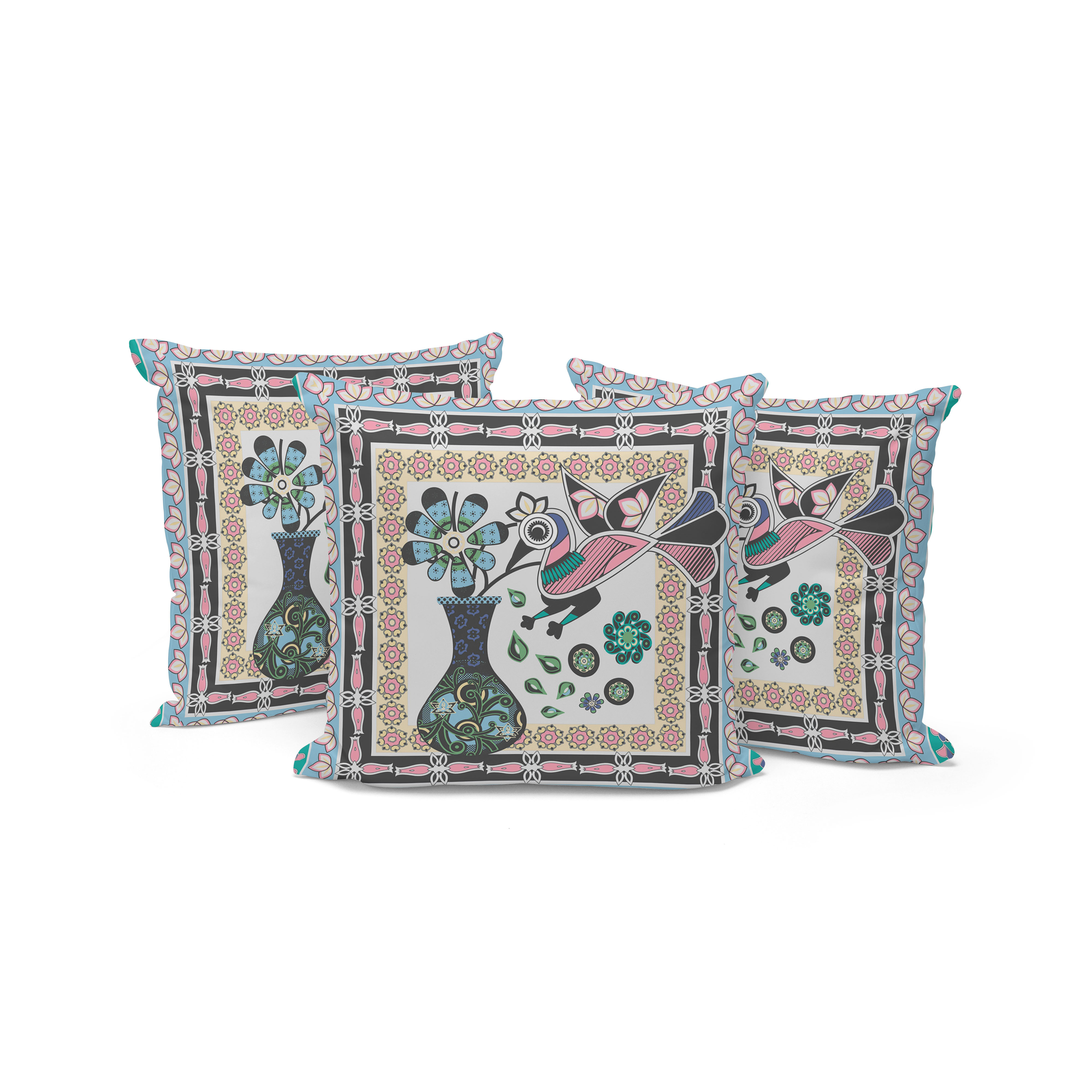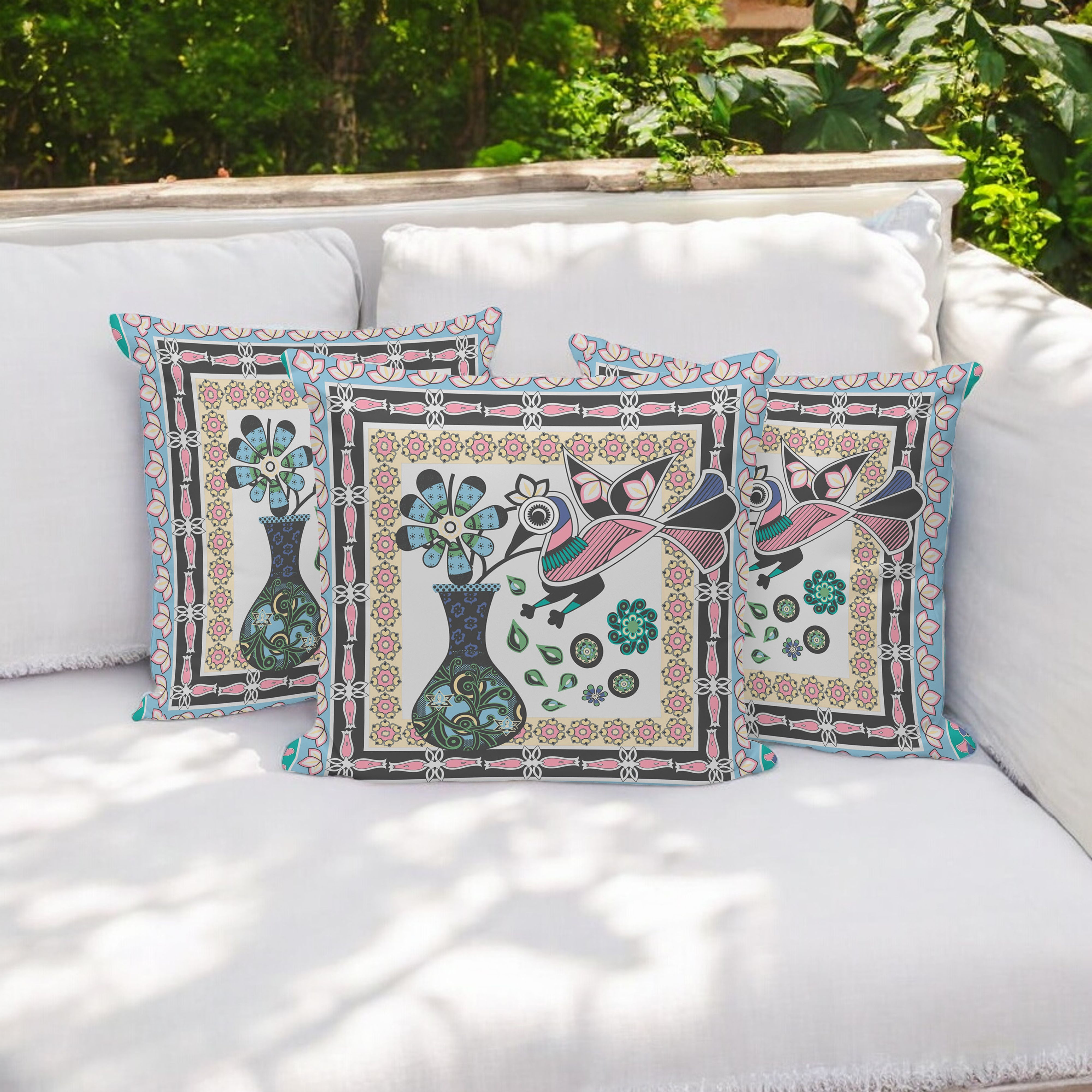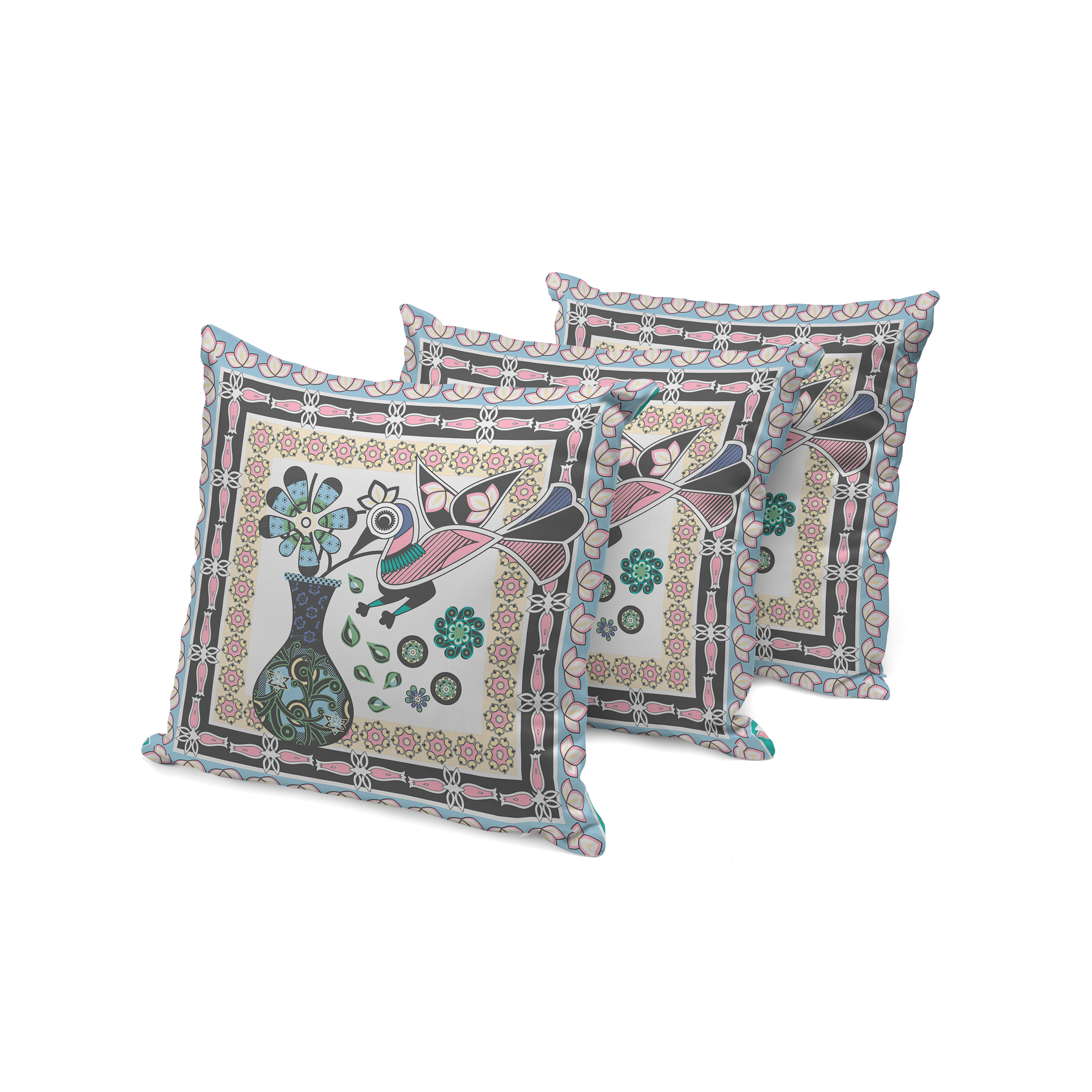 Love Your Vase Peacock Indoor/Outdoor Set of 3 Pillows in Gray Black Pink