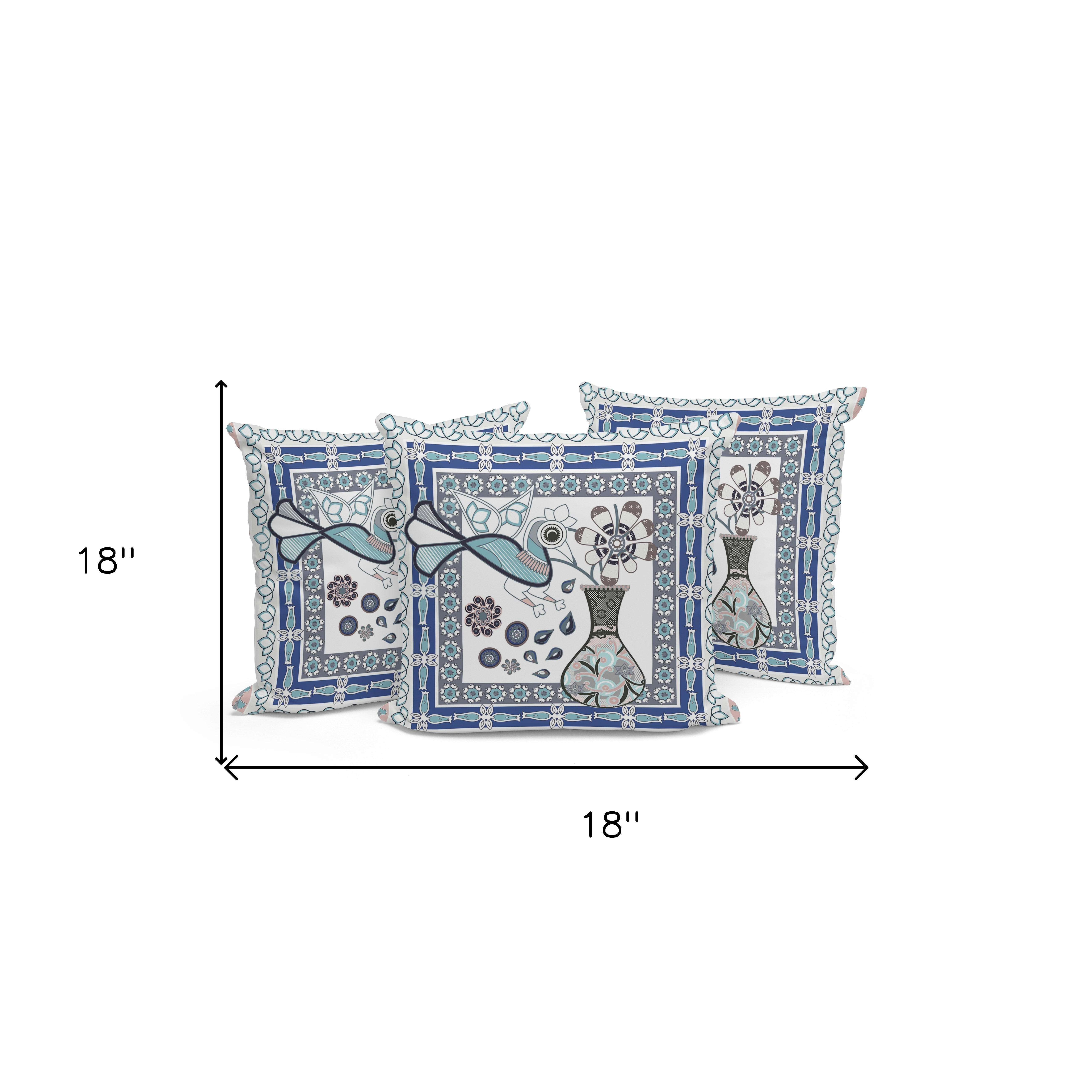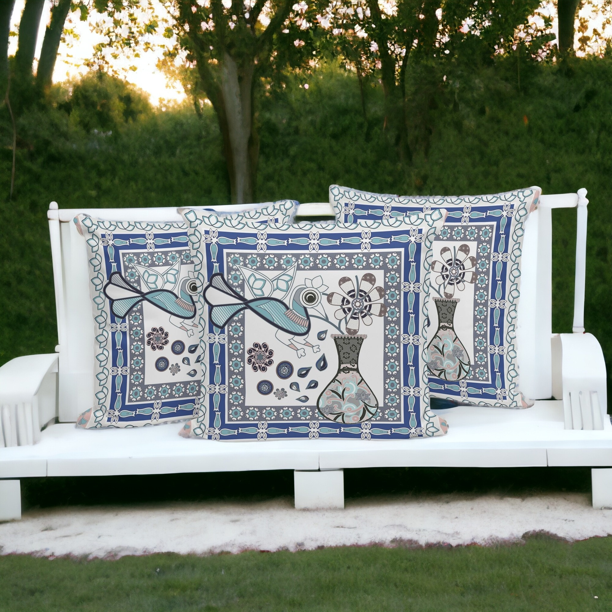 Love Your Vase Peacock Indoor/Outdoor Set of 3 Pillows in Pink Beige Gray White