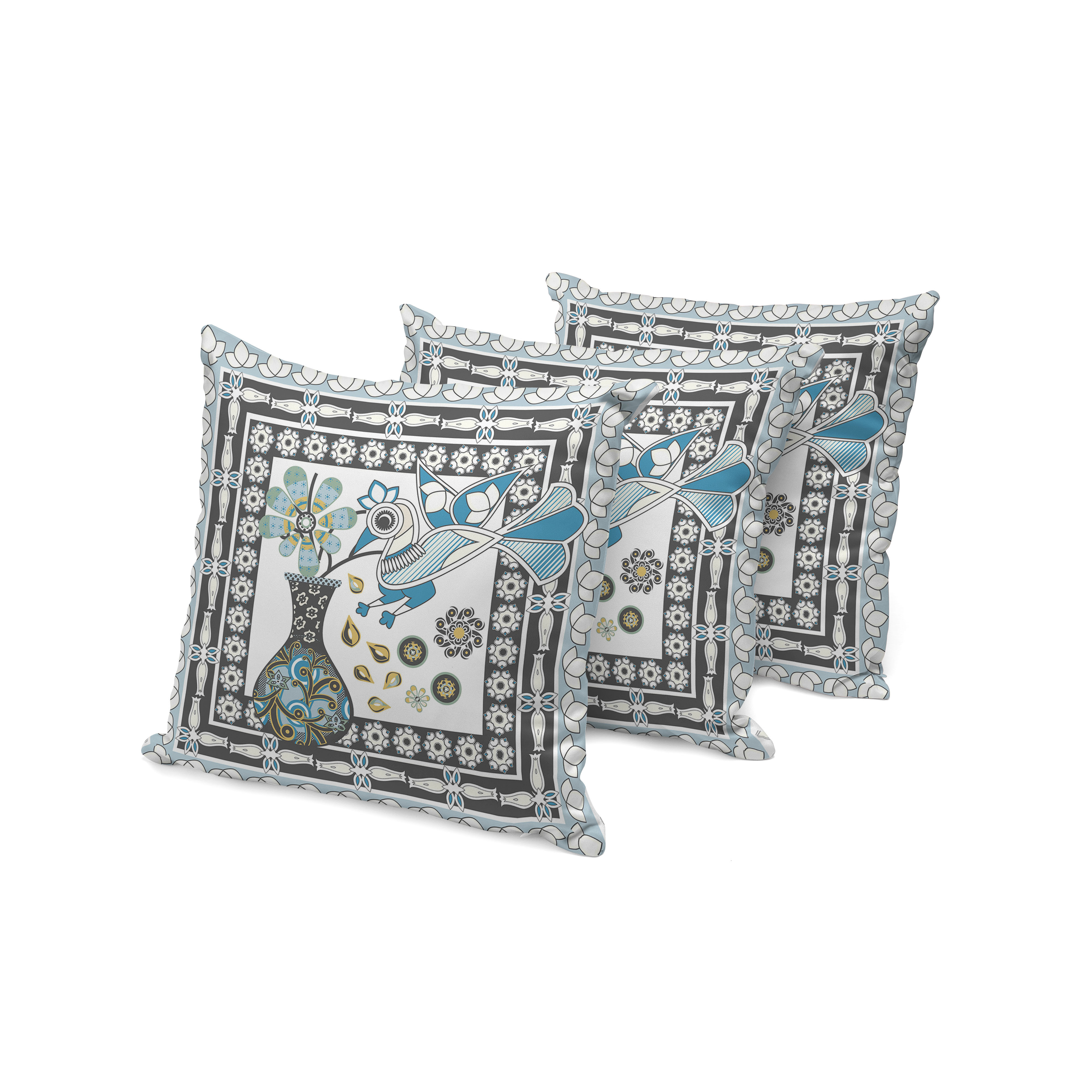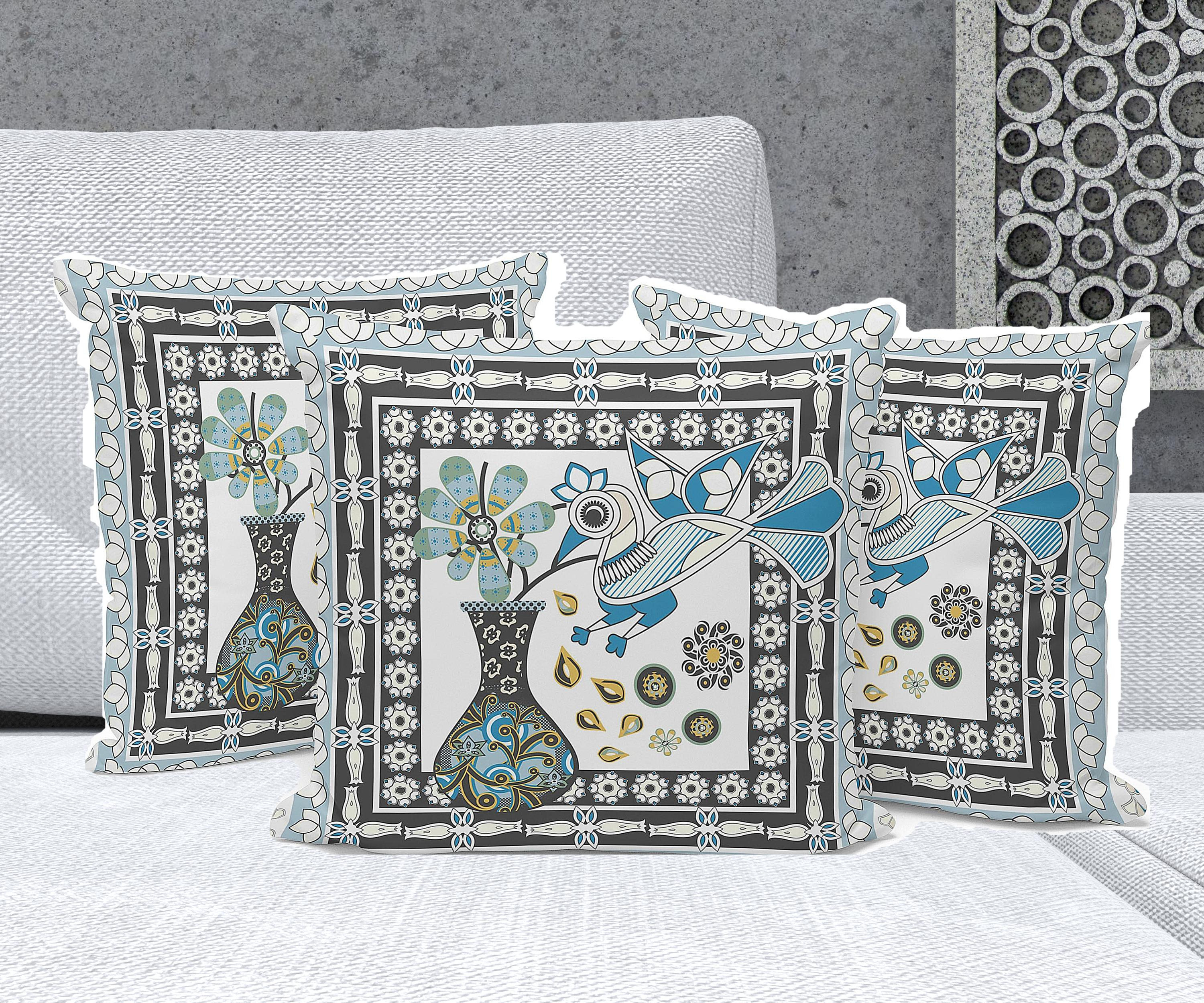 Love Your Vase Peacock Indoor/Outdoor Set of 3 Pillows in White Black Blue