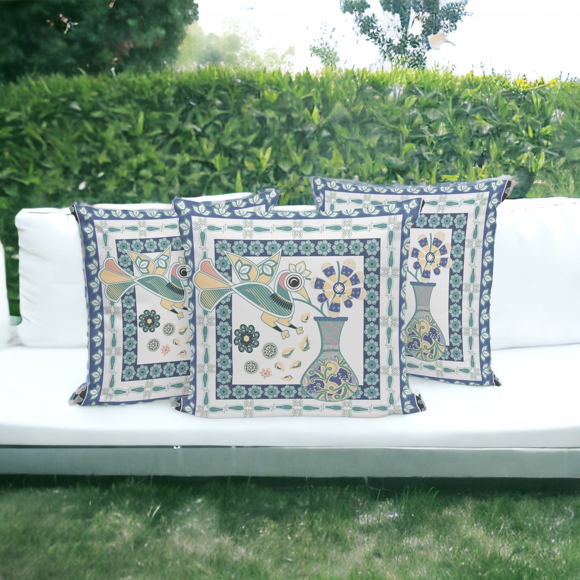 Love Your Vase Peacock Indoor/Outdoor Set of 3 Pillows in White Blue