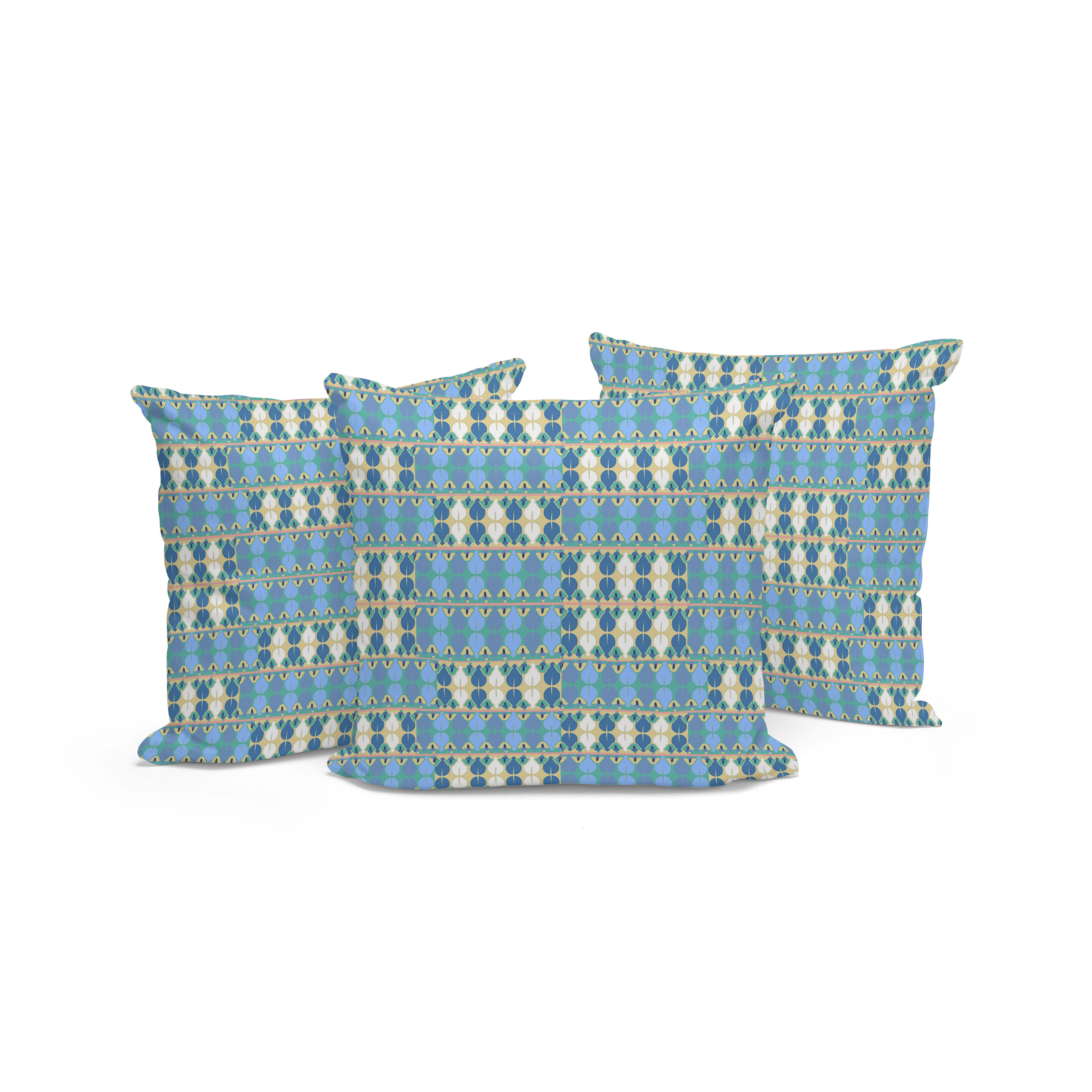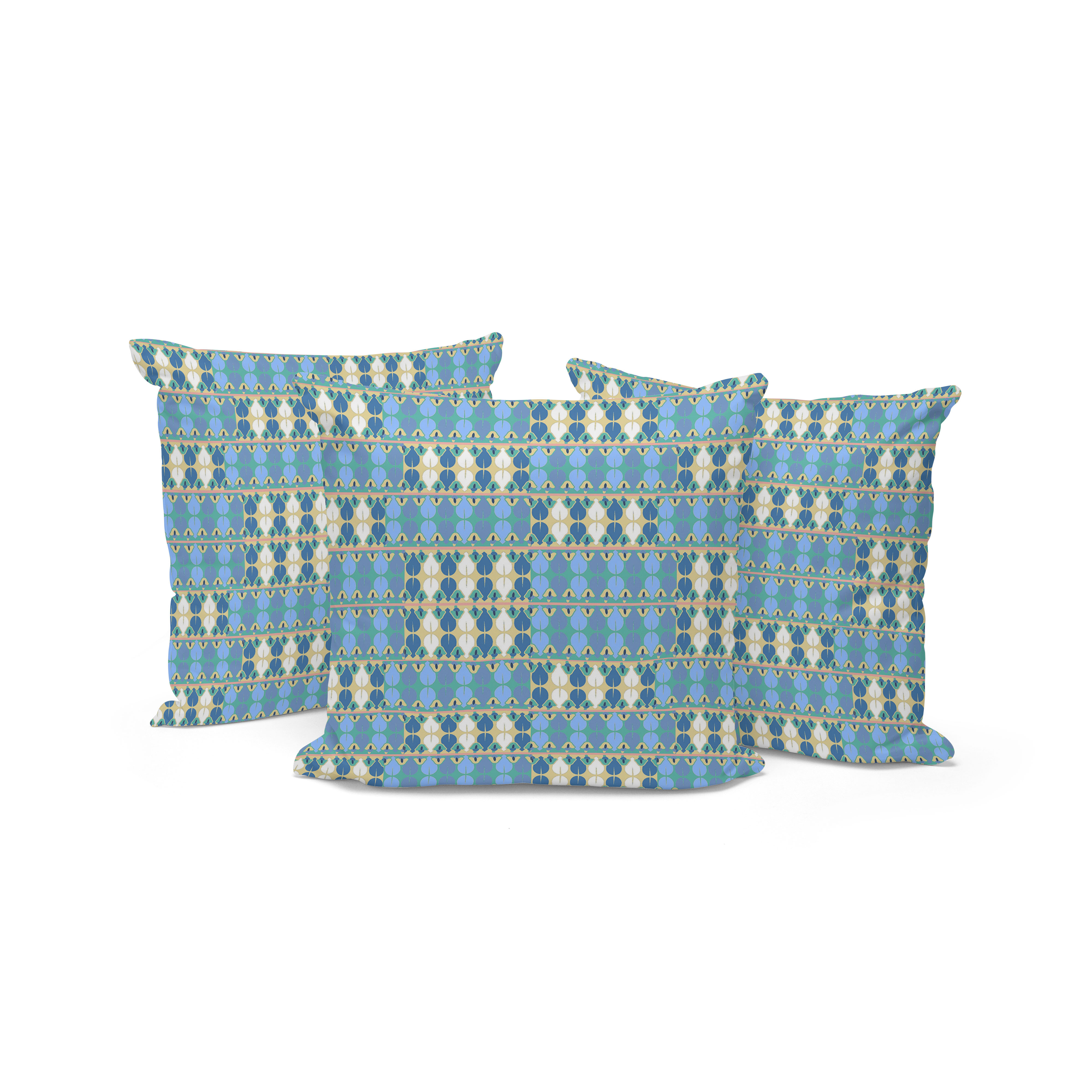 Set of Three Blue Abstract Indoor Outdoor Throw Pillow