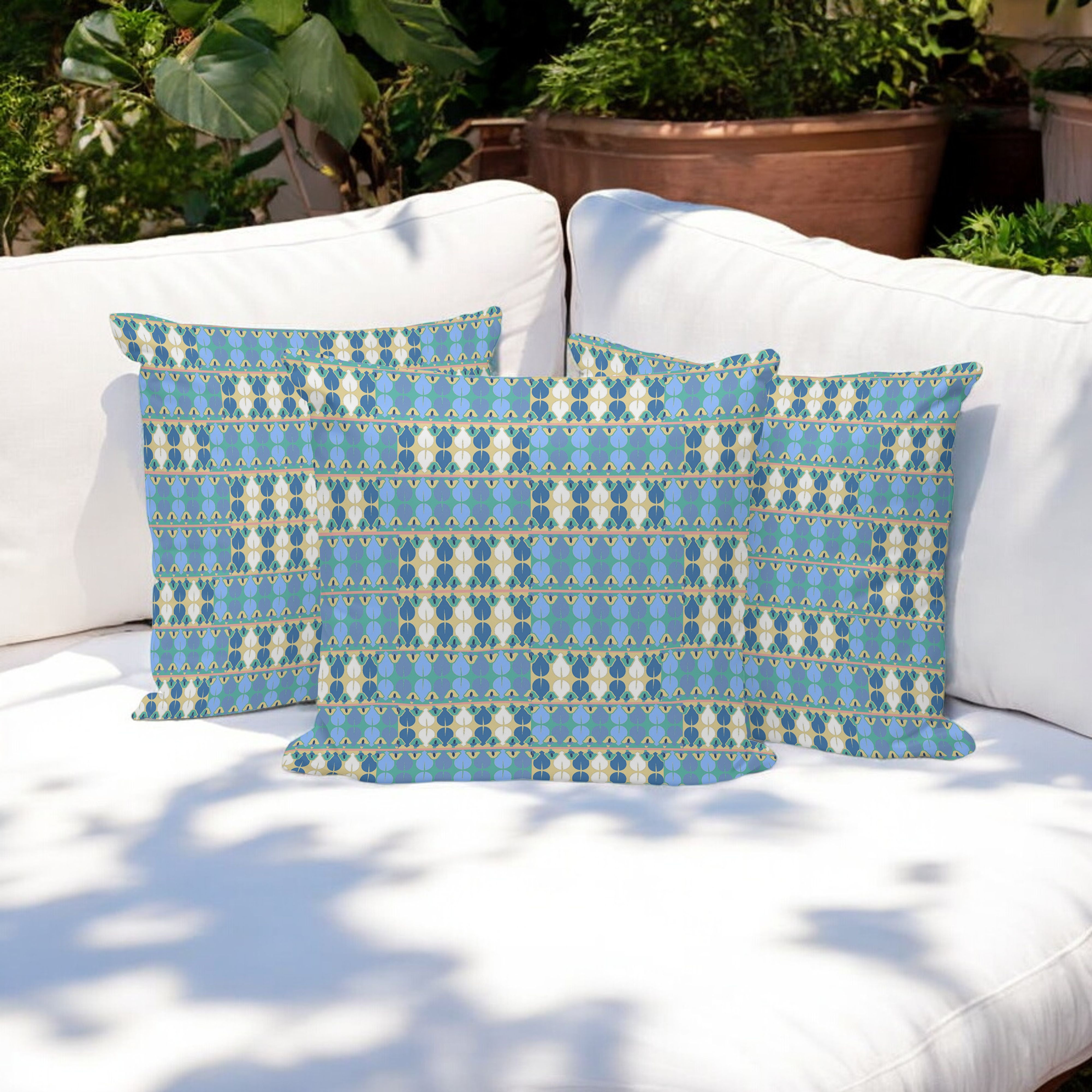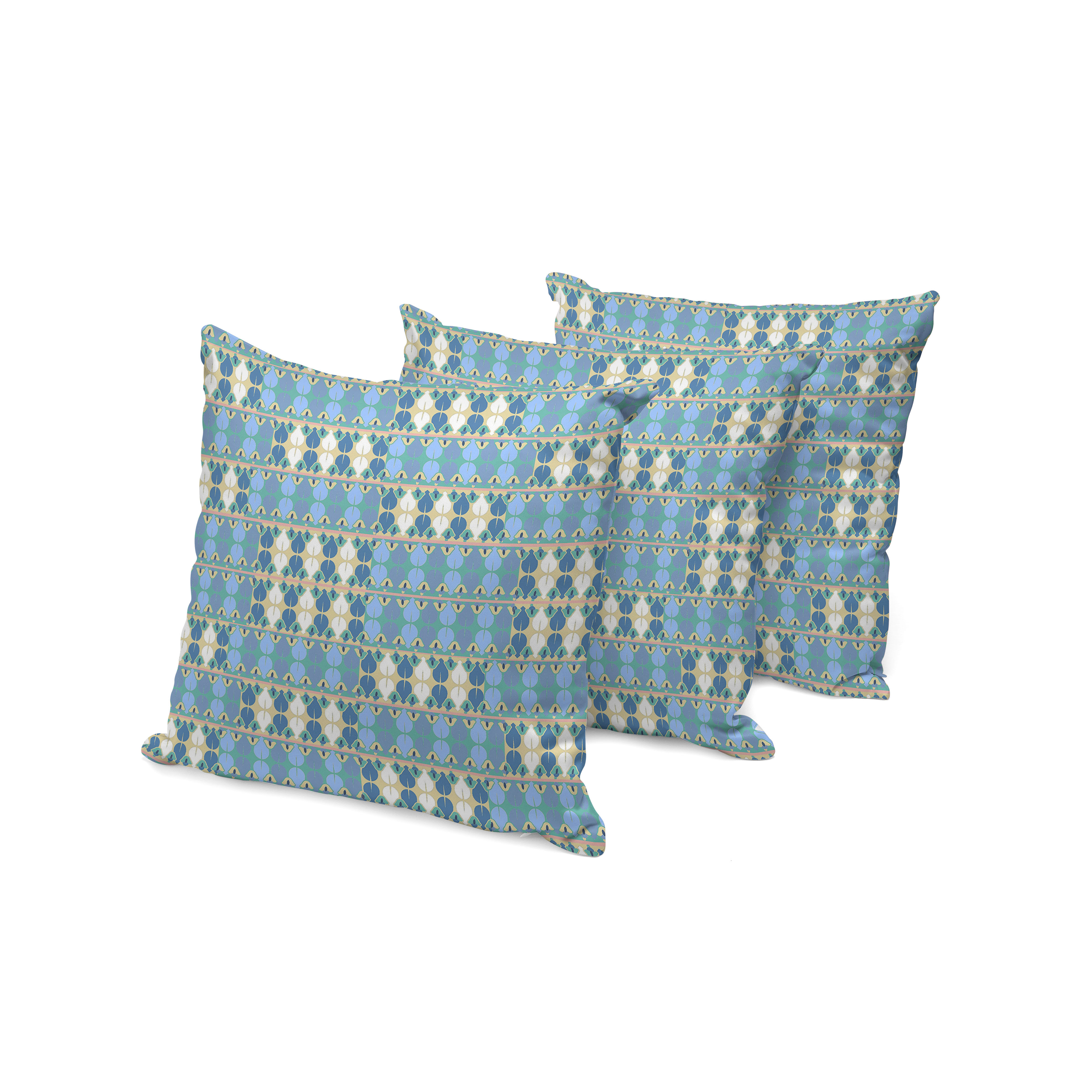 Square Spades Indoor/Outdoor Set of 3 Pillows in Muted Light Blue Cream