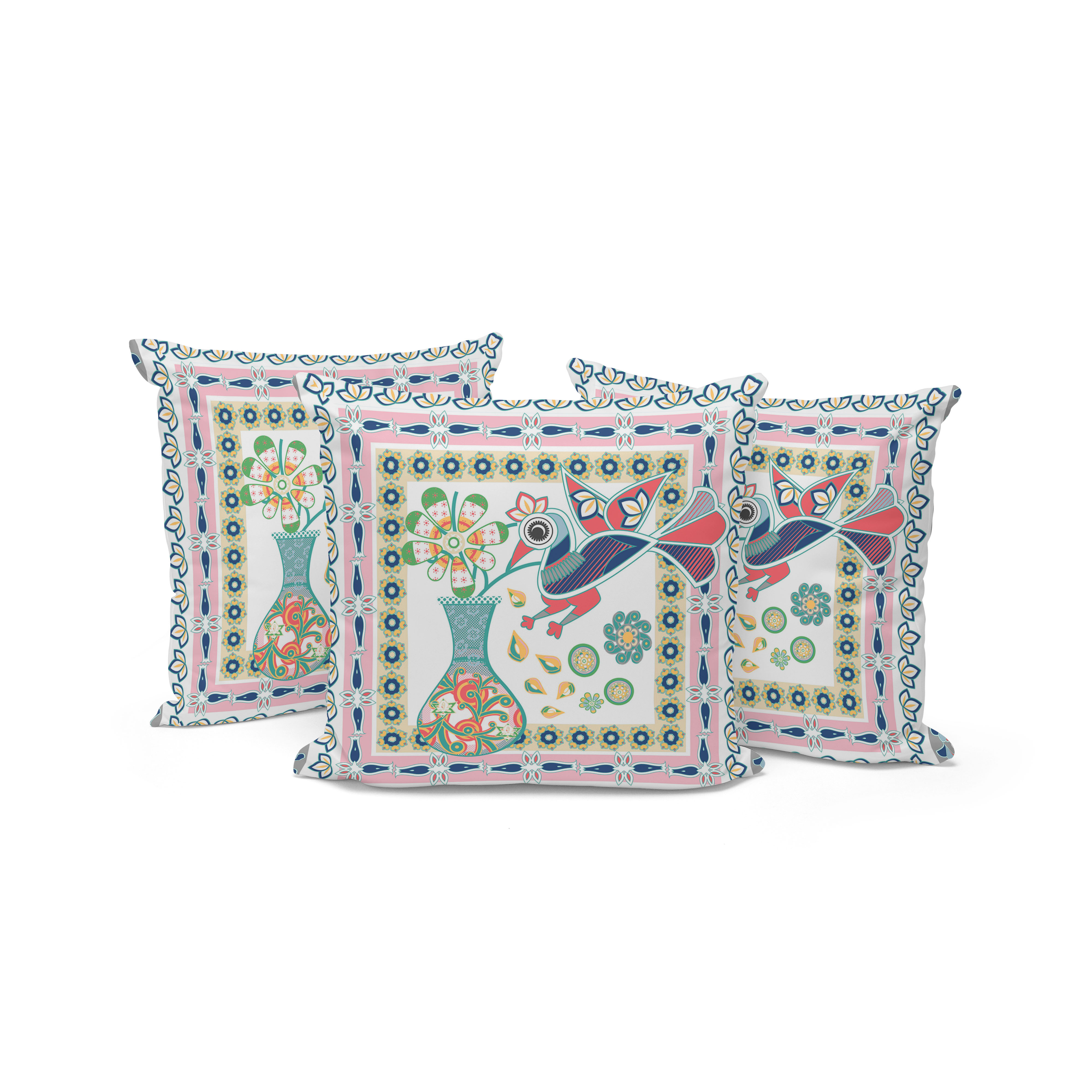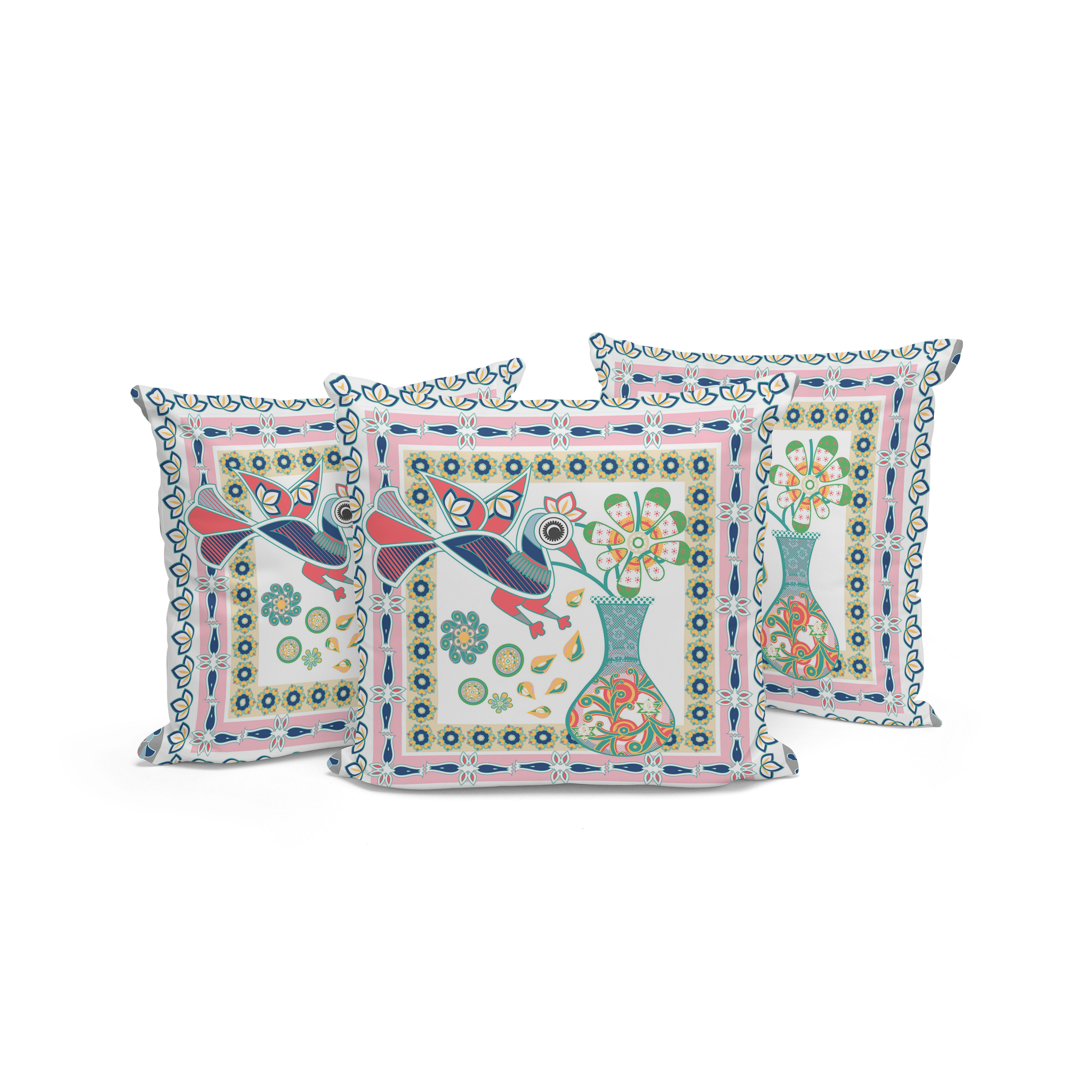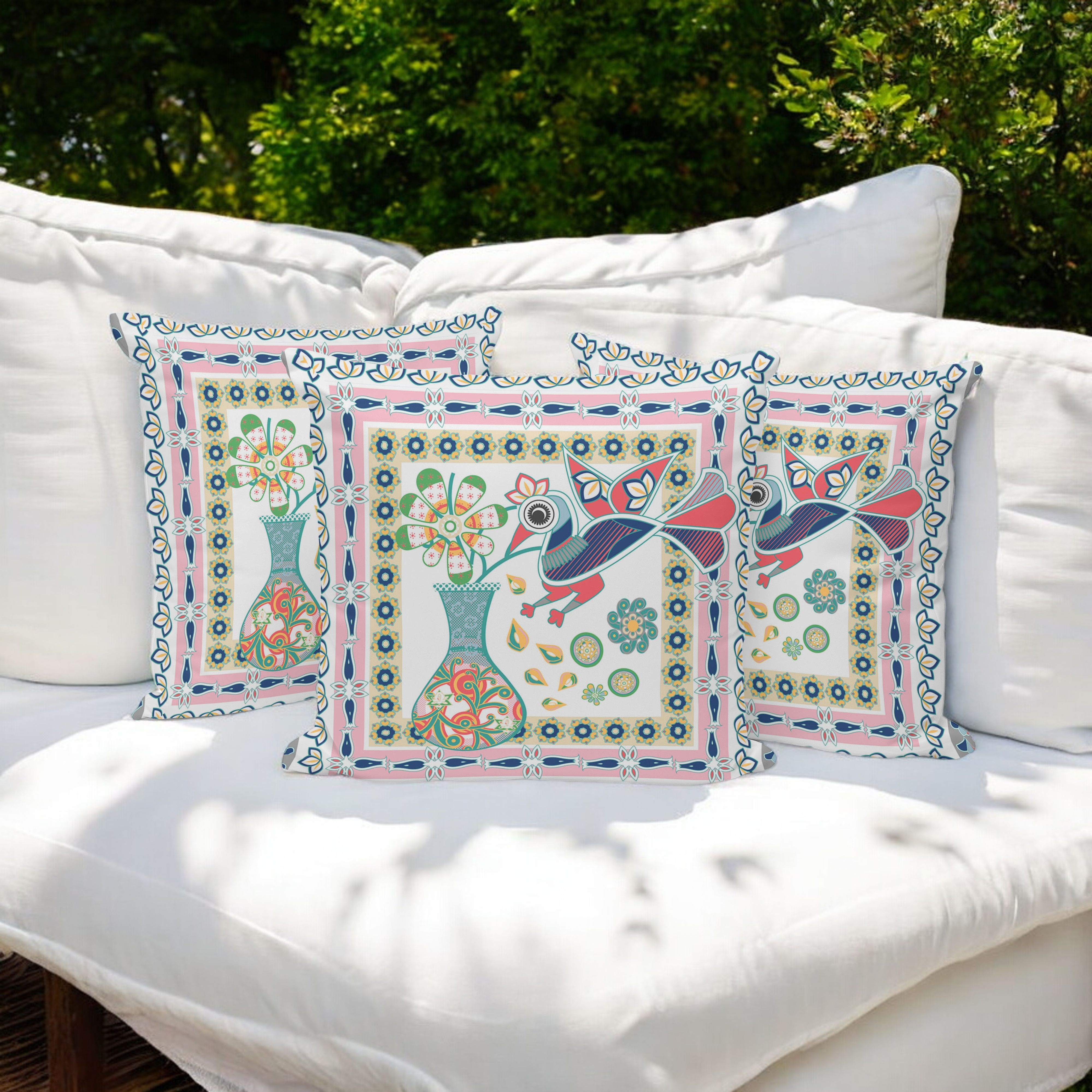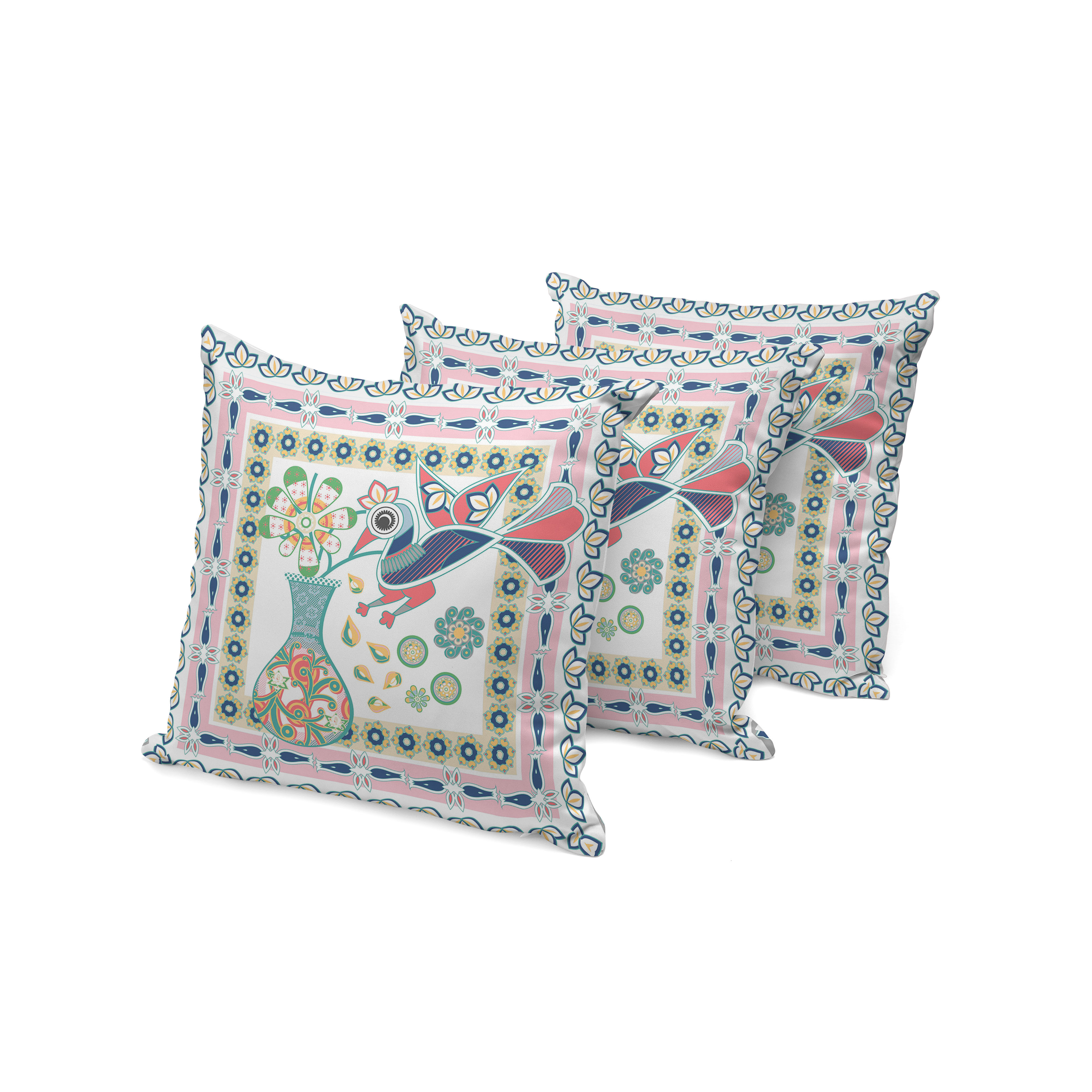 Love Your Vase Peacock Indoor/Outdoor Set of 3 Pillows in White Pink Gray
