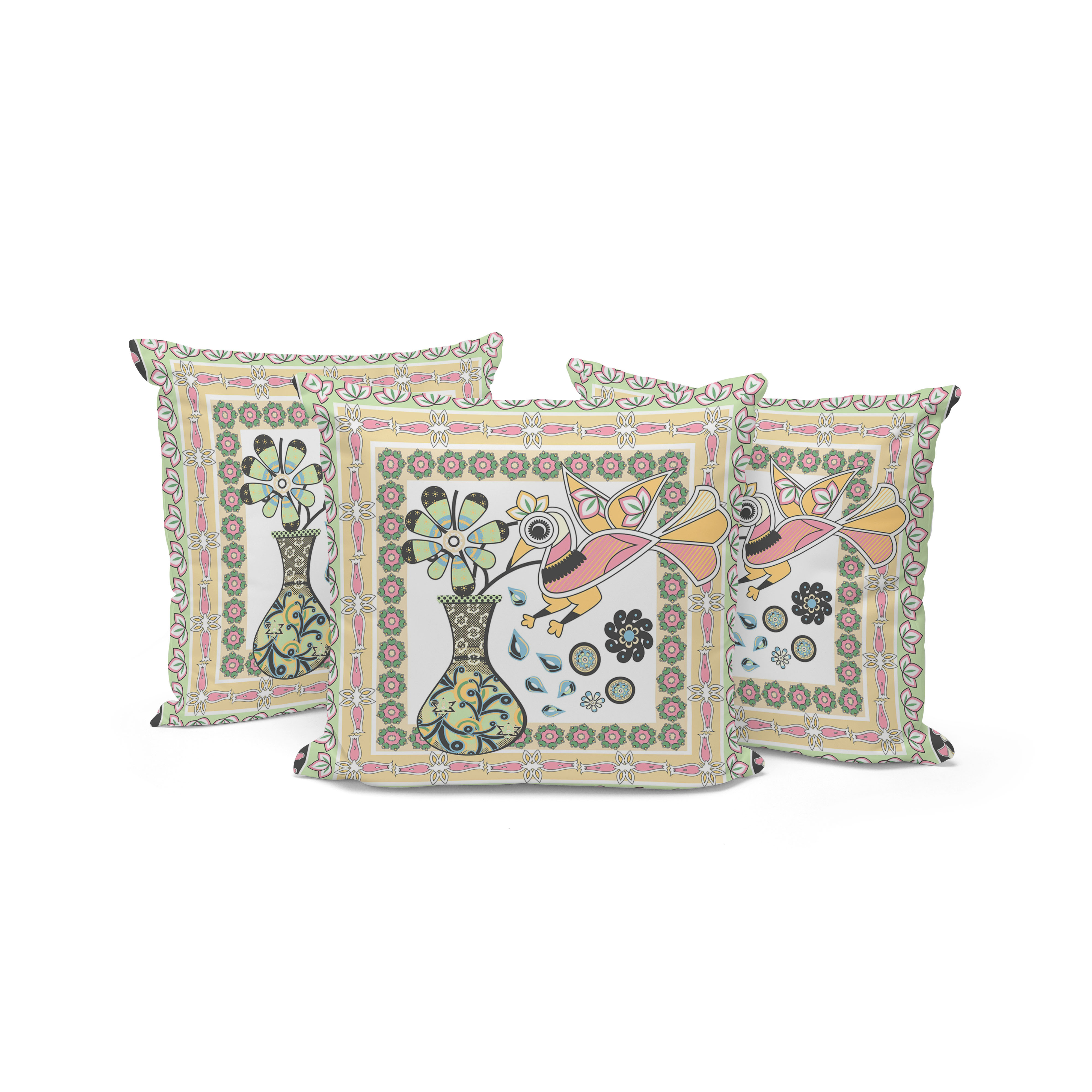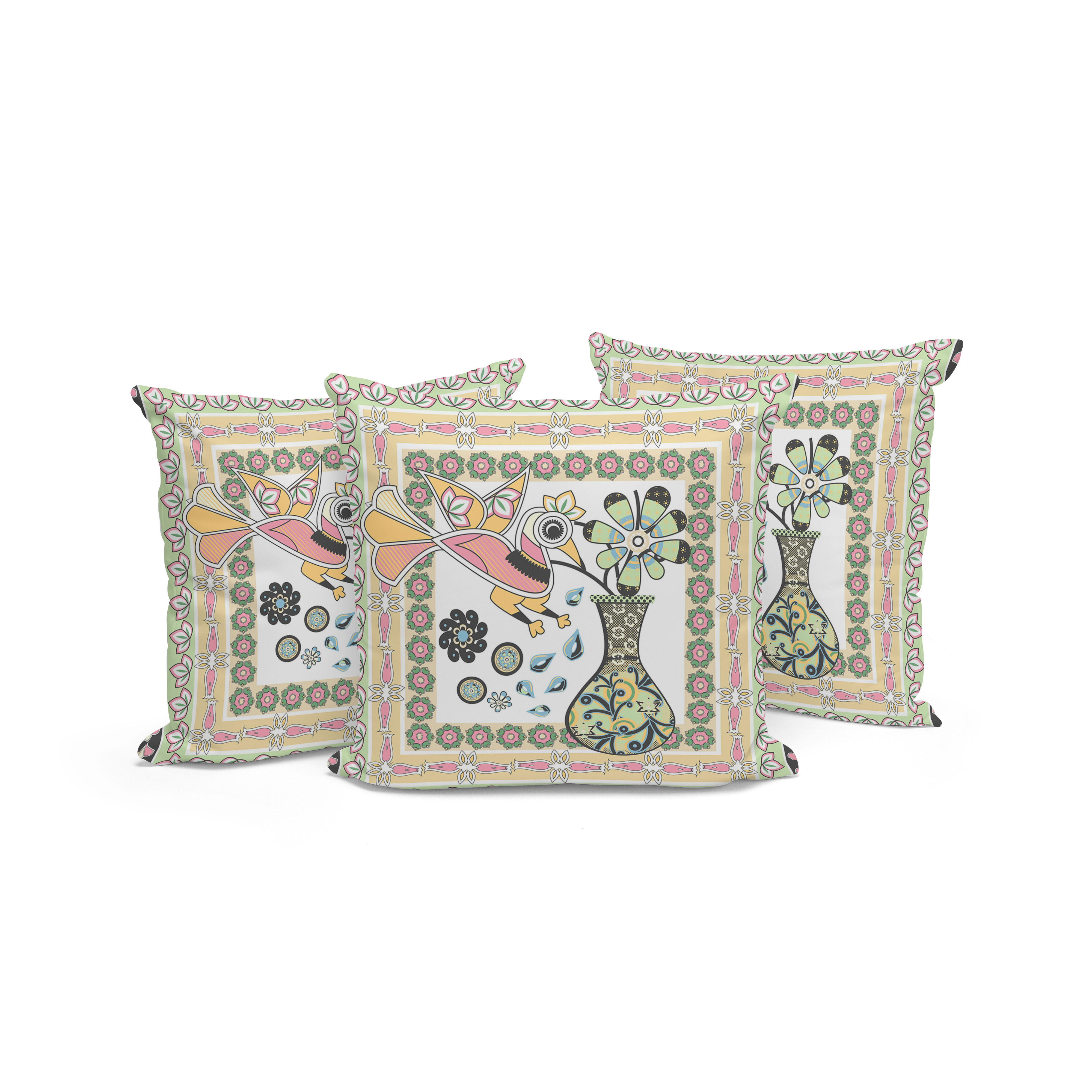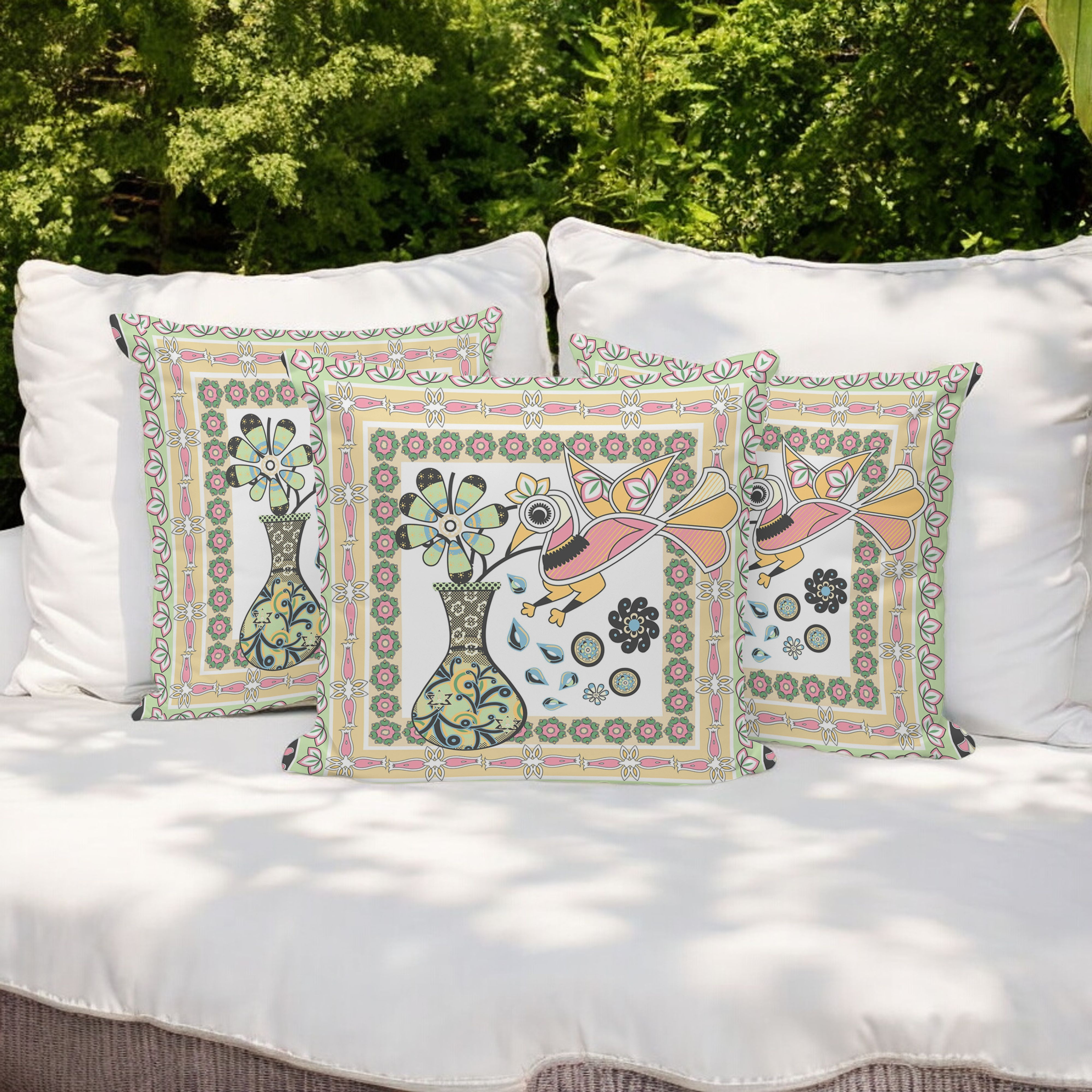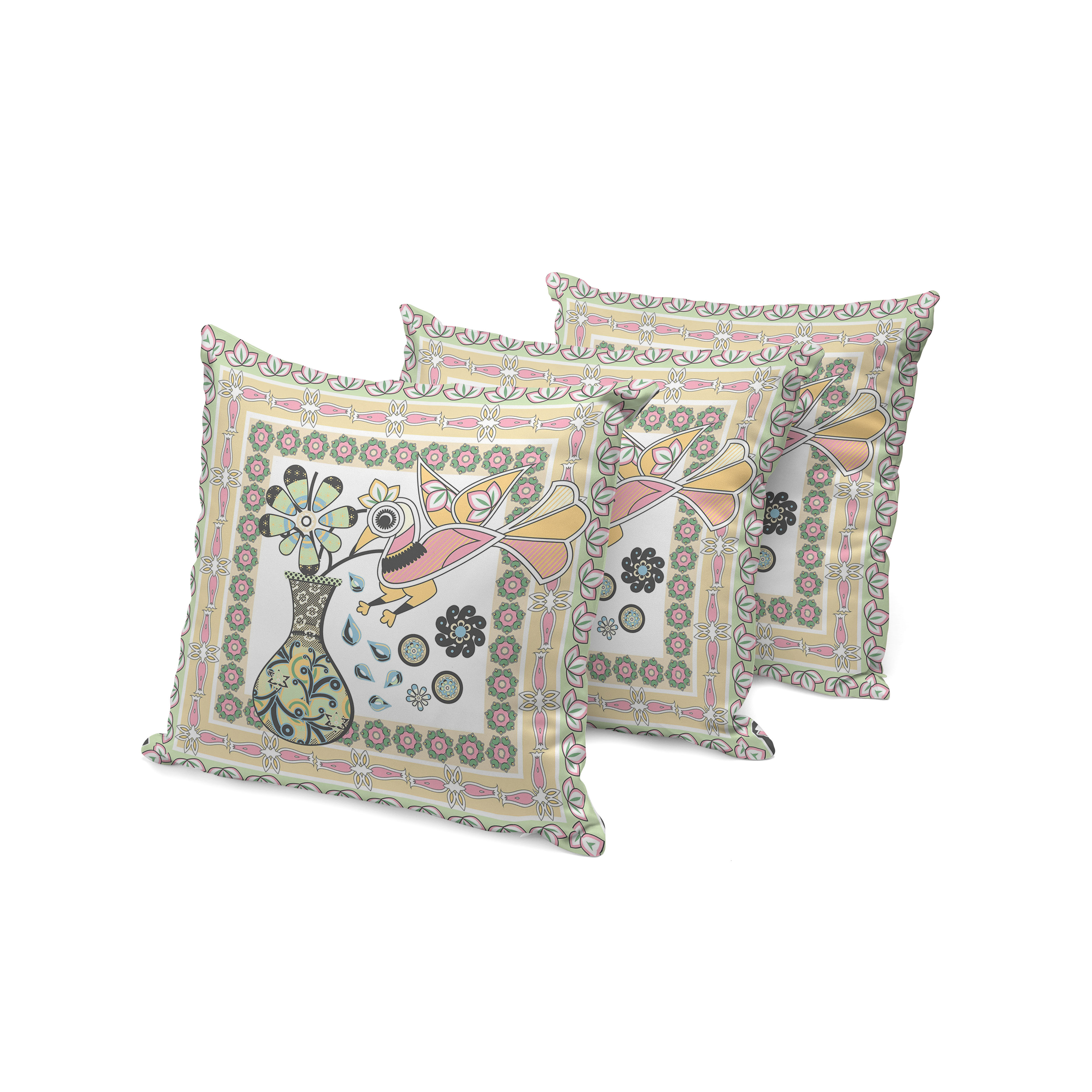Love Your Vase Peacock Indoor/Outdoor Set of 3 Pillows in White Pink Light Green