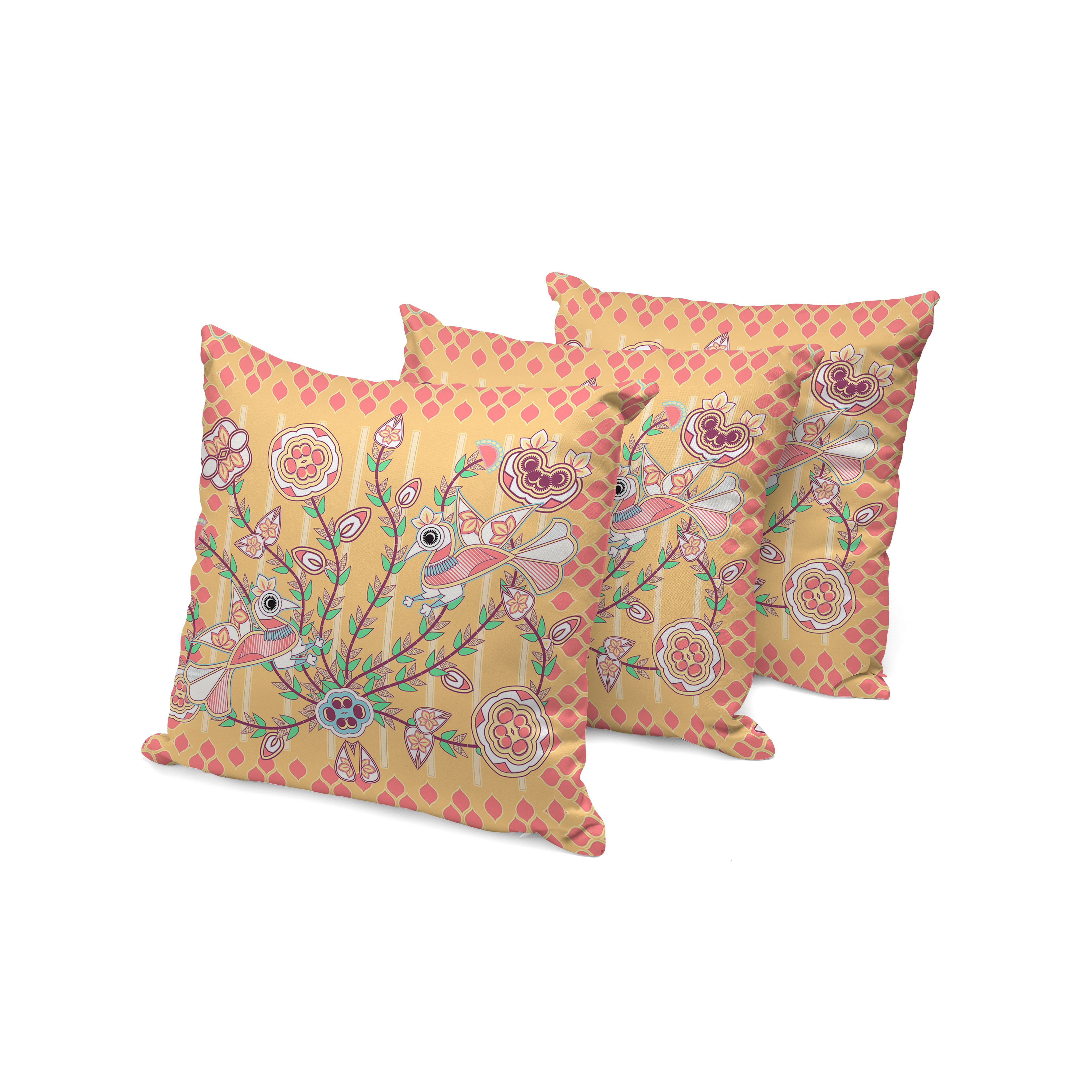 Pond Peacock Indoor/Outdoor Set of 3 Pillows in Muted Yellow Peach White