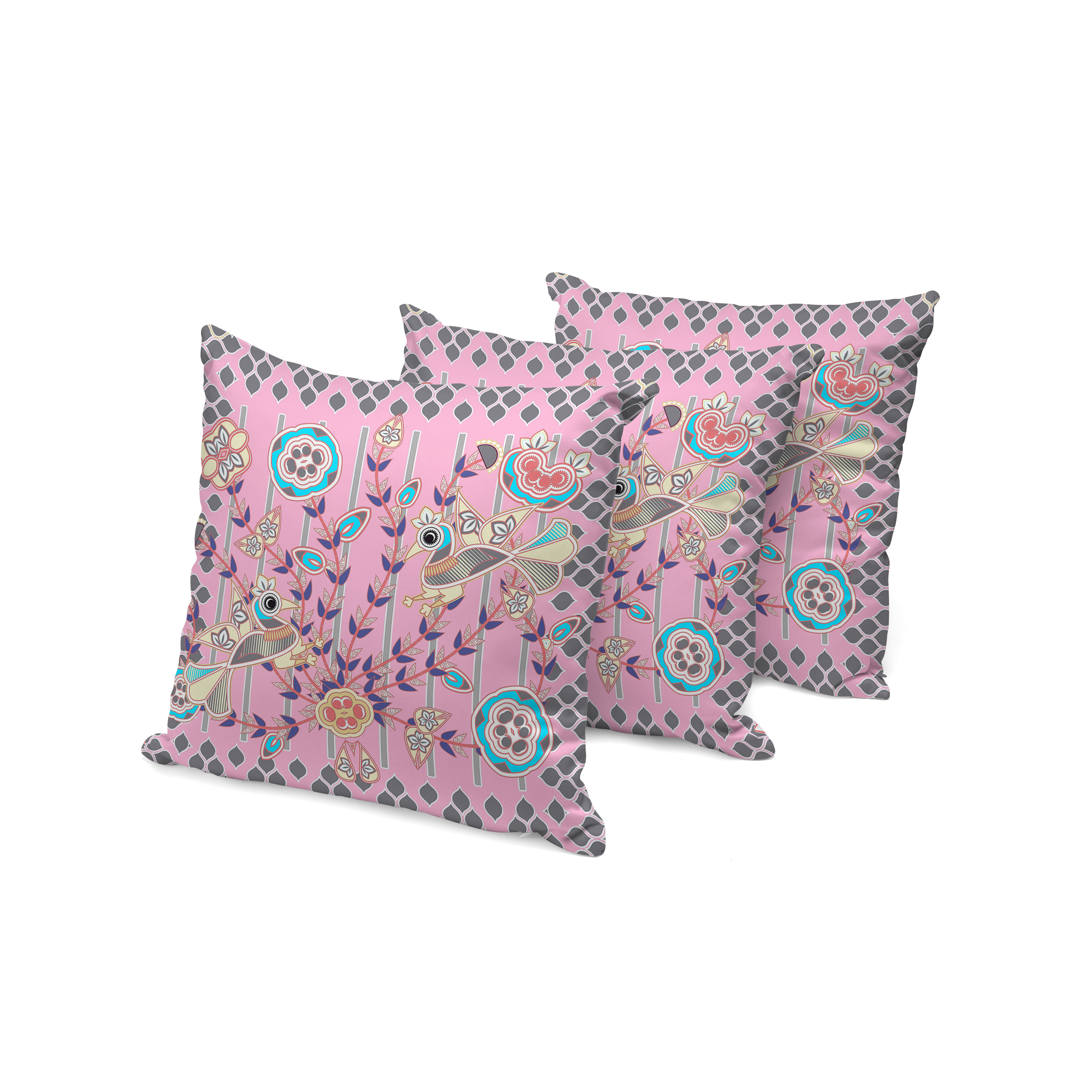 Pond Peacock Indoor/Outdoor Set of 3 Pillows in Pink Gray Sky Blue Cream