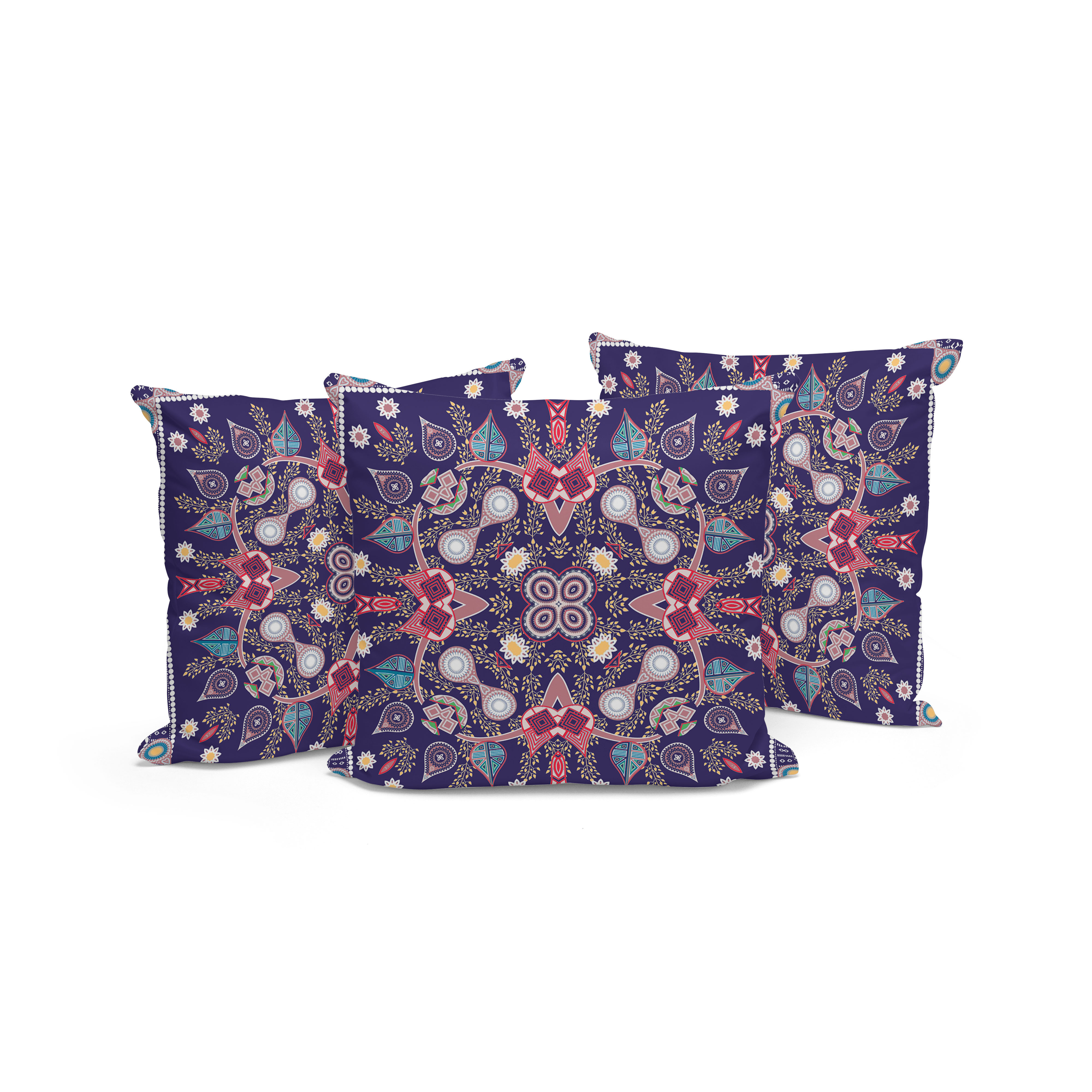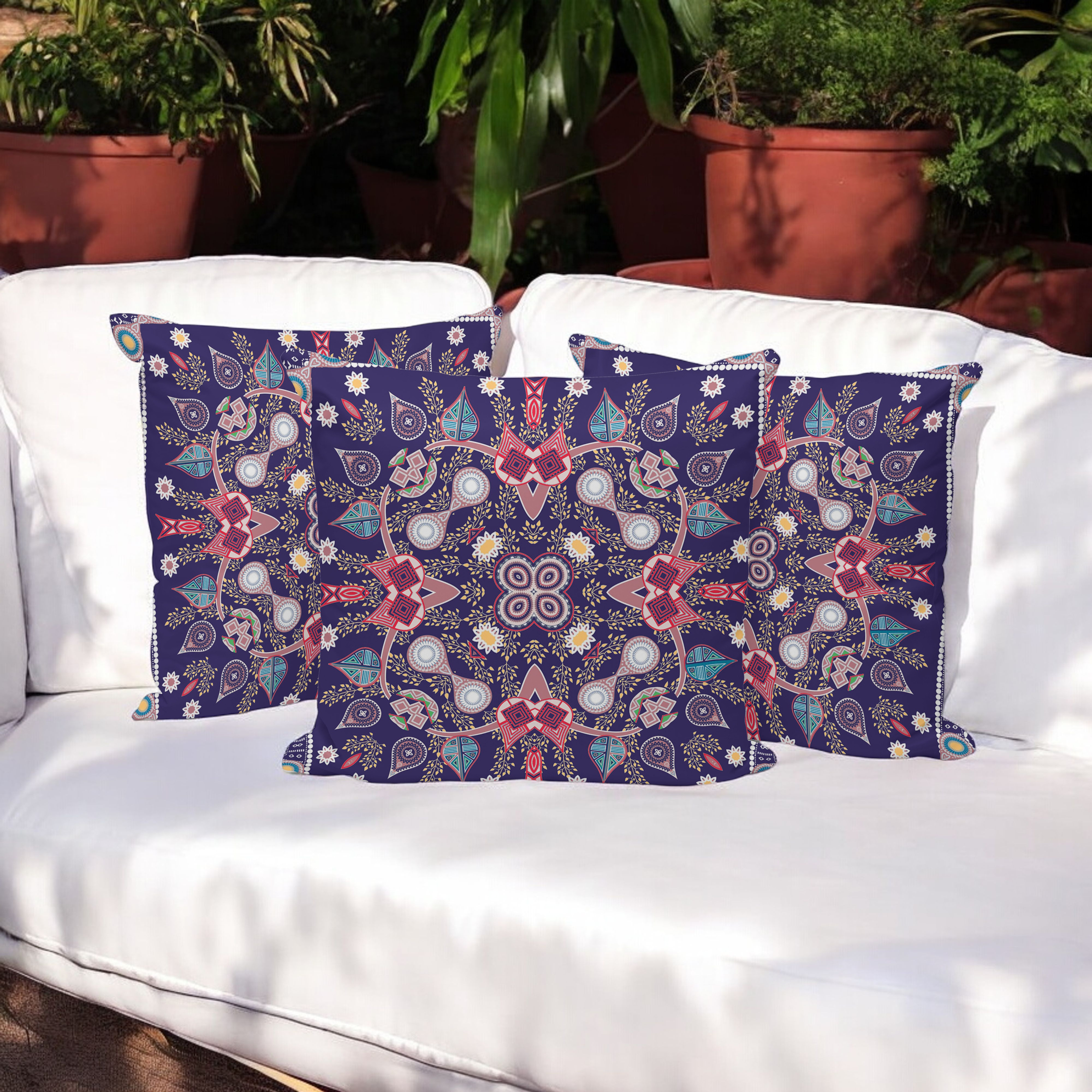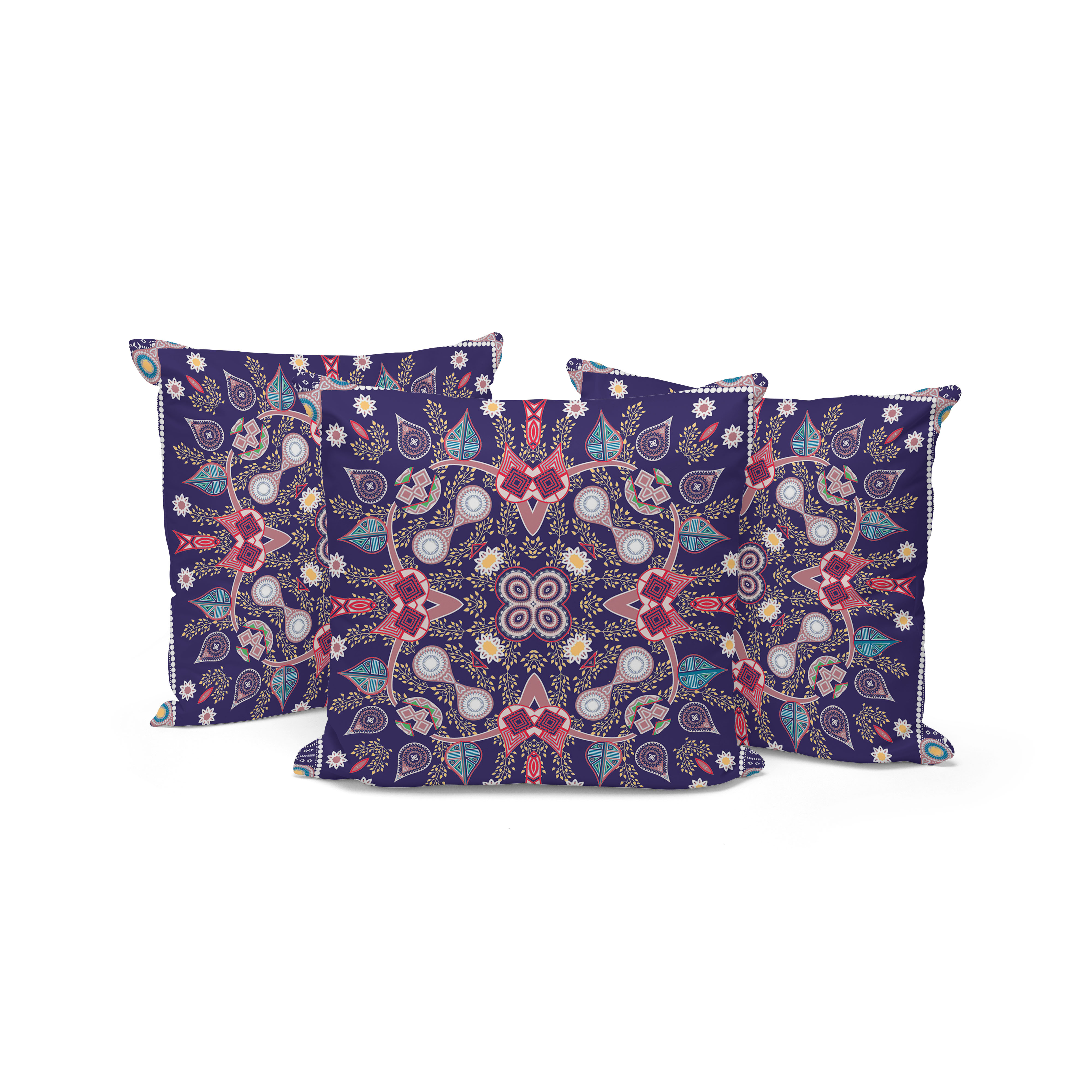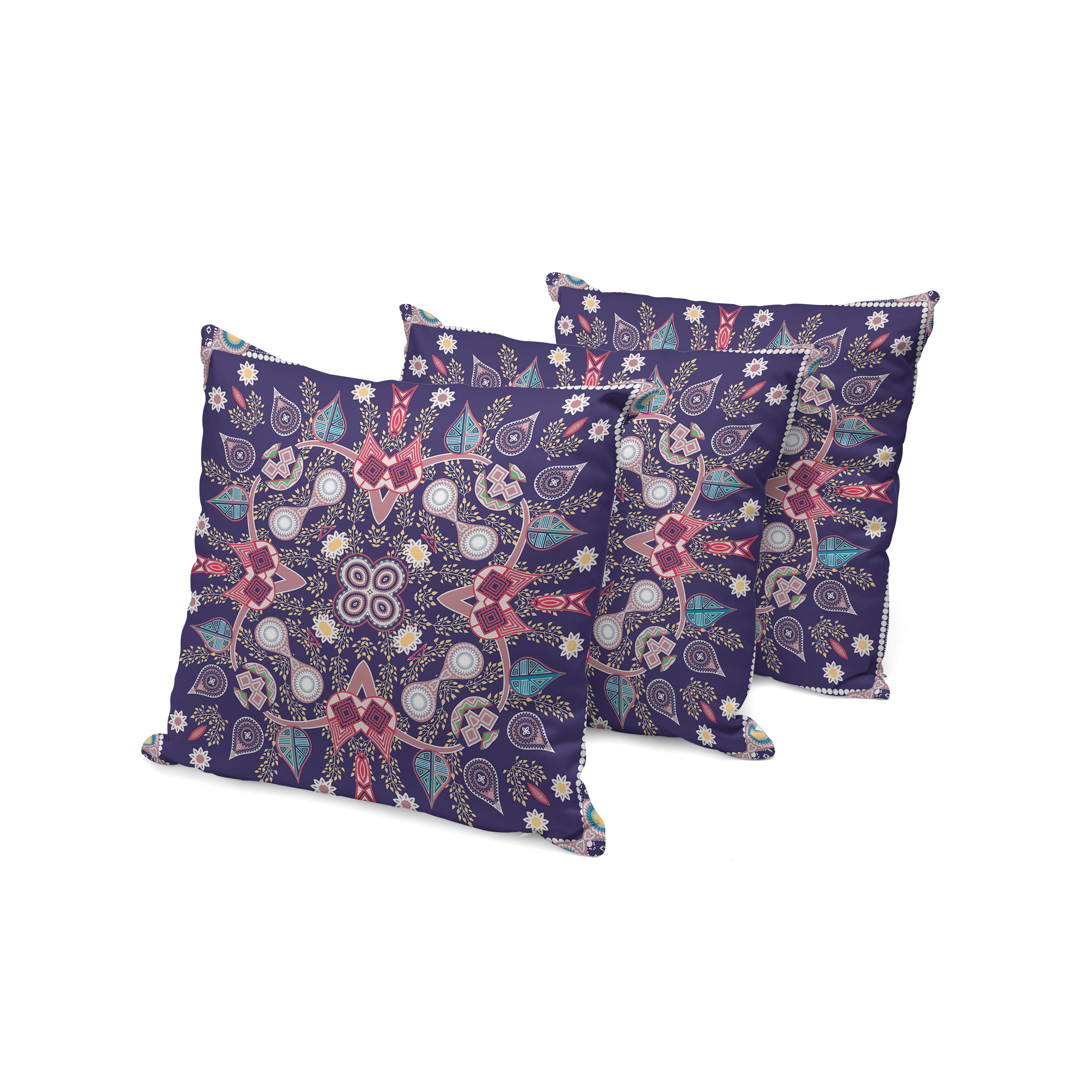 Paisley Leaf Geo Indoor/Outdoor Set of 3 Pillows in Dark Purple Pink