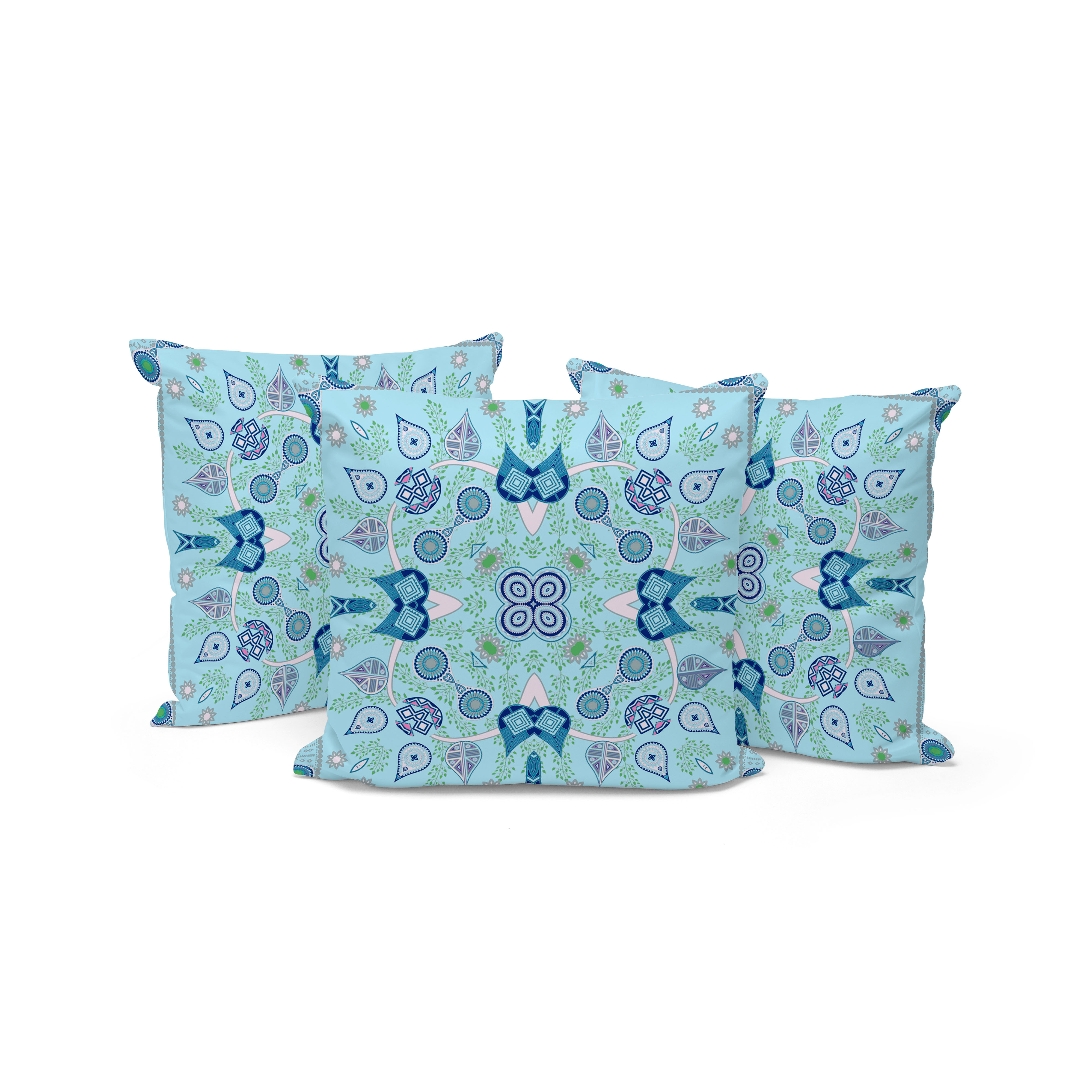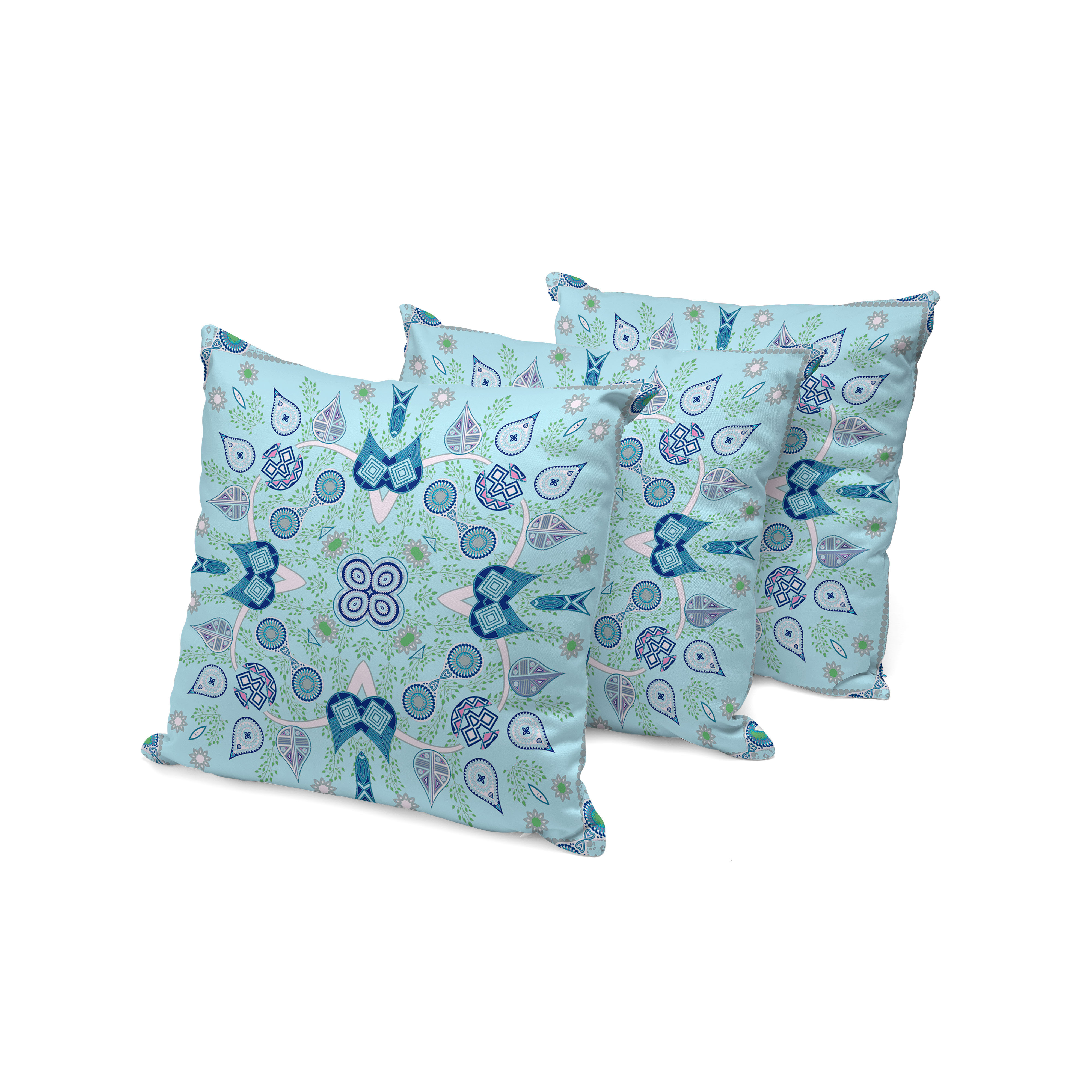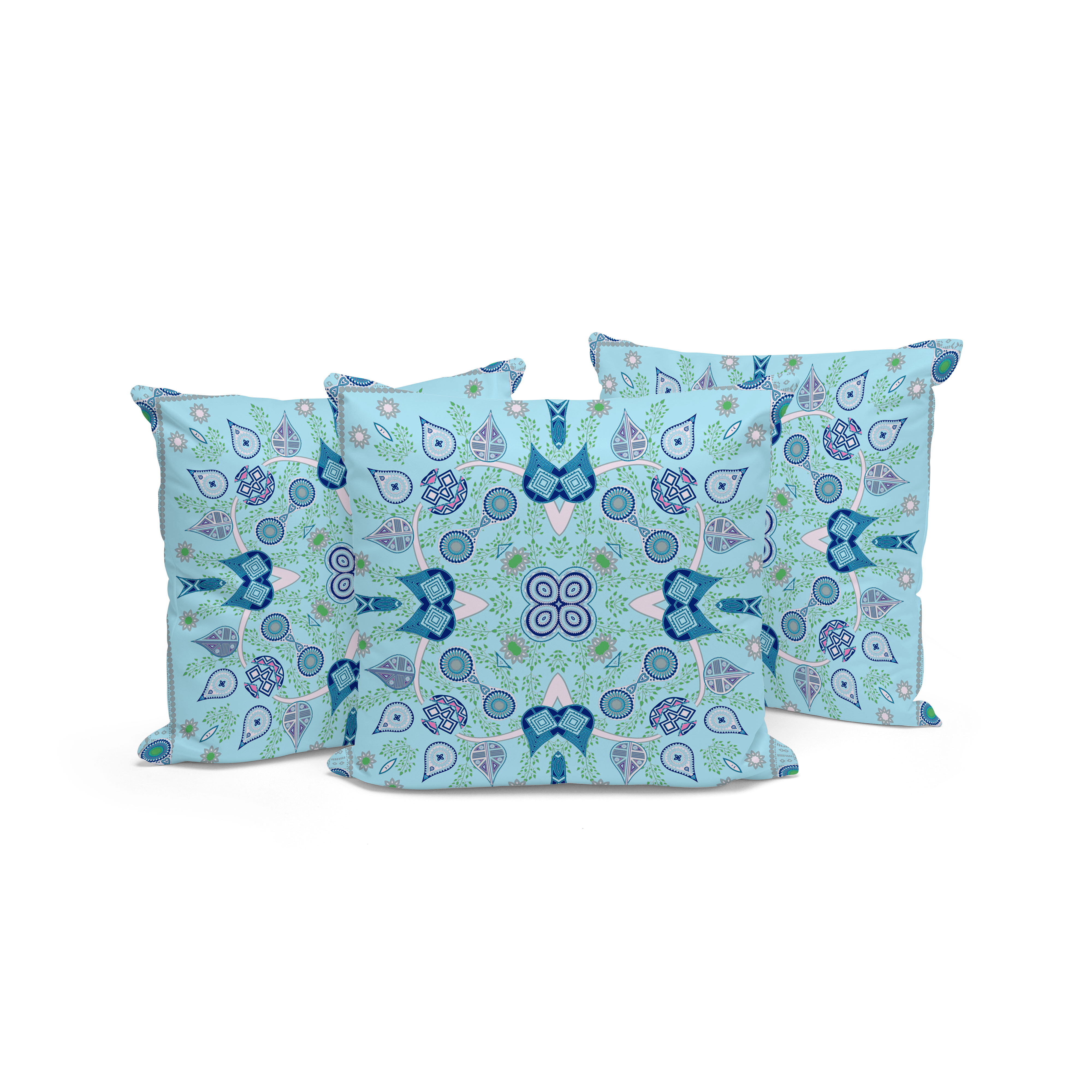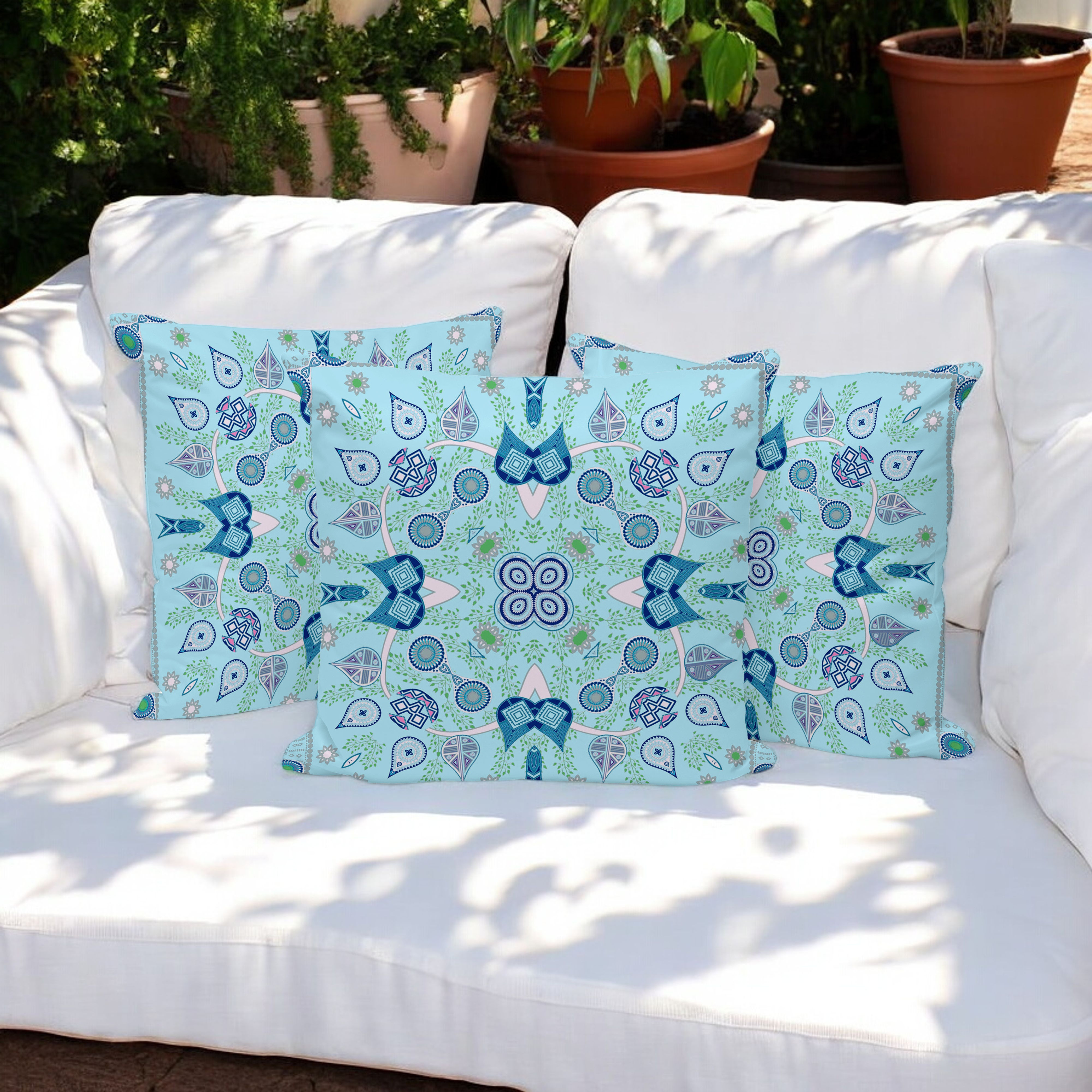 Paisley Leaf Geo Indoor/Outdoor Set of 3 Pillows in Light Blue Aqua White