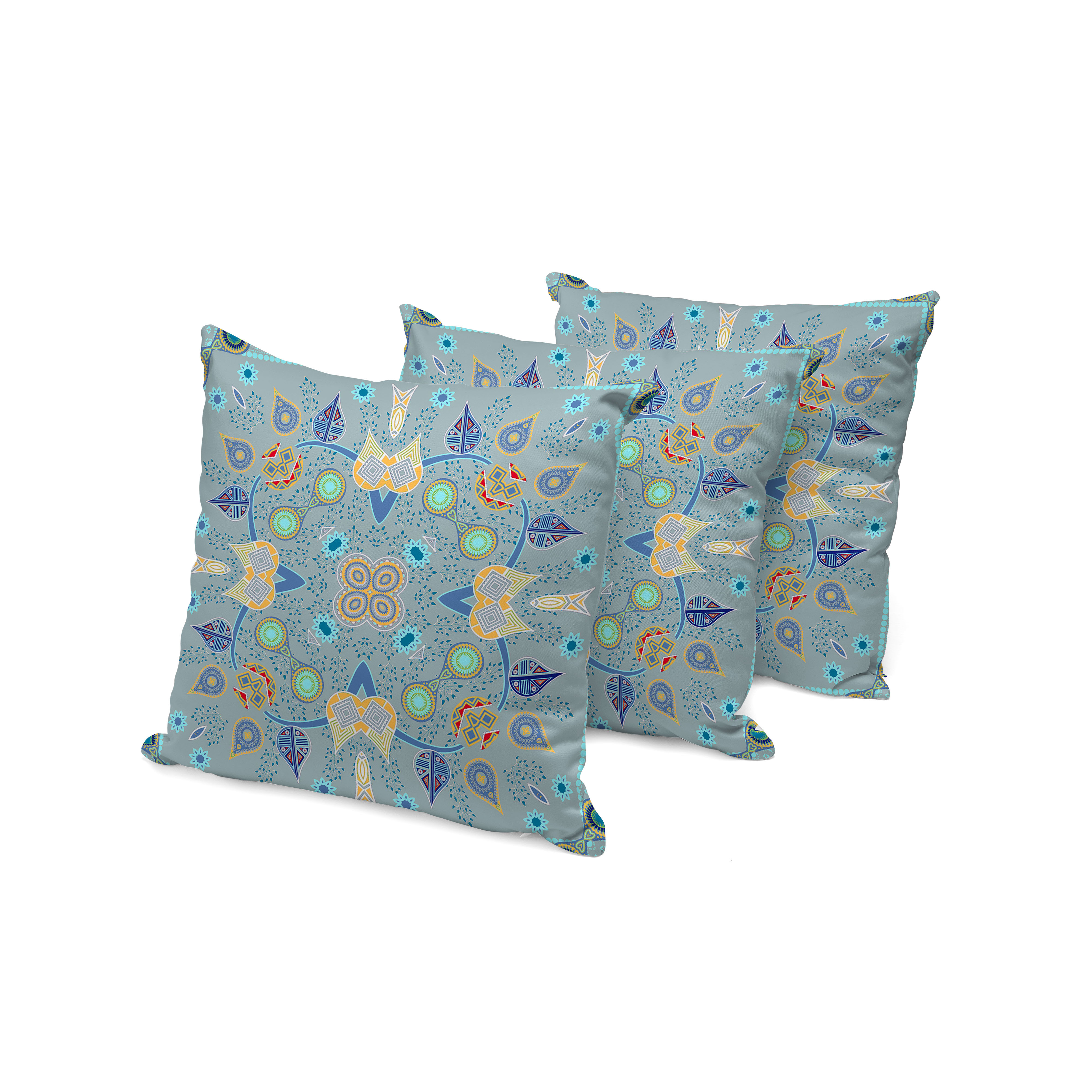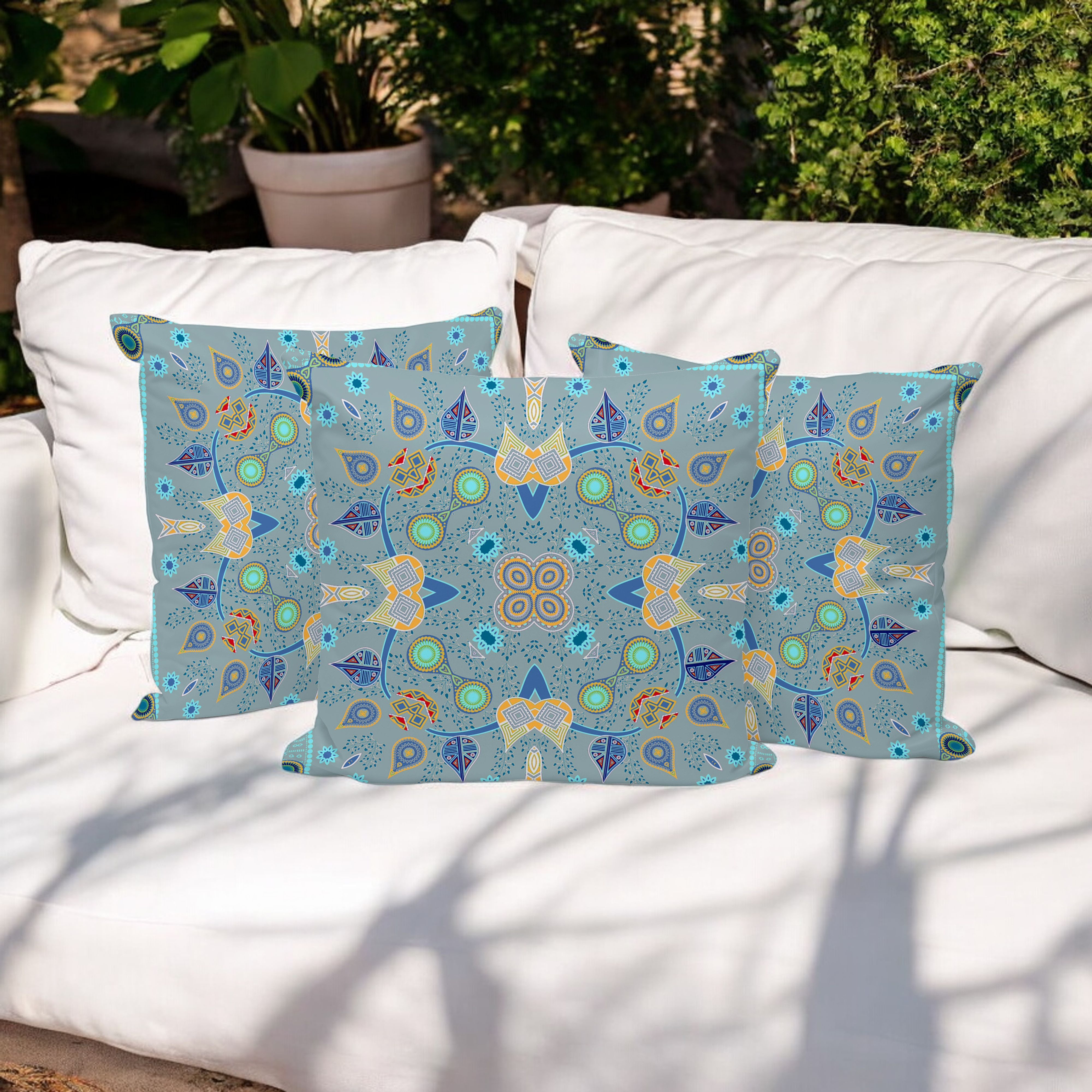 Paisley Leaf Geo Indoor/Outdoor Set of 3 Pillows in Light Gray Blue Yellow