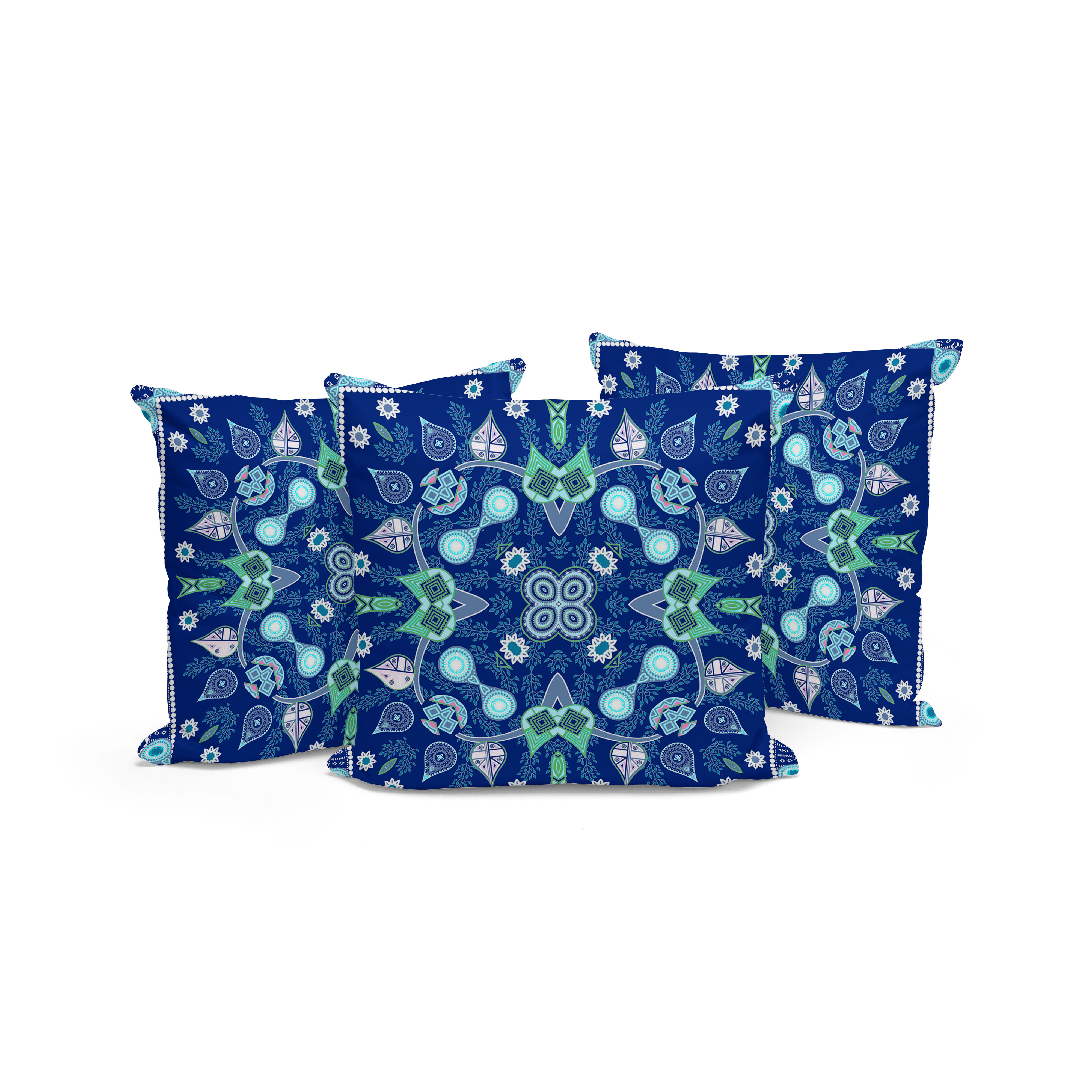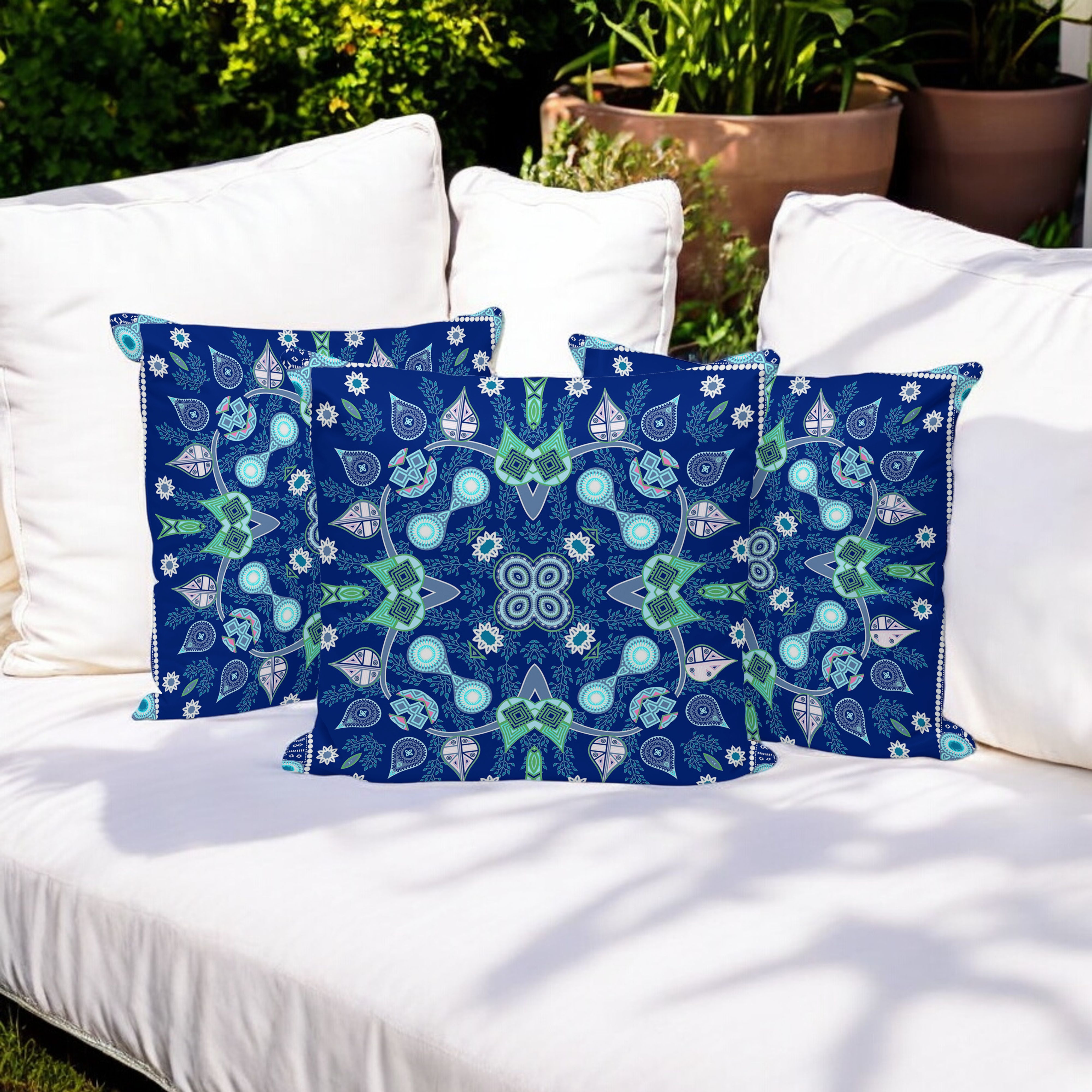 Paisley Leaf Geo Indoor/Outdoor Set of 3 Pillows in Midnight Blue Green White