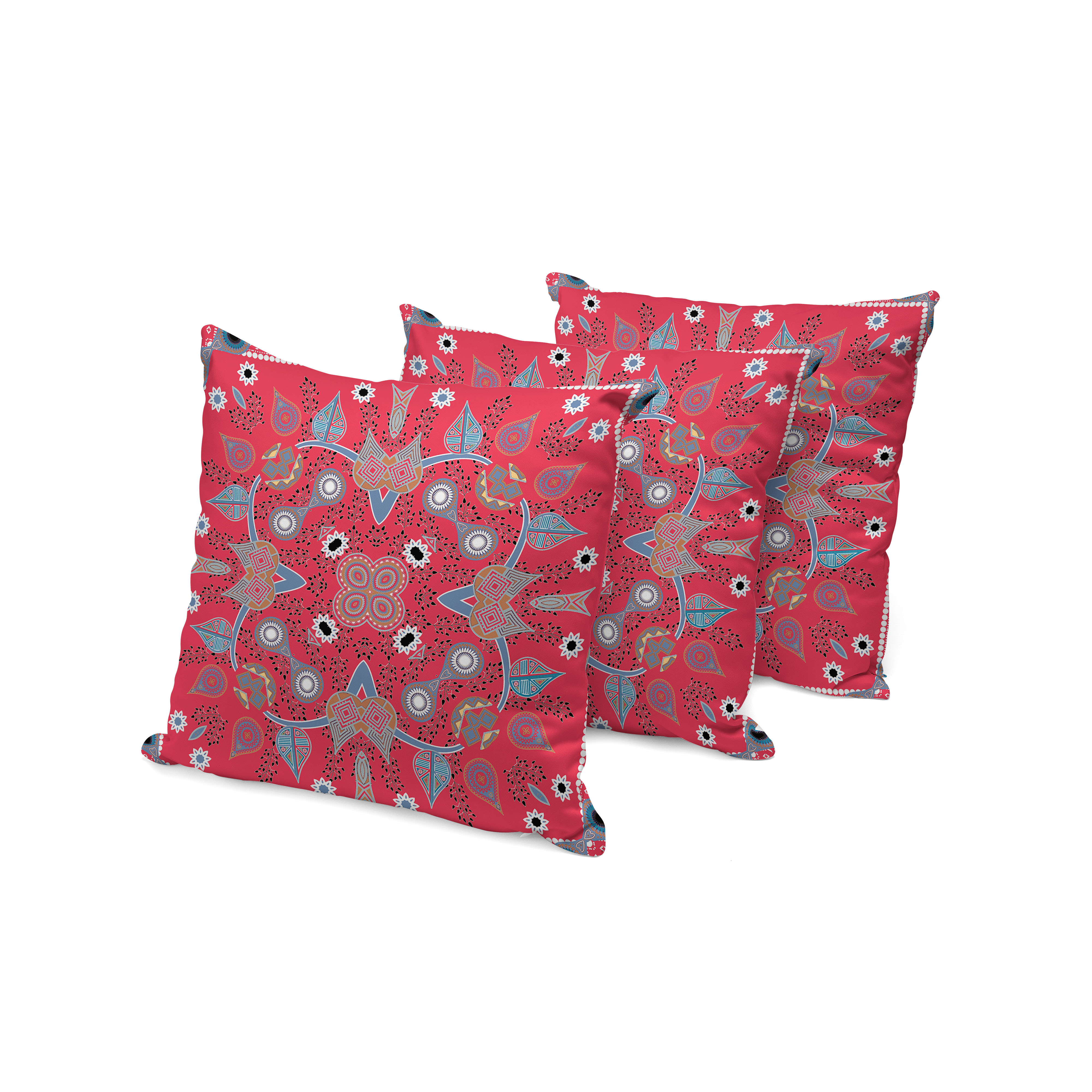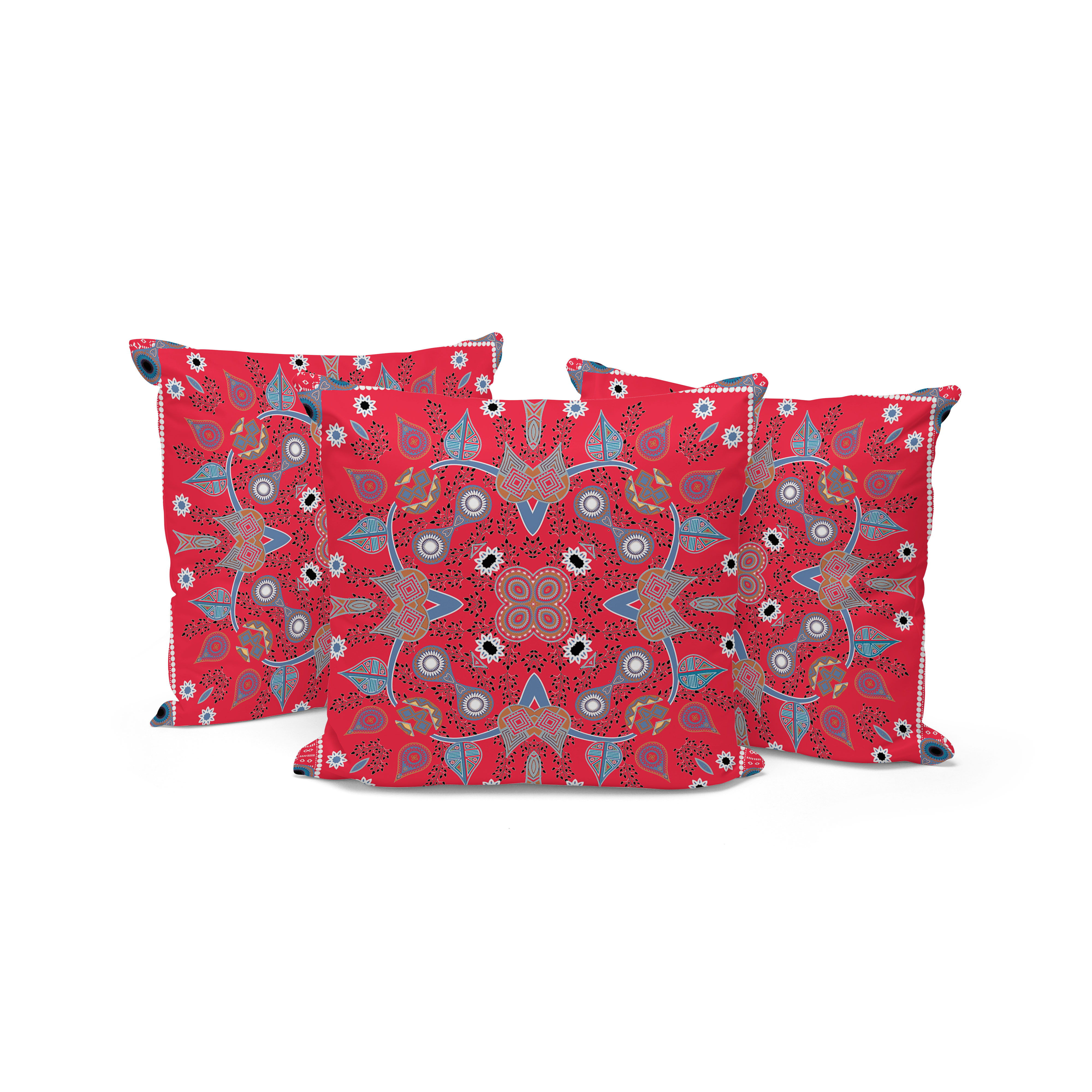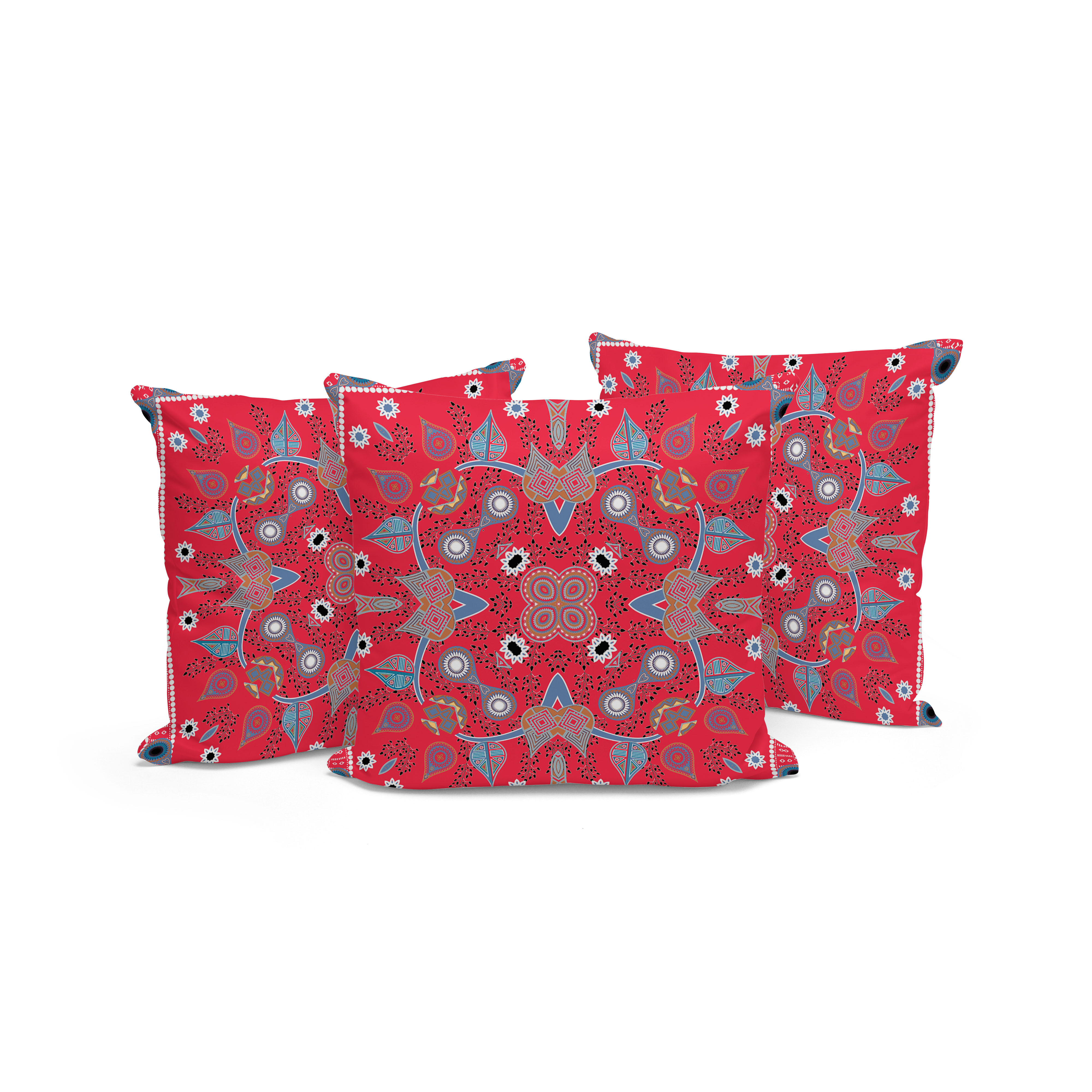Paisley Leaf Geo Indoor/Outdoor Set of 3 Pillows in Red Gray Blue