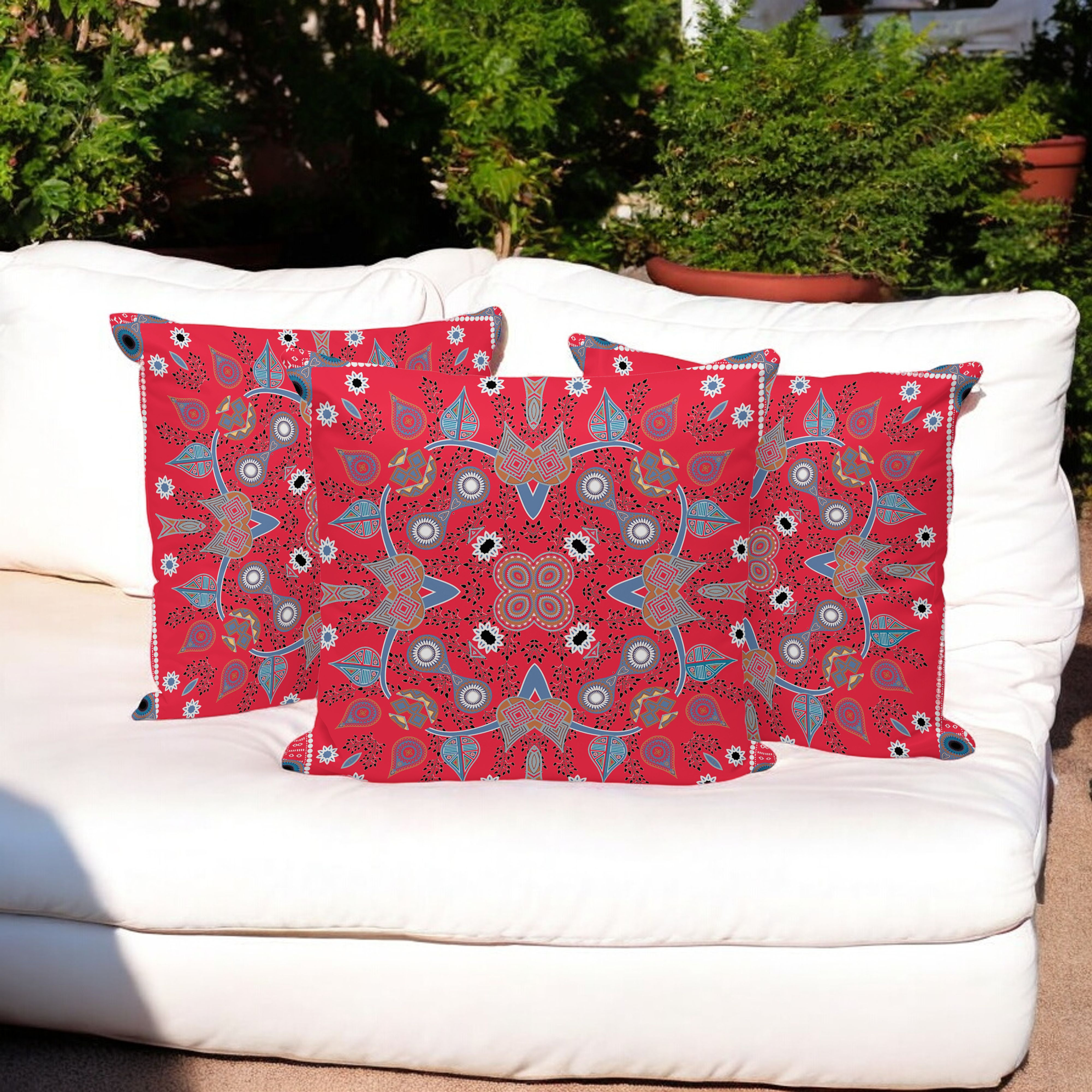 Set of Three Red Abstract Indoor Outdoor Throw Pillow