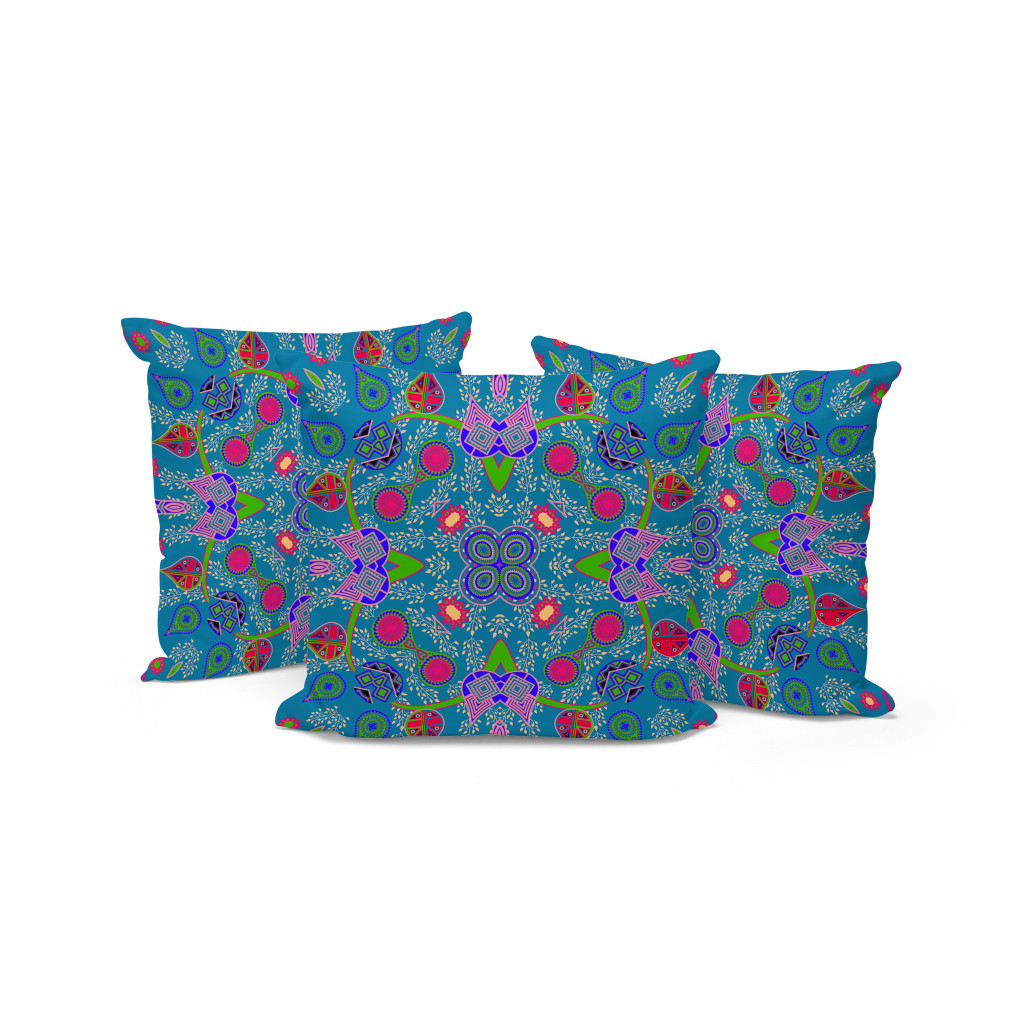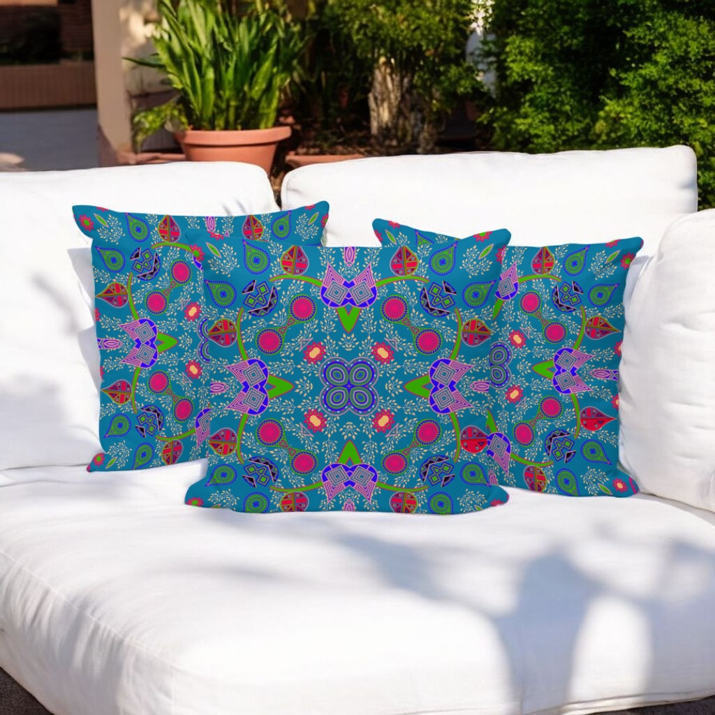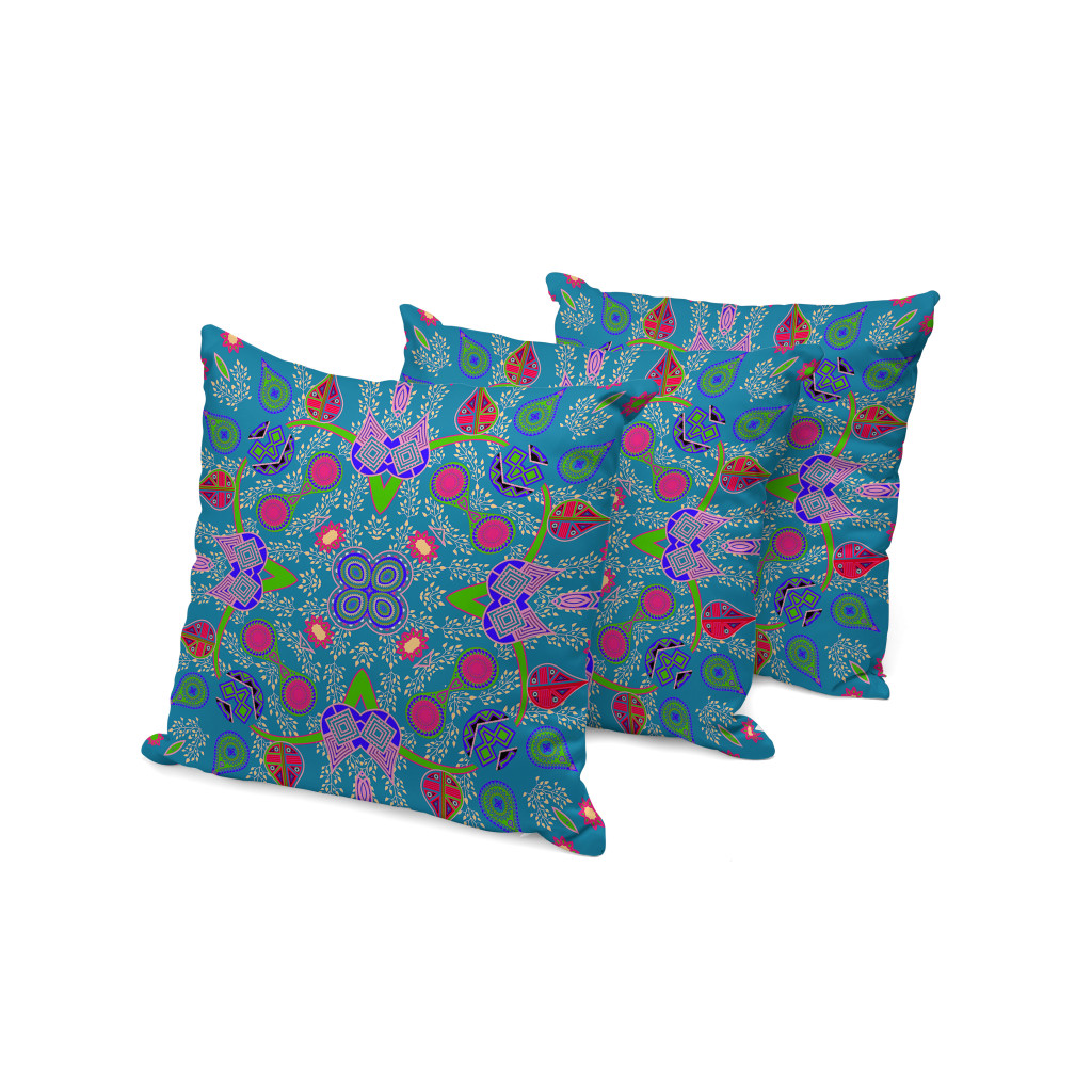 Paisley Pattern Square Indoor/Outdoor Set of 3 Pillows in Dark Muted Blue Pink Green
