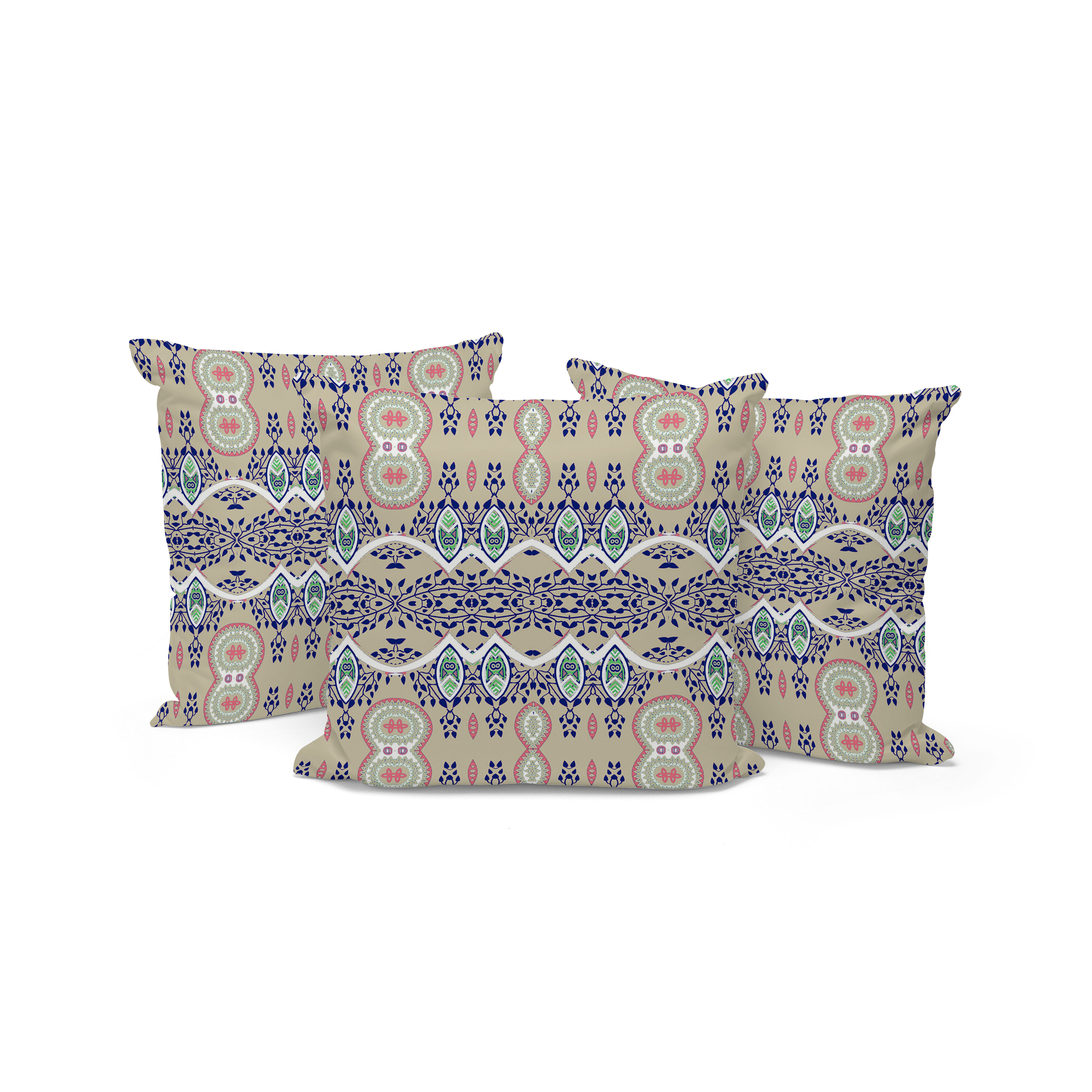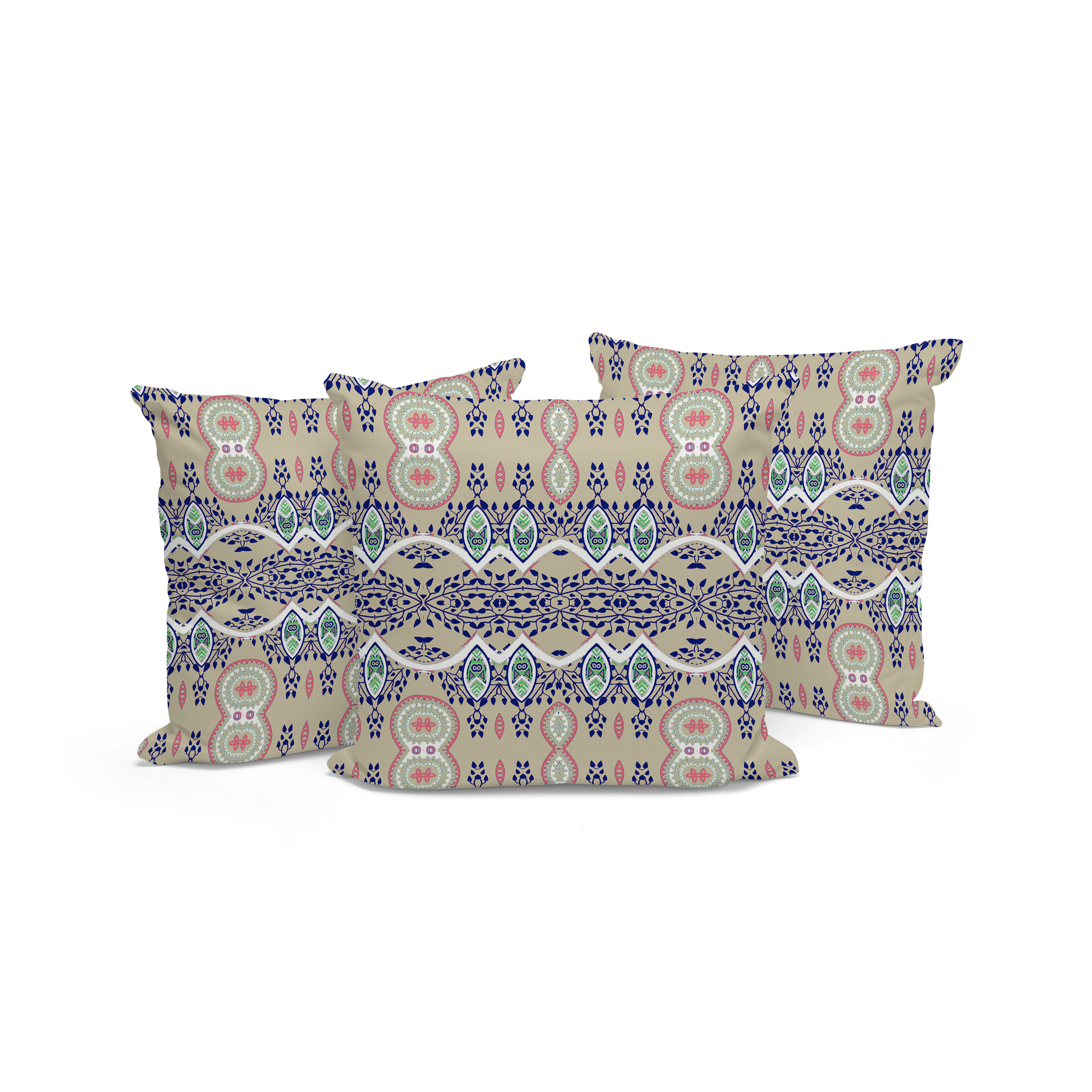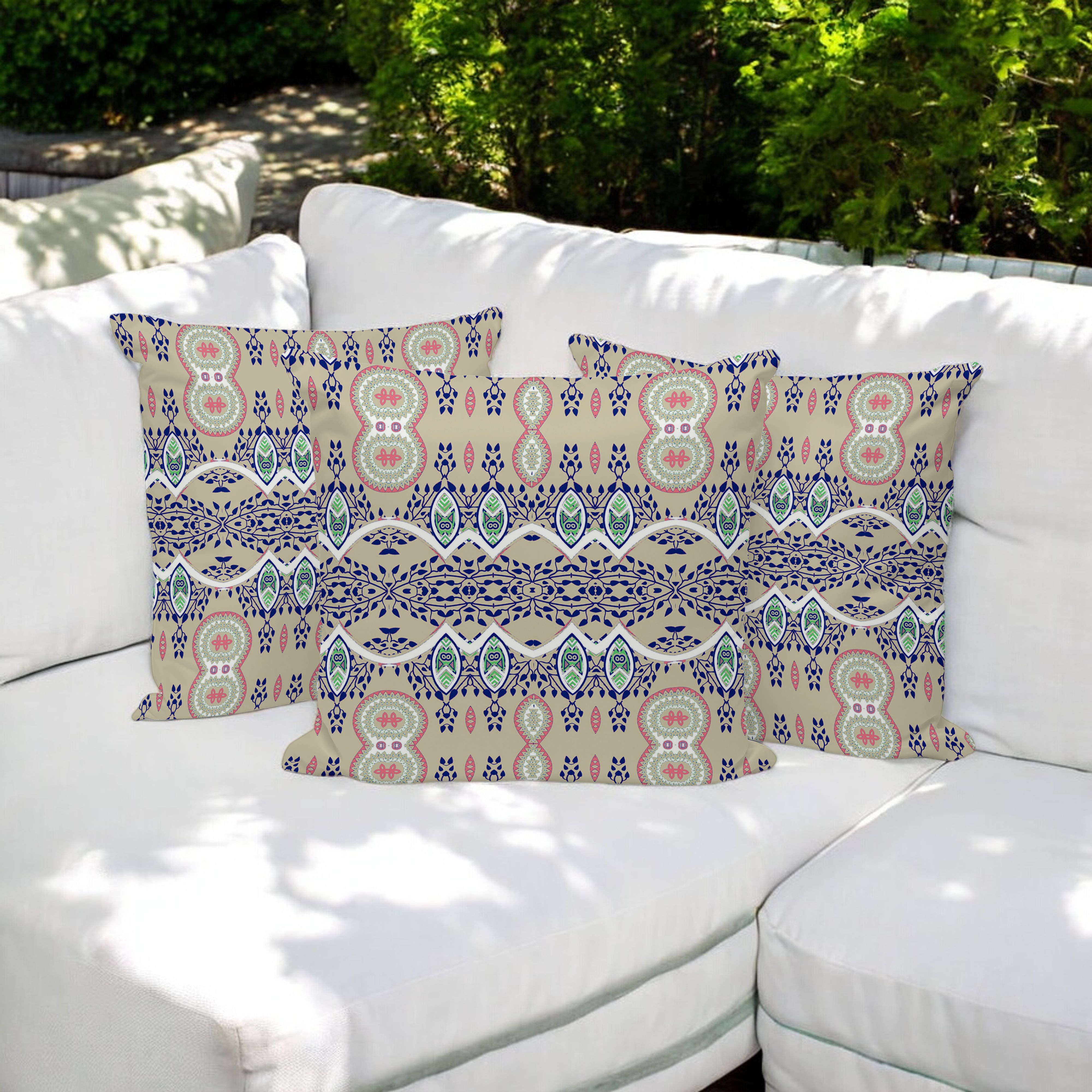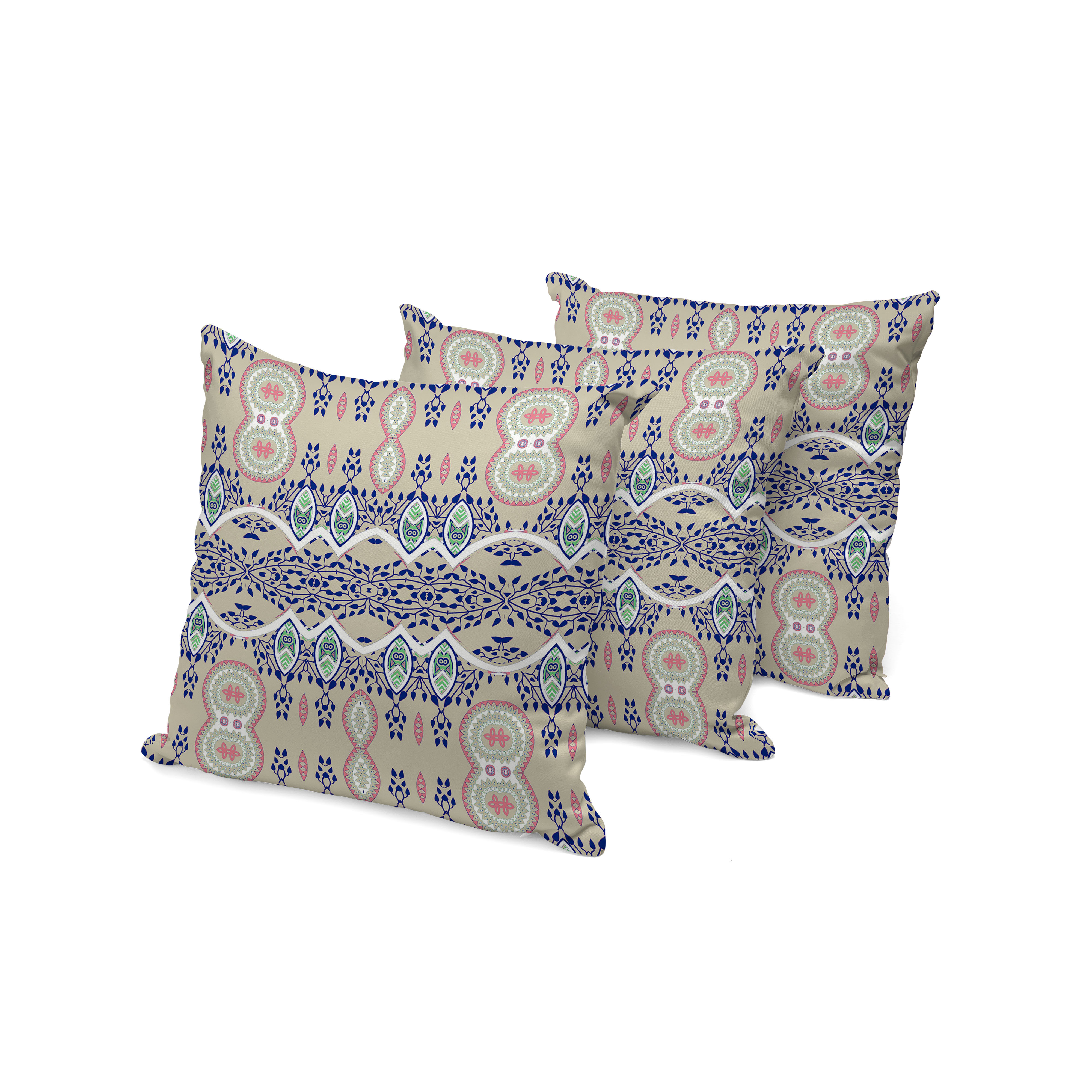 Sephalina Paisley Leaves Indoor/Outdoor Set of 3 Pillows in Beige Blue White