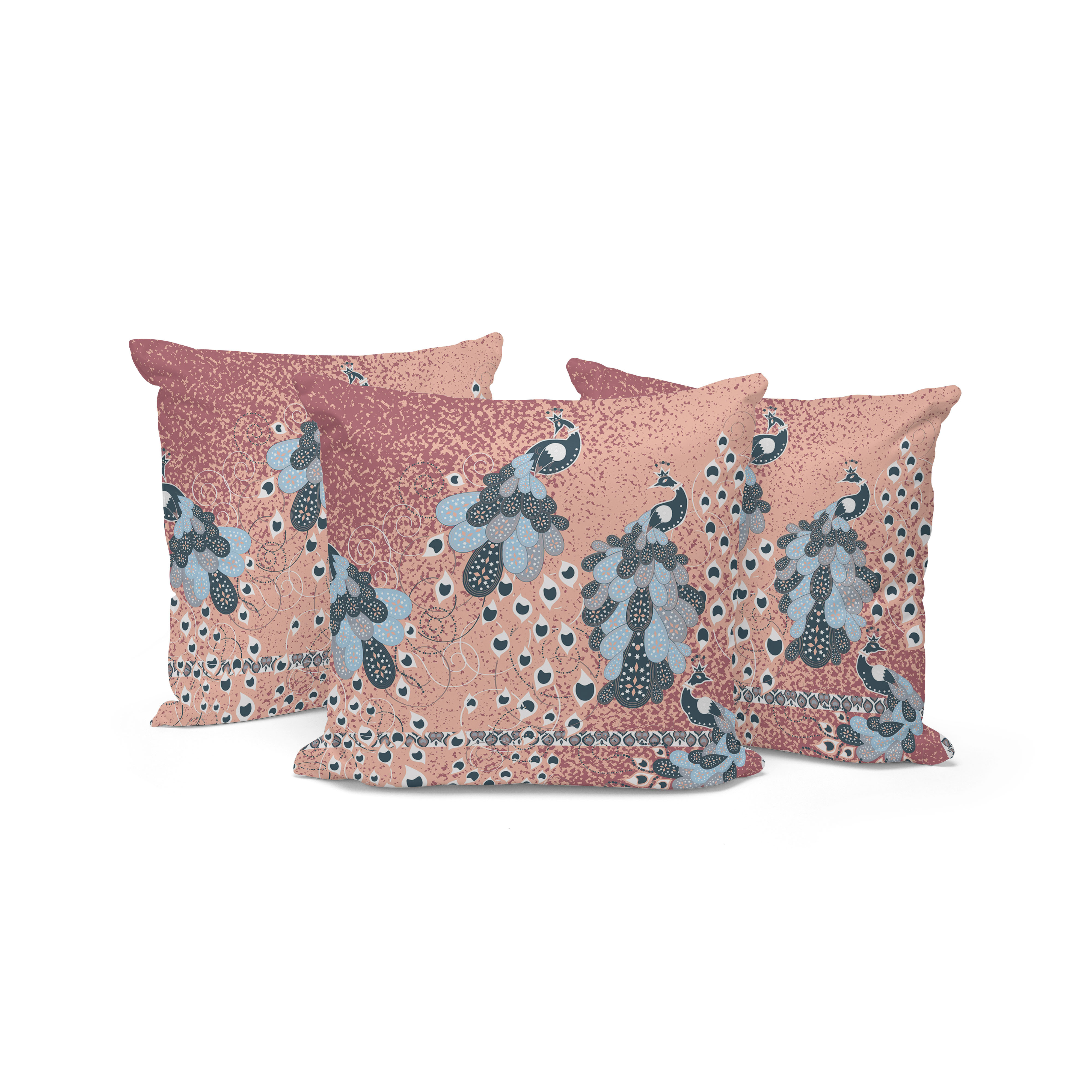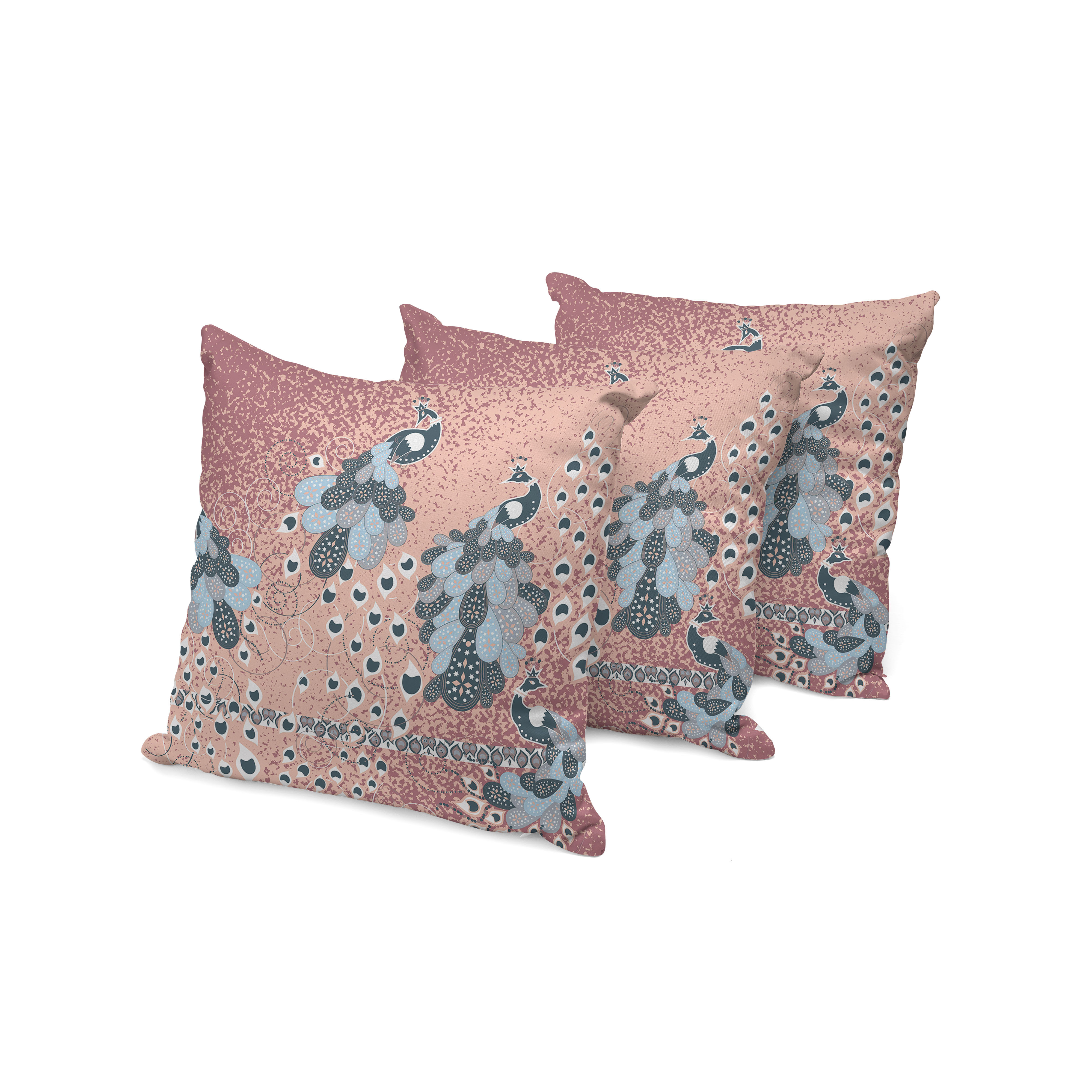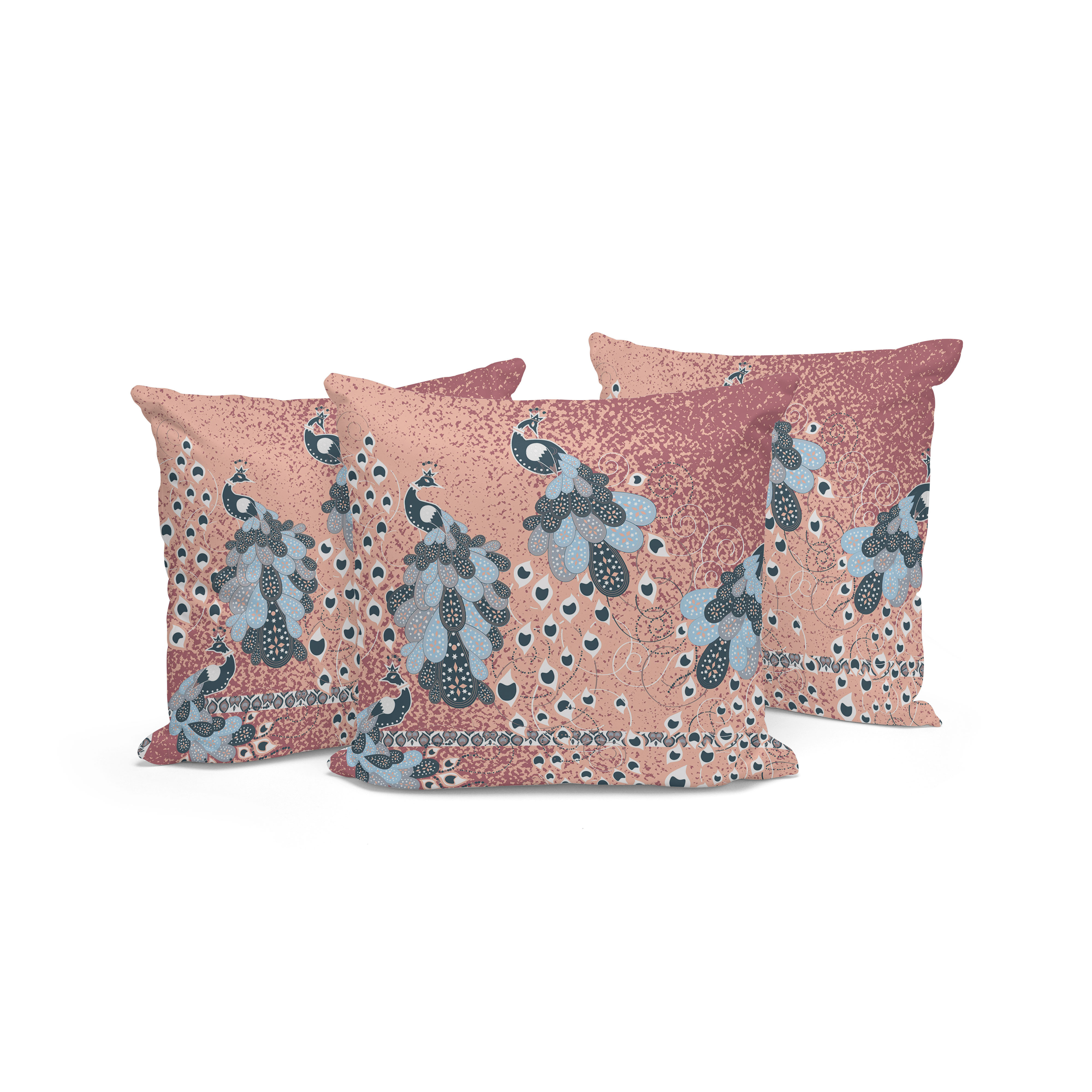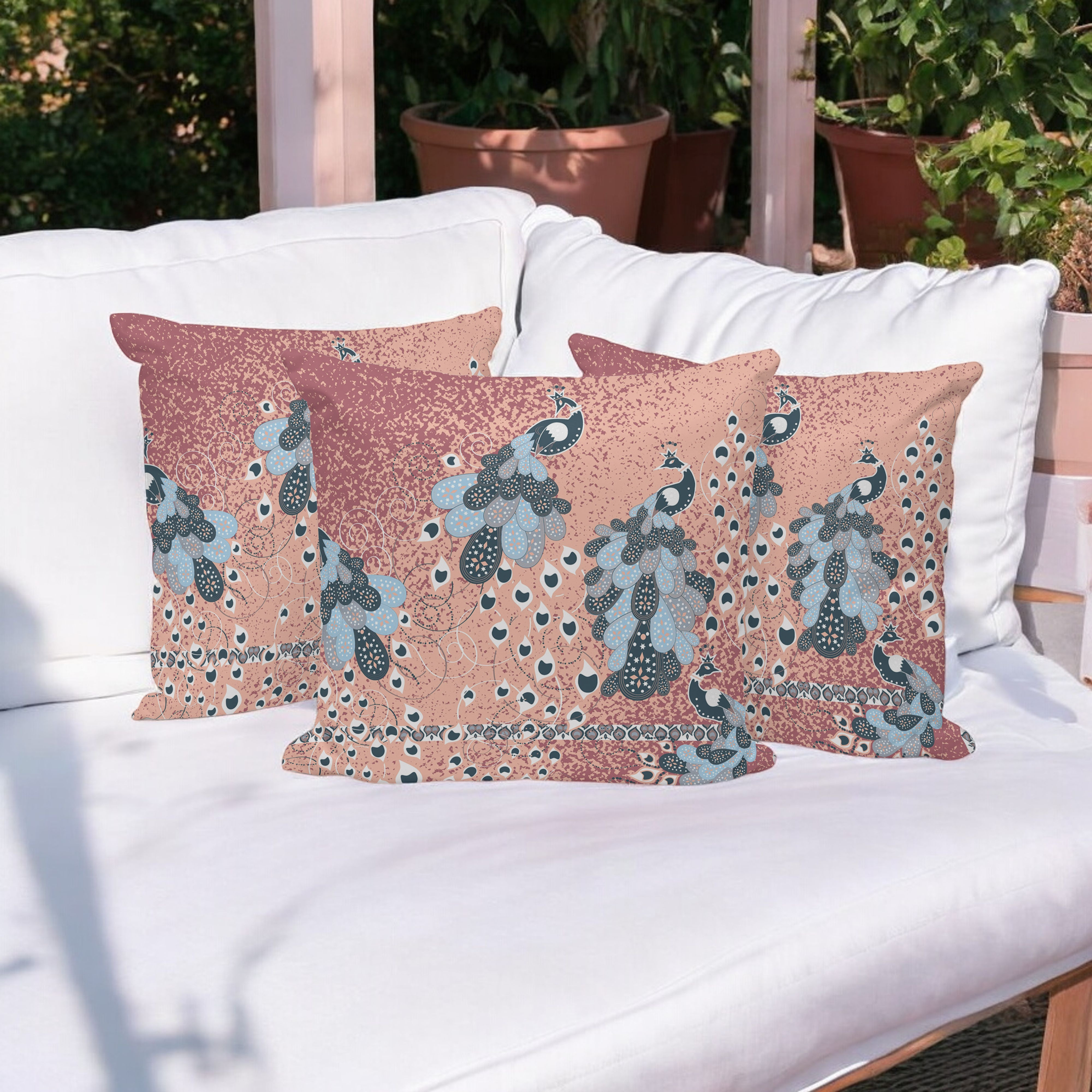 Painted Peacock Indoor/Outdoor Set of 3 Pillows in Blue on Muted Magenta