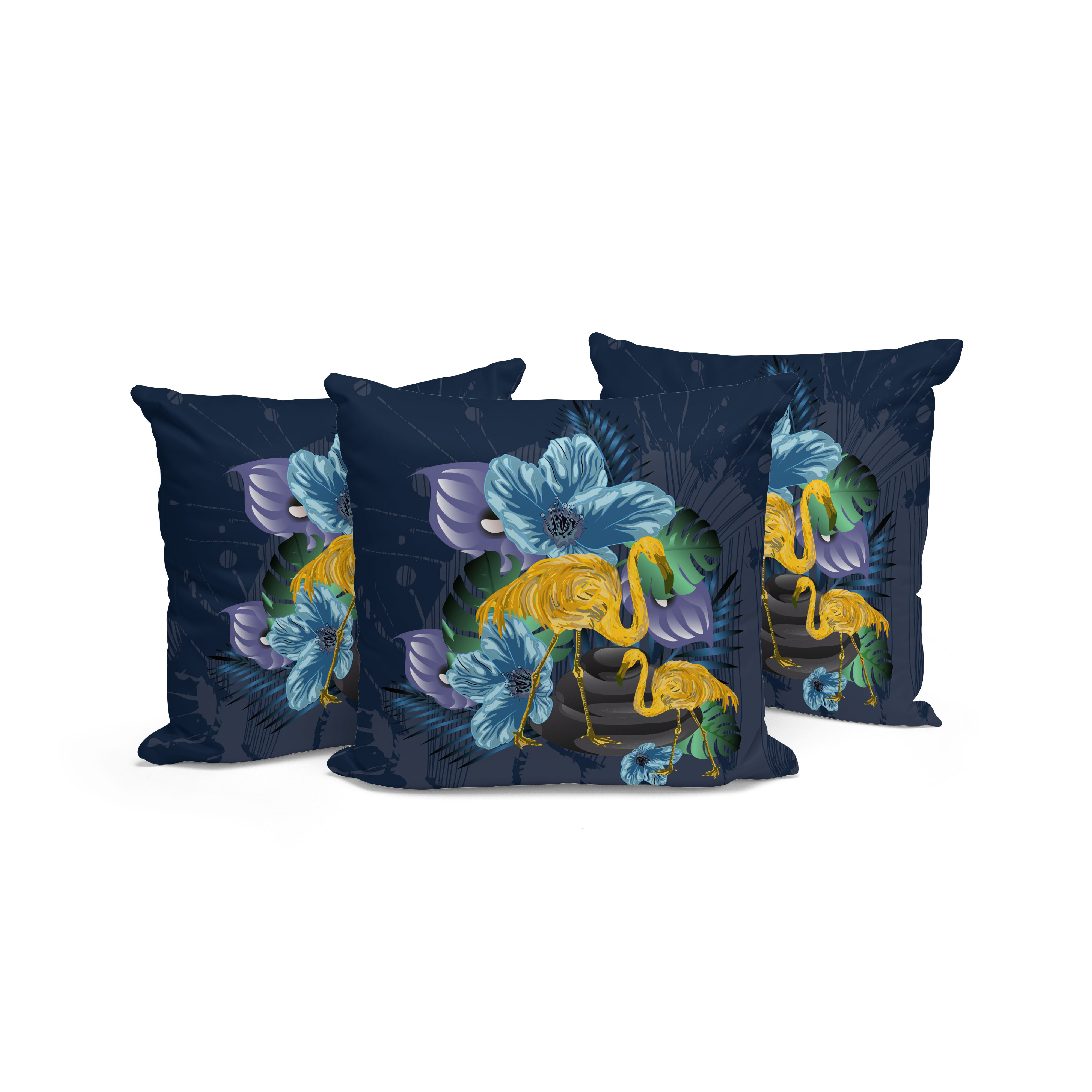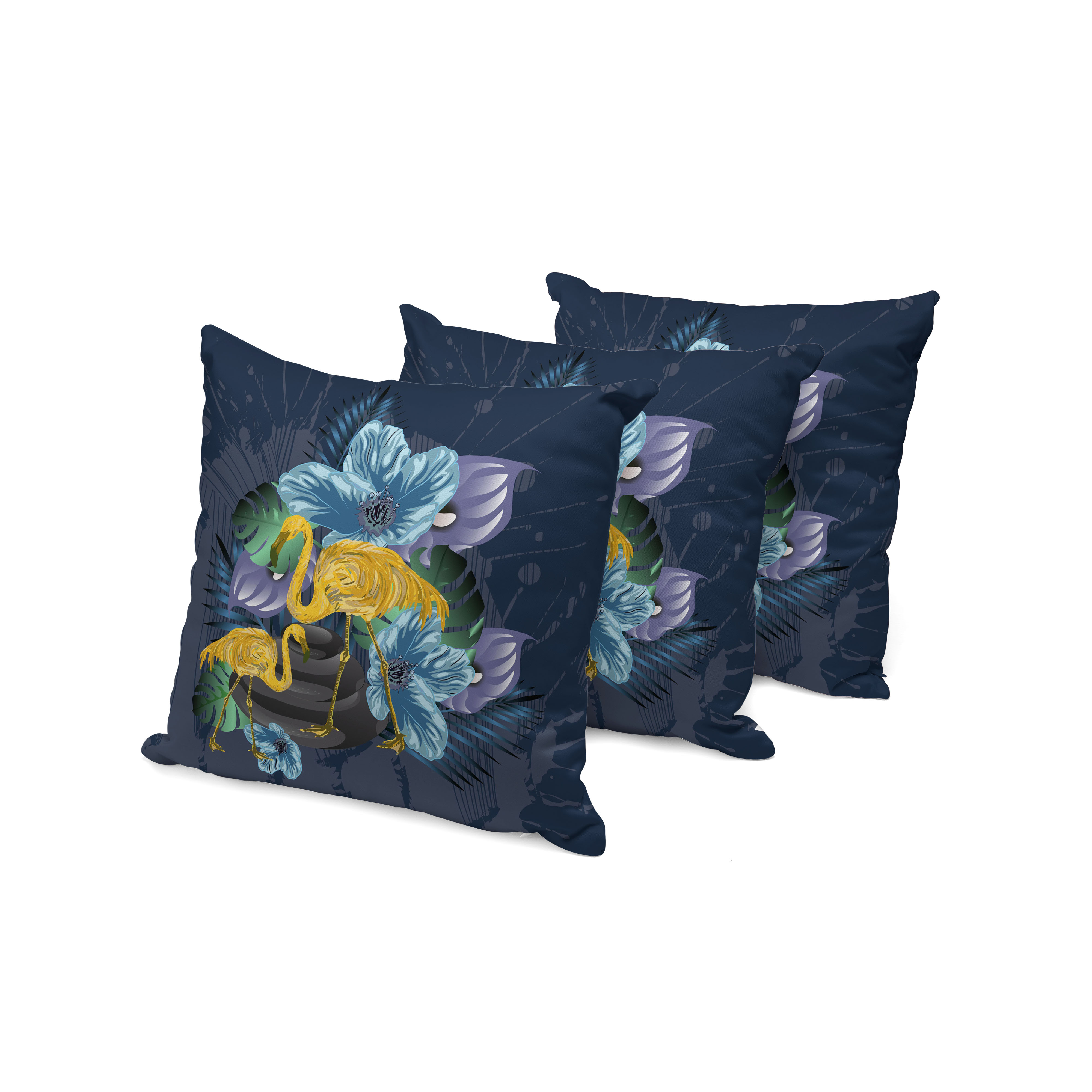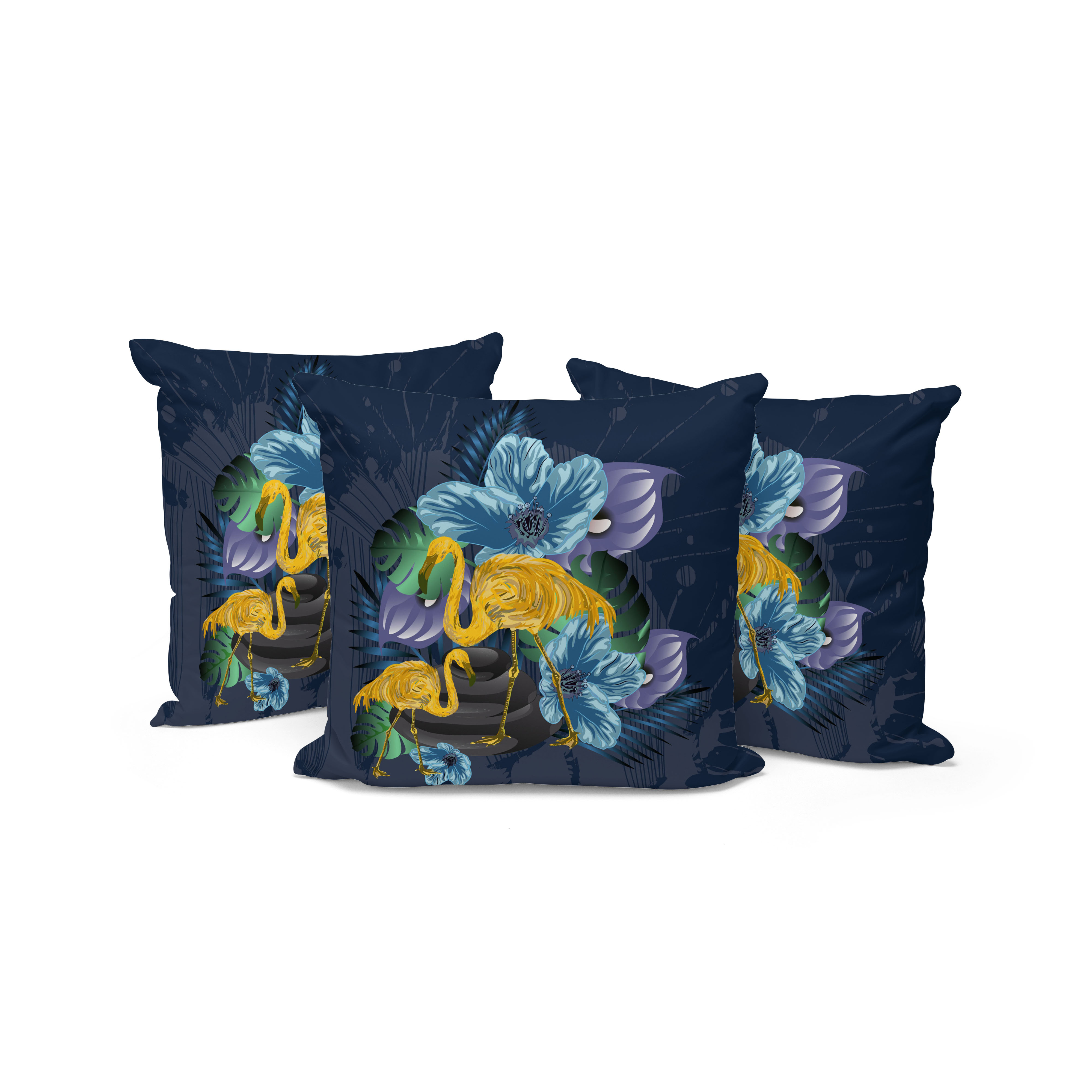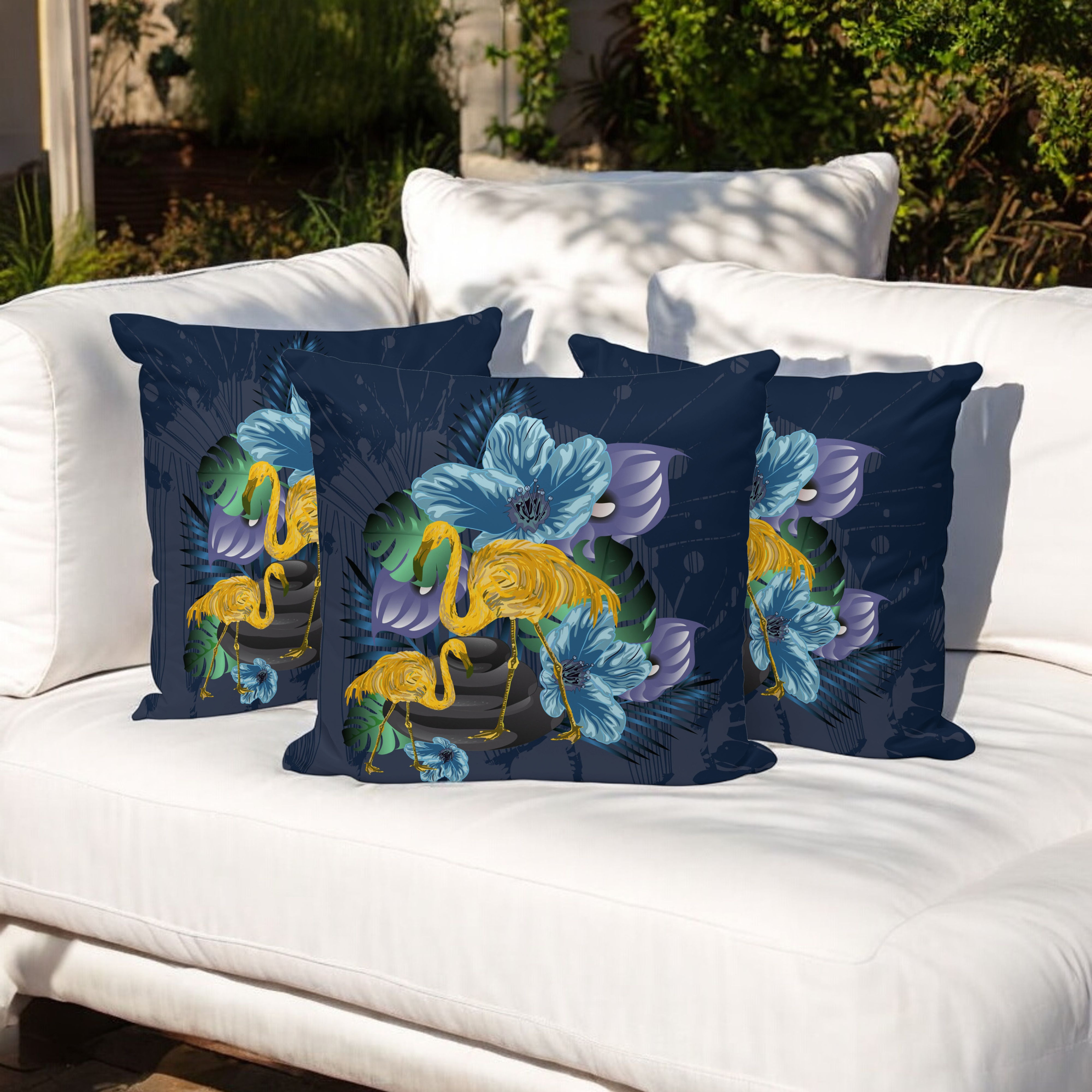 Flamingo with Flower Indoor/Outdoor Set of 3 Pillows in Blue Yellow