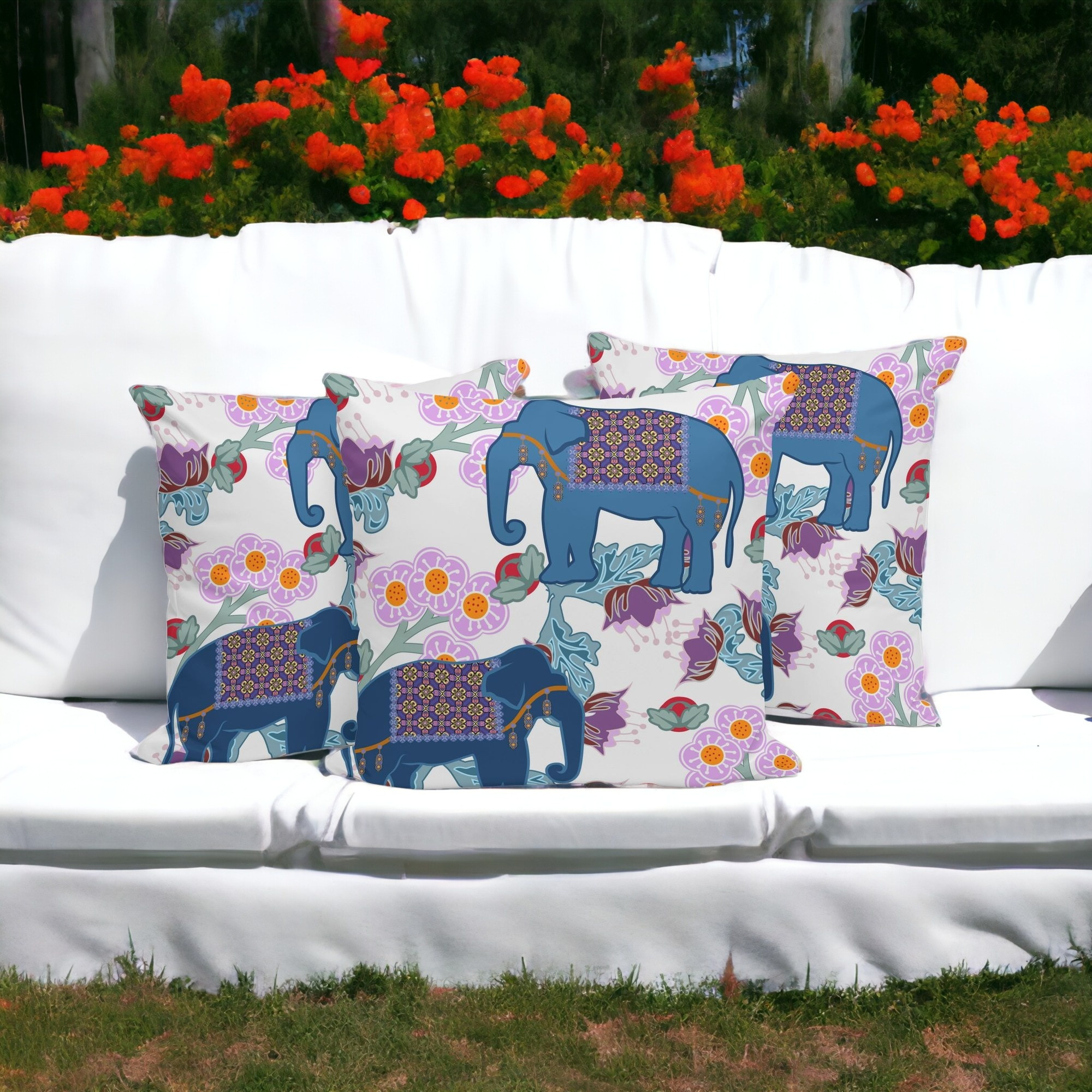 Set of Three Blue Elephant Indoor Outdoor Throw Pillow