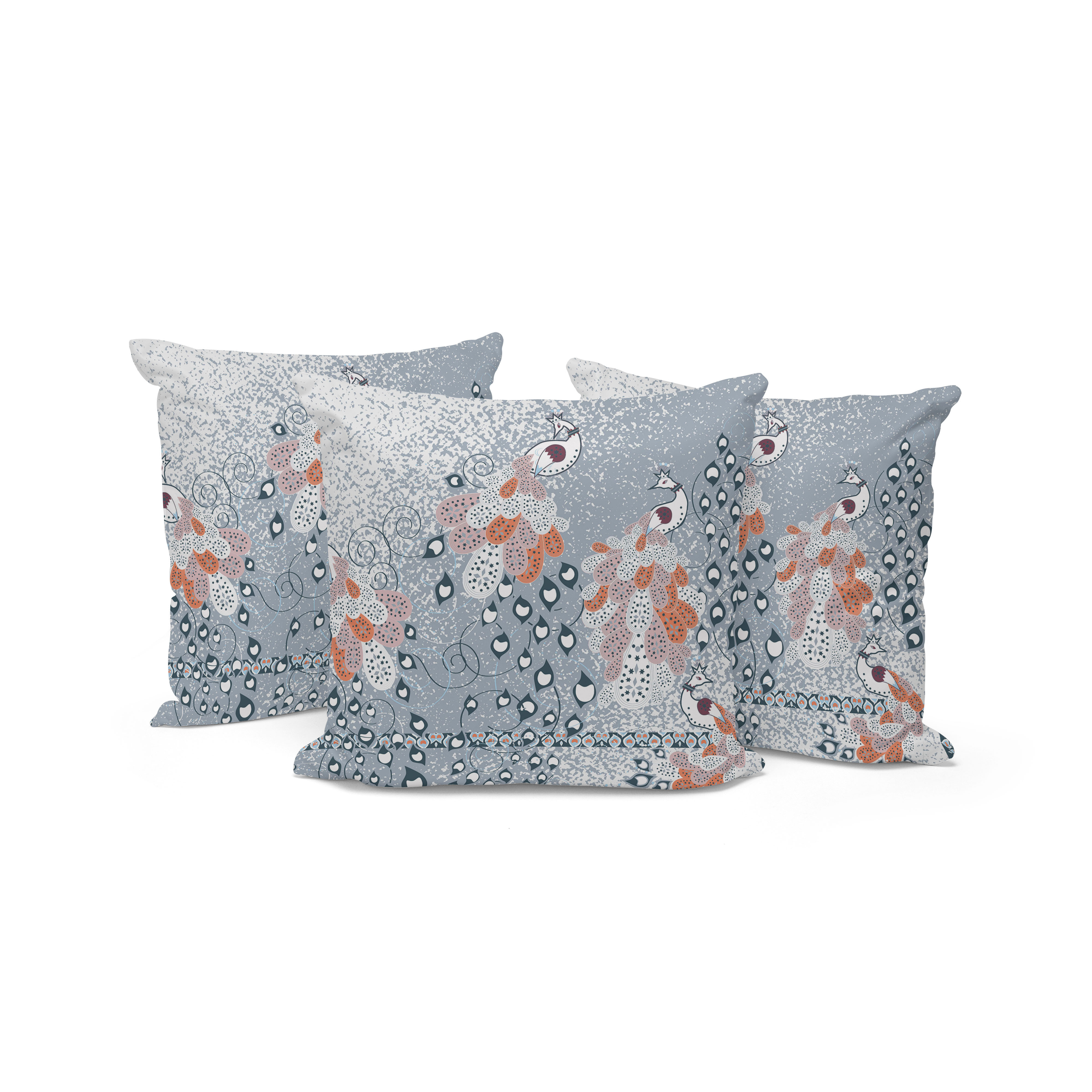 Painted Peacock Indoor/Outdoor Set of 3 Pillows in Gray on Muted Blue