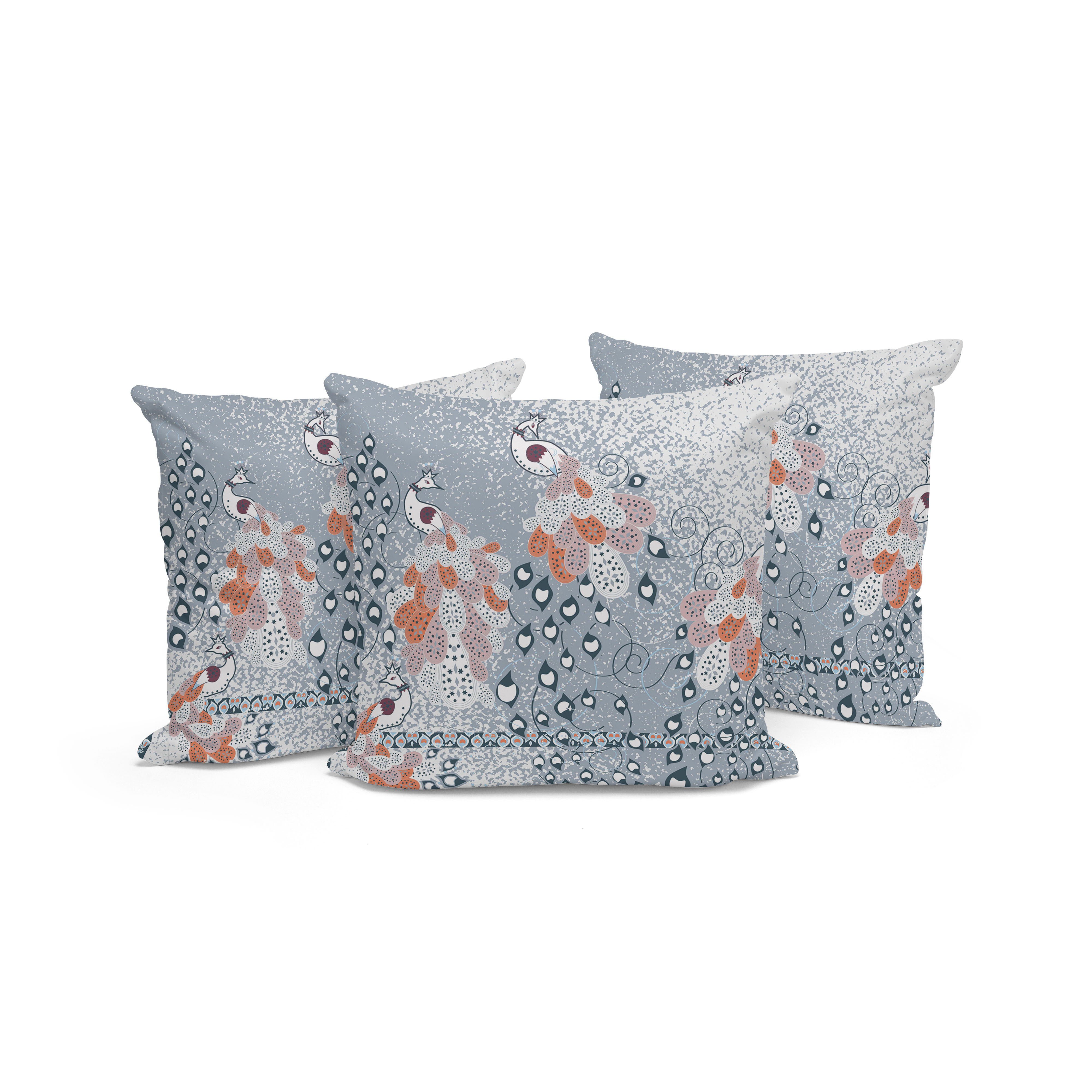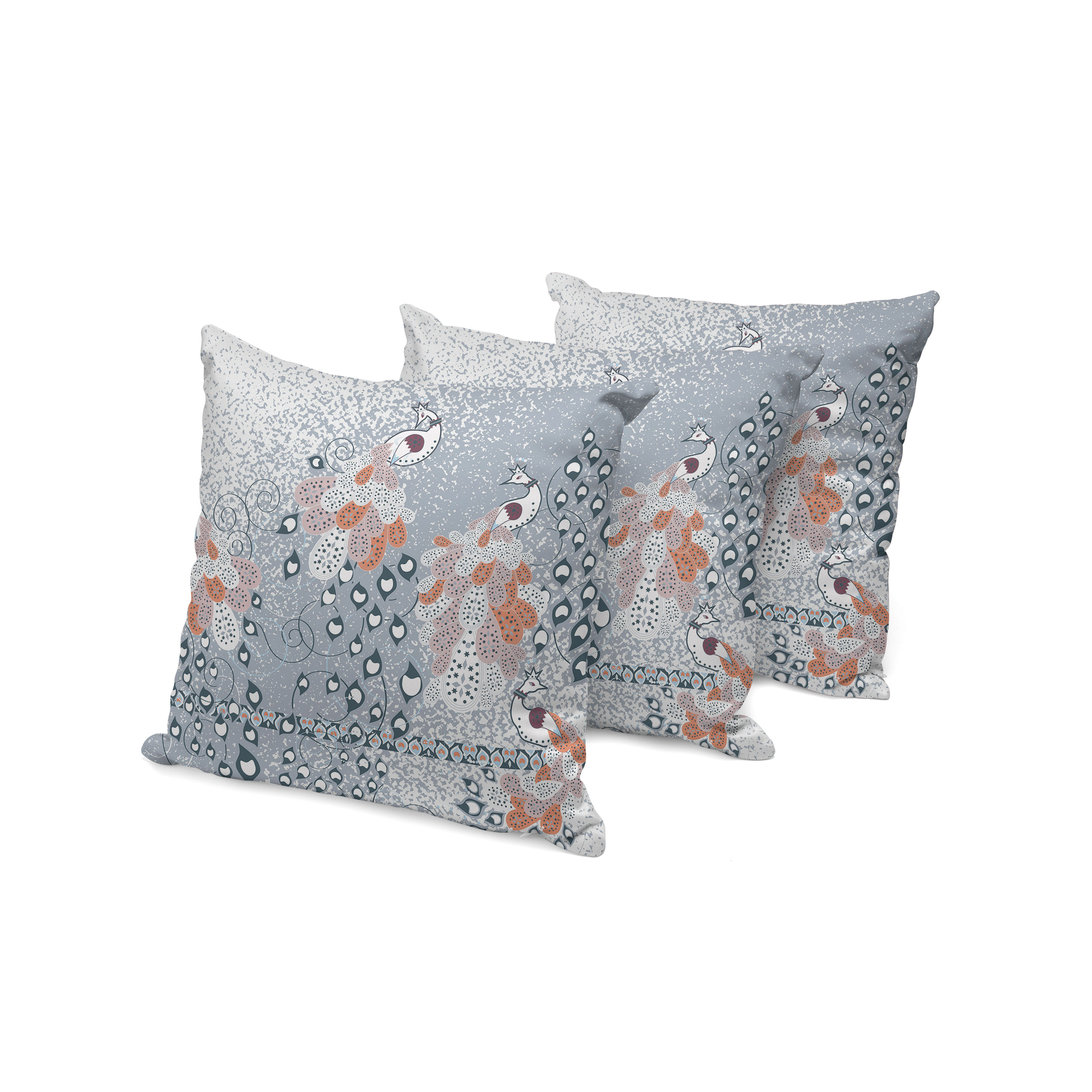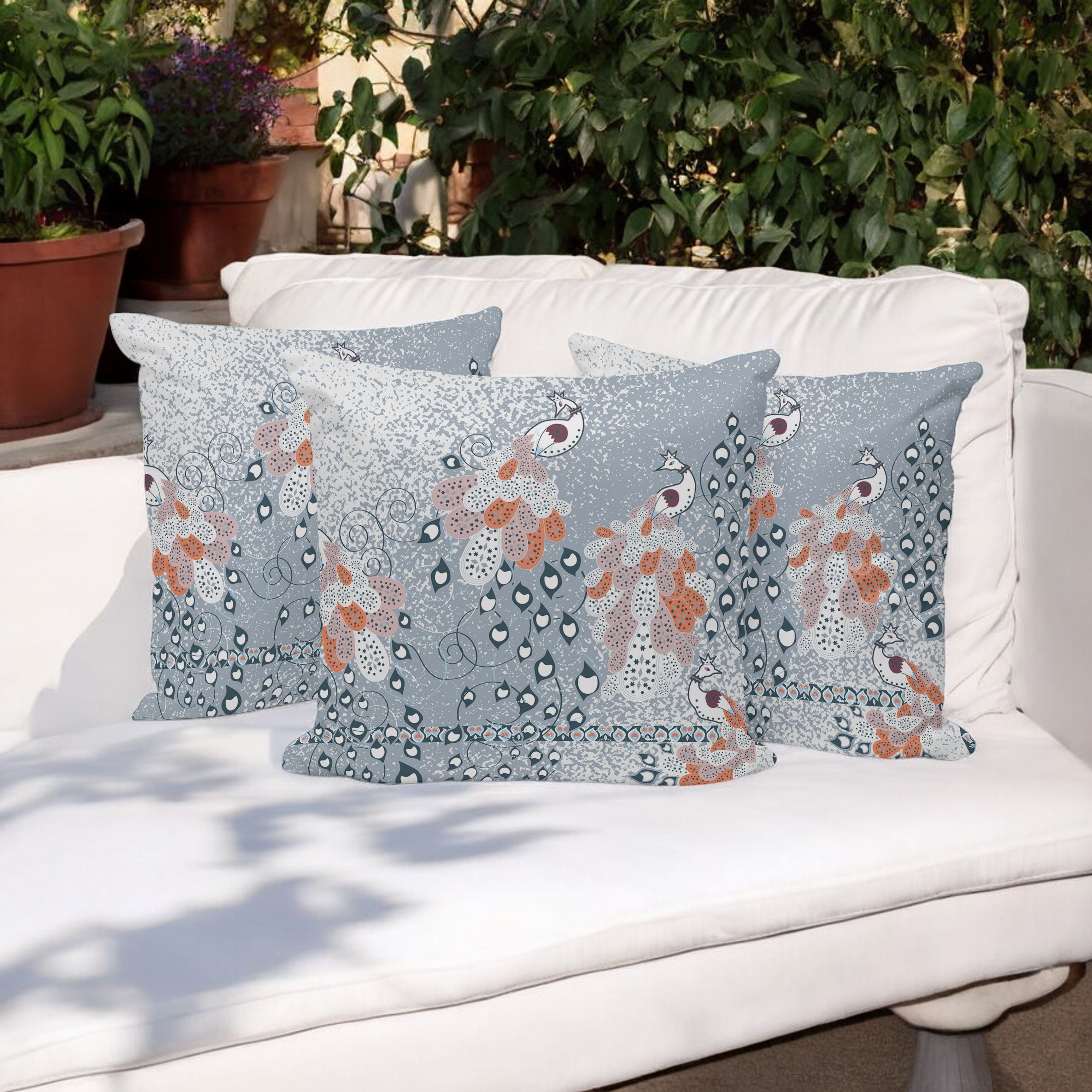 Set of Three Gray Peacock Indoor Outdoor Throw Pillow