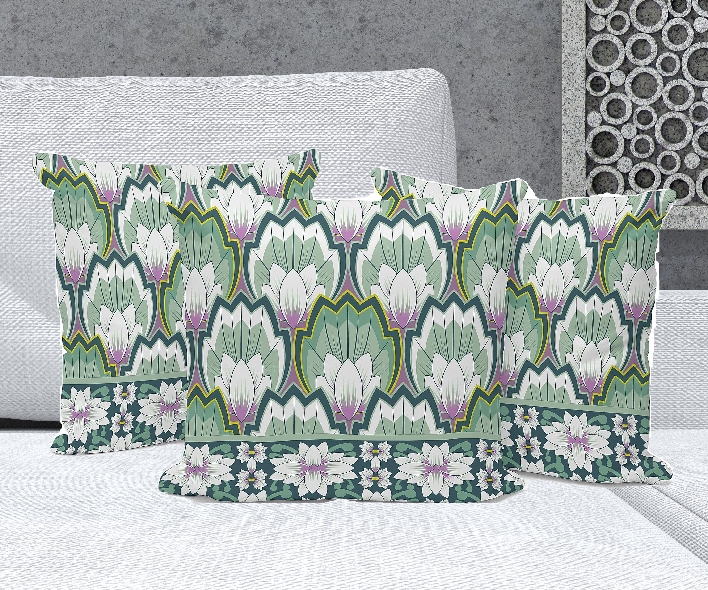 Lotus Indoor/Outdoor Set of 3 Pillows in Green Pink