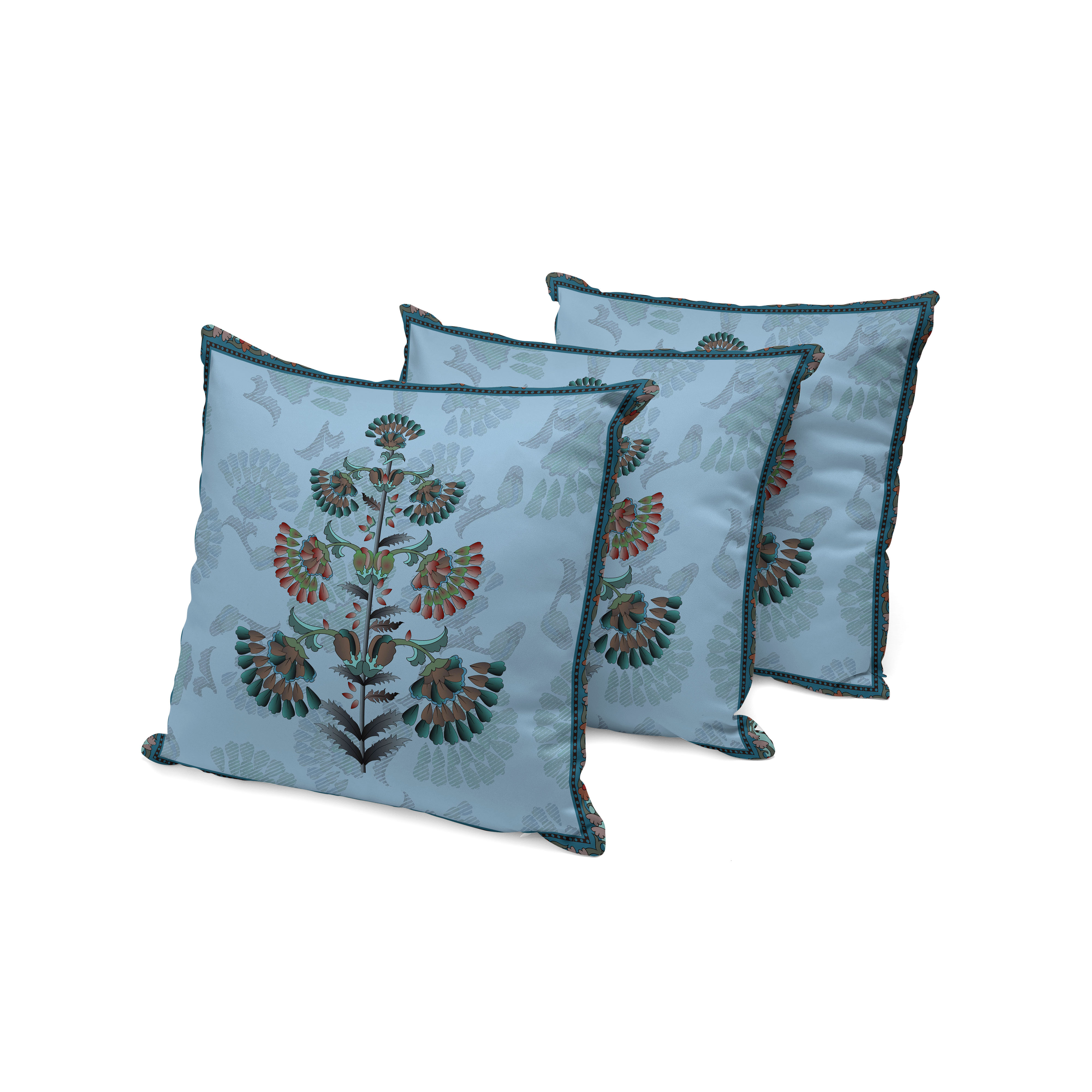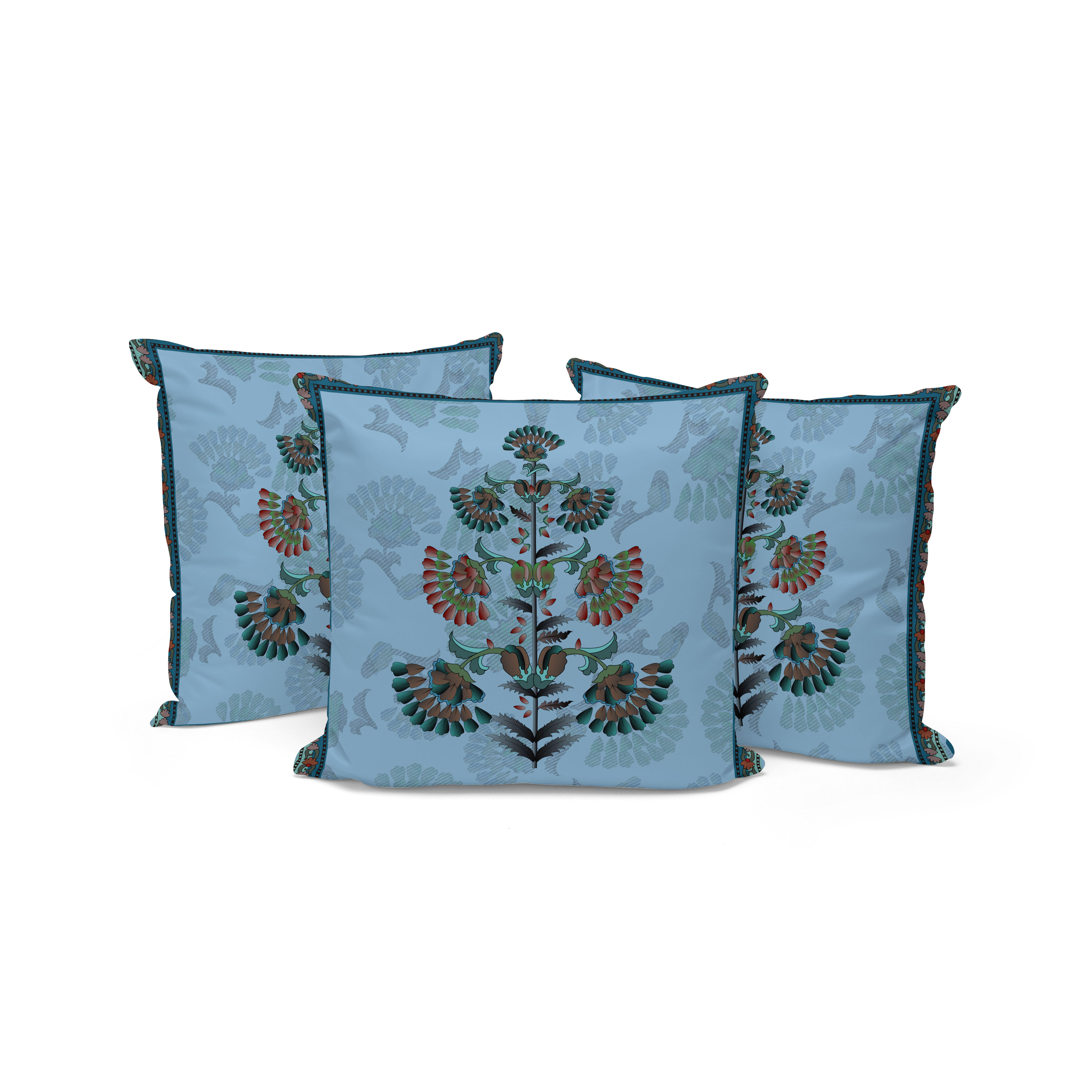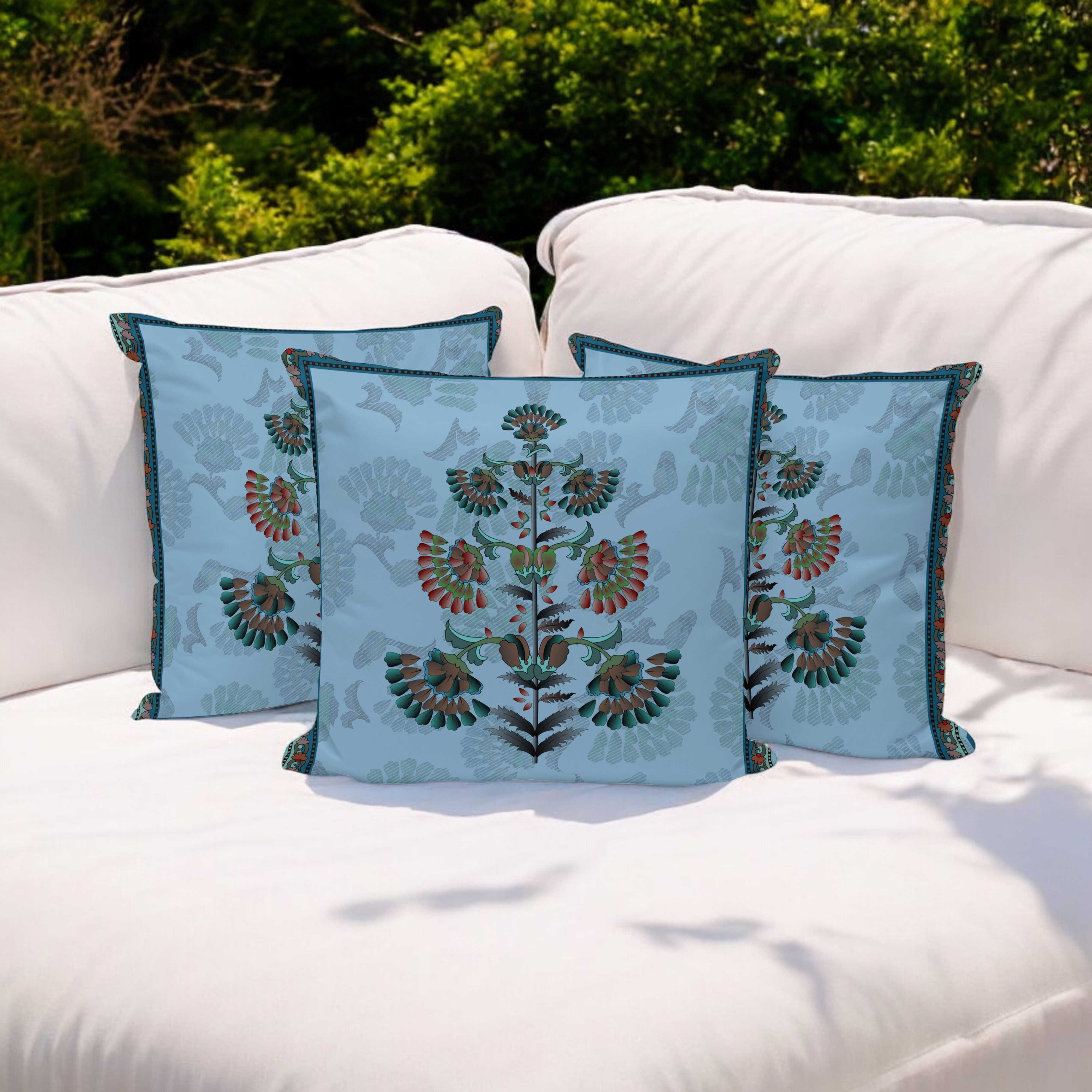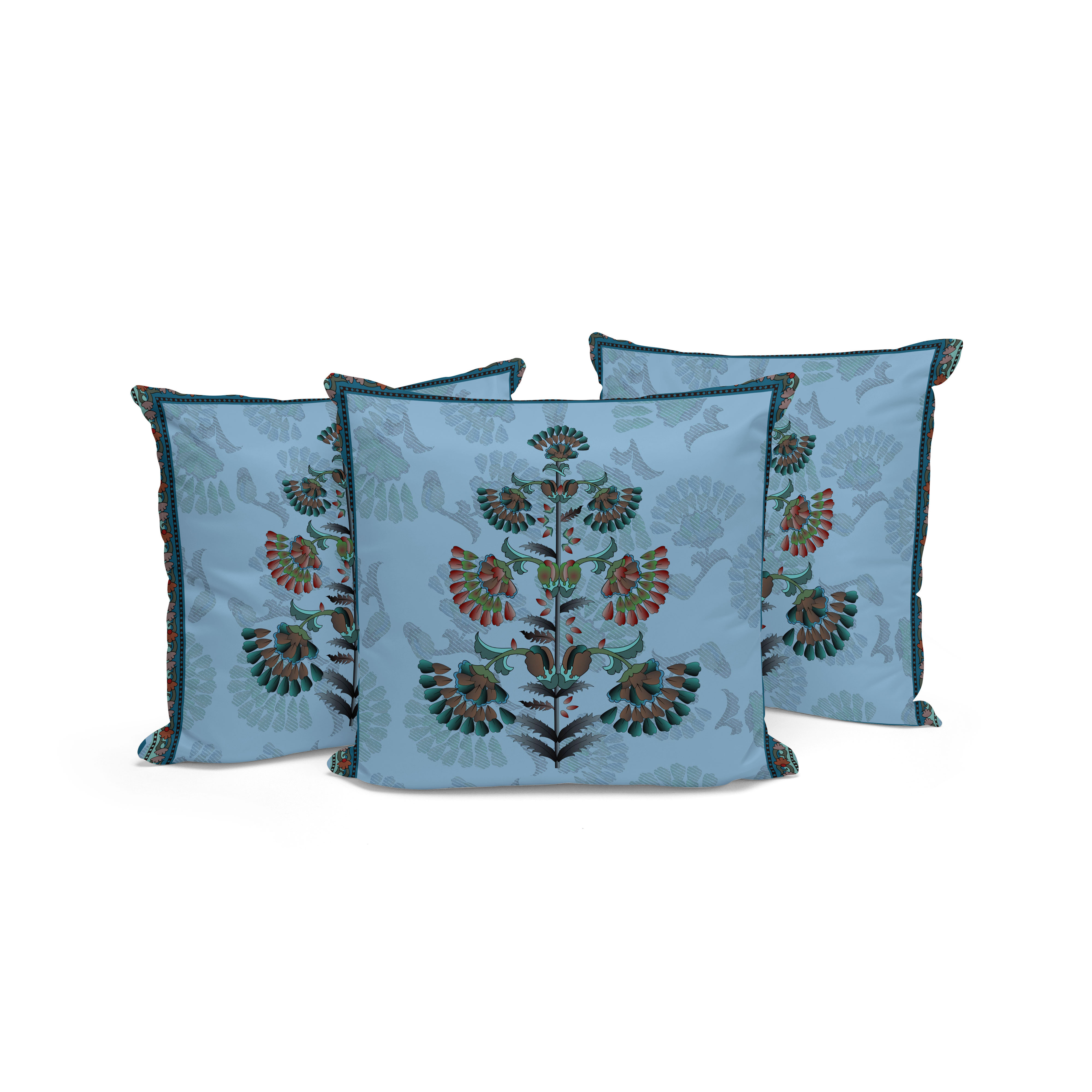 Mughal Buta Indoor/Outdoor Set of 3 Pillows in Sky Blue Red