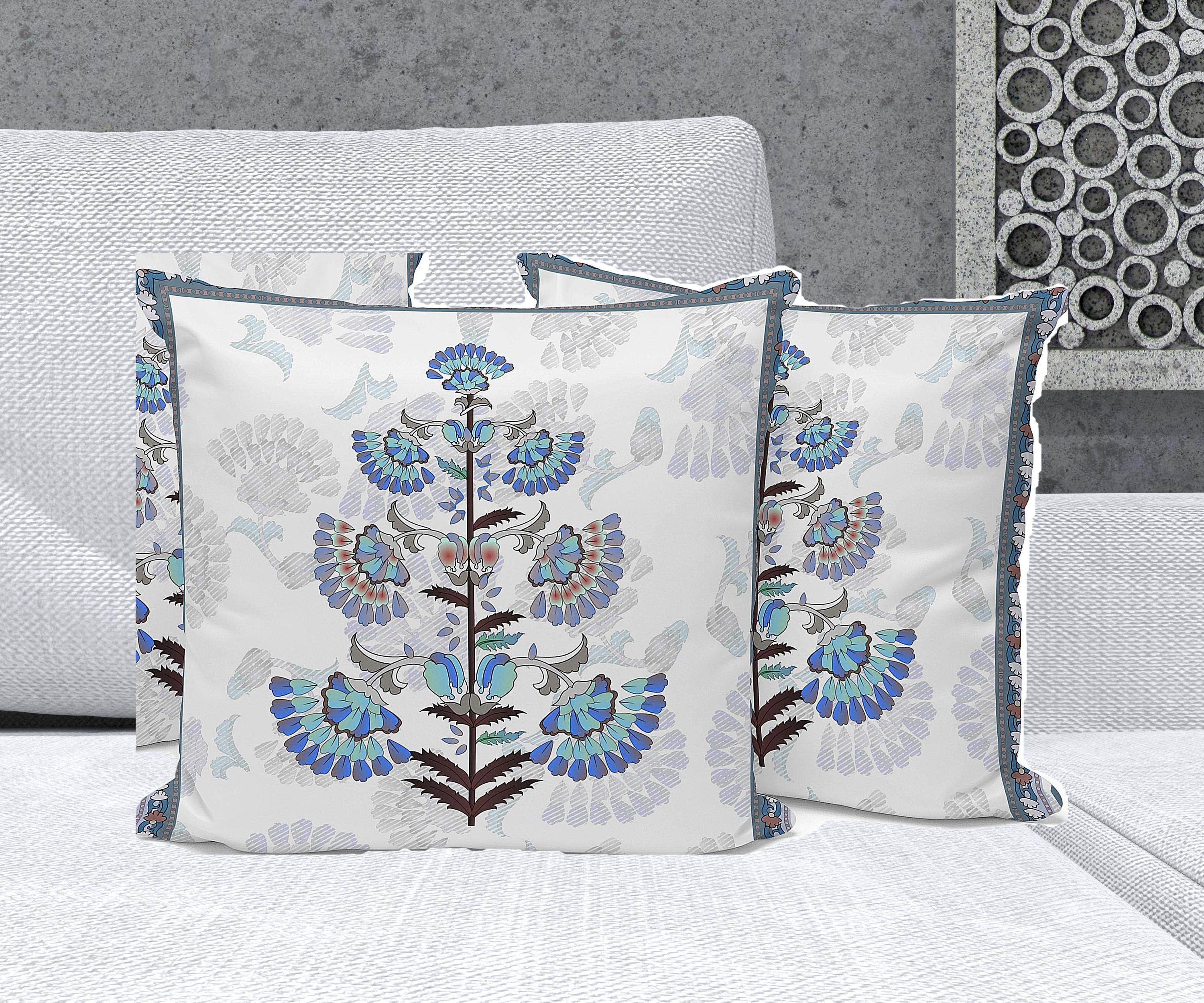Set of Three Off White Botanical Indoor Outdoor Throw Pillow