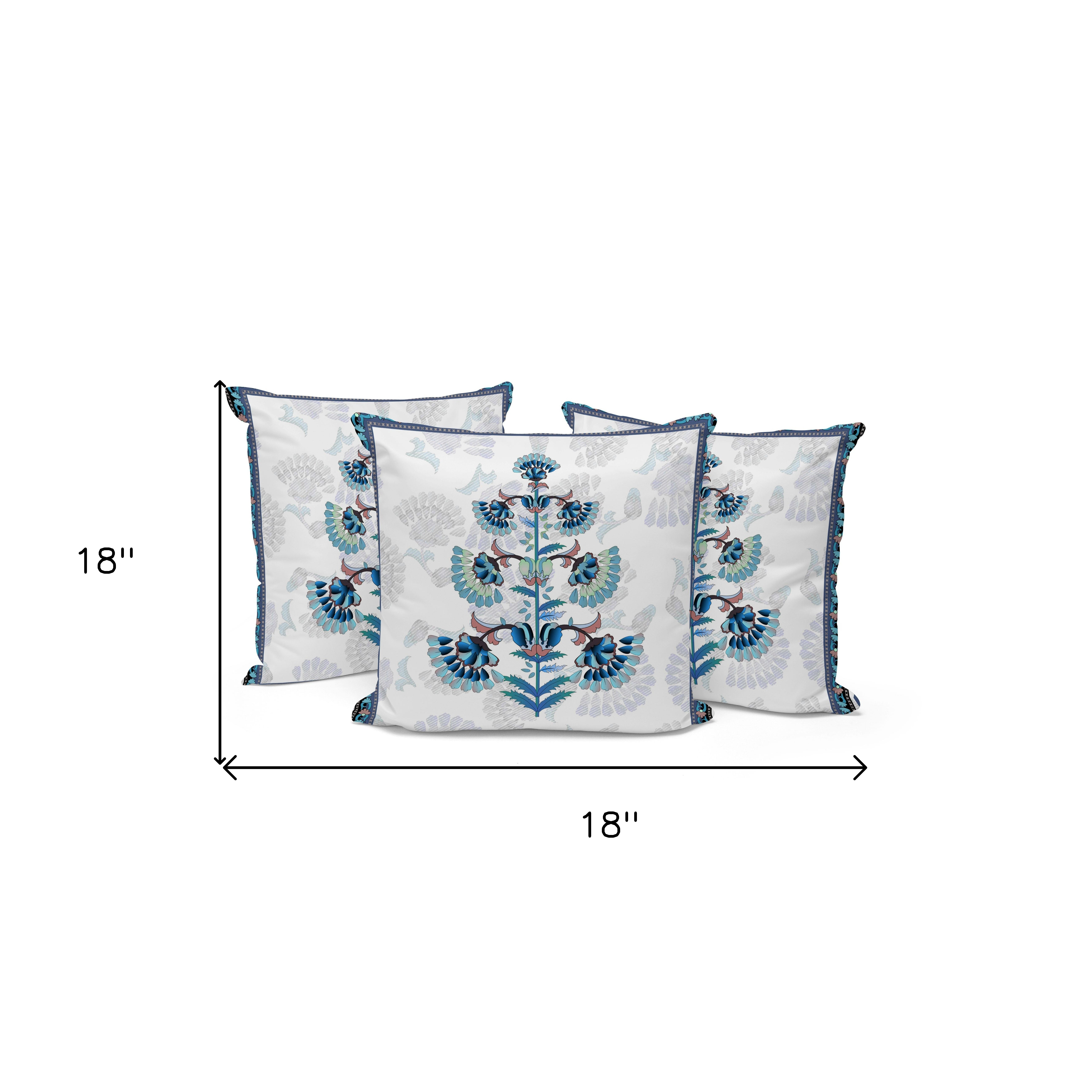 Set of Three Off White Botanical Indoor Outdoor Throw Pillow