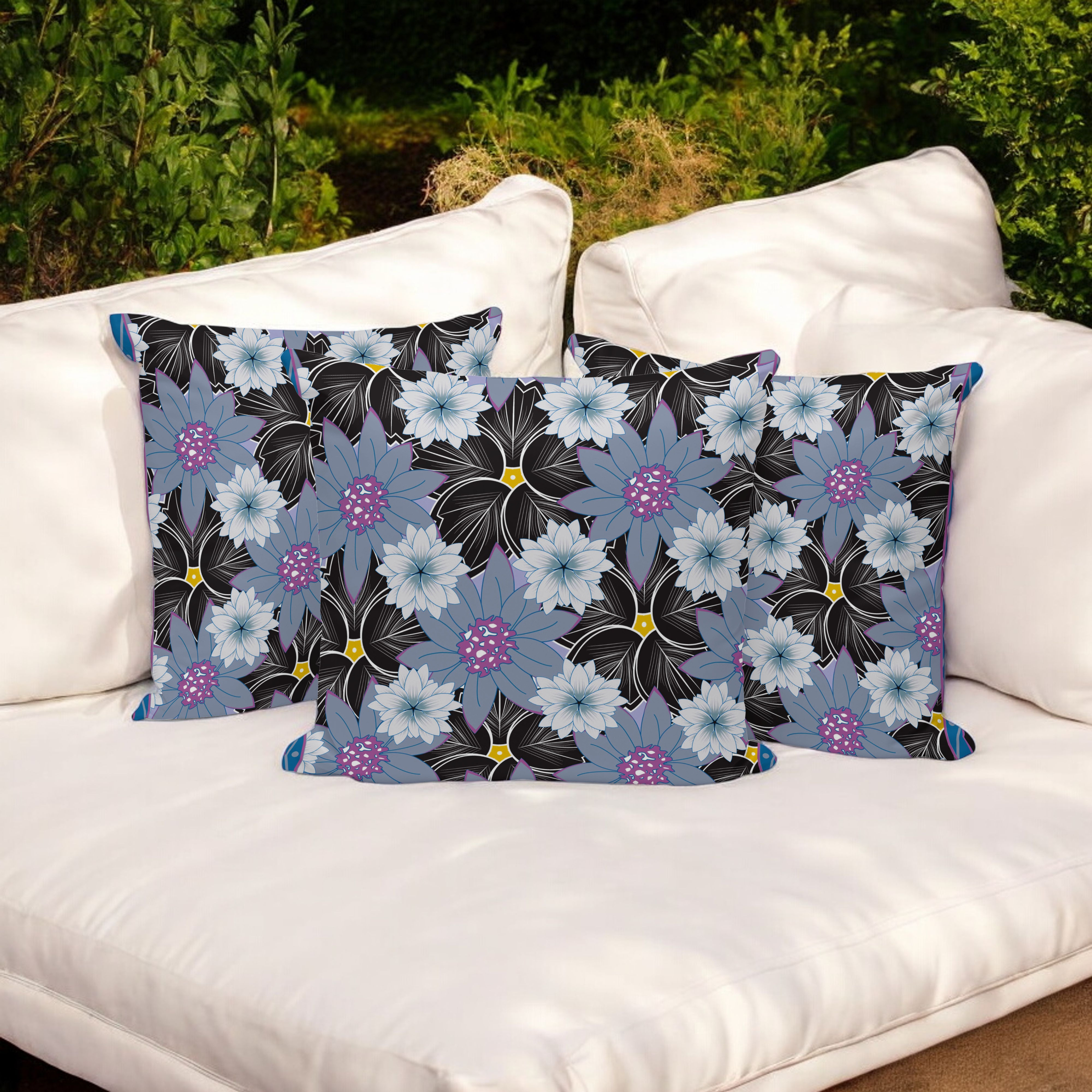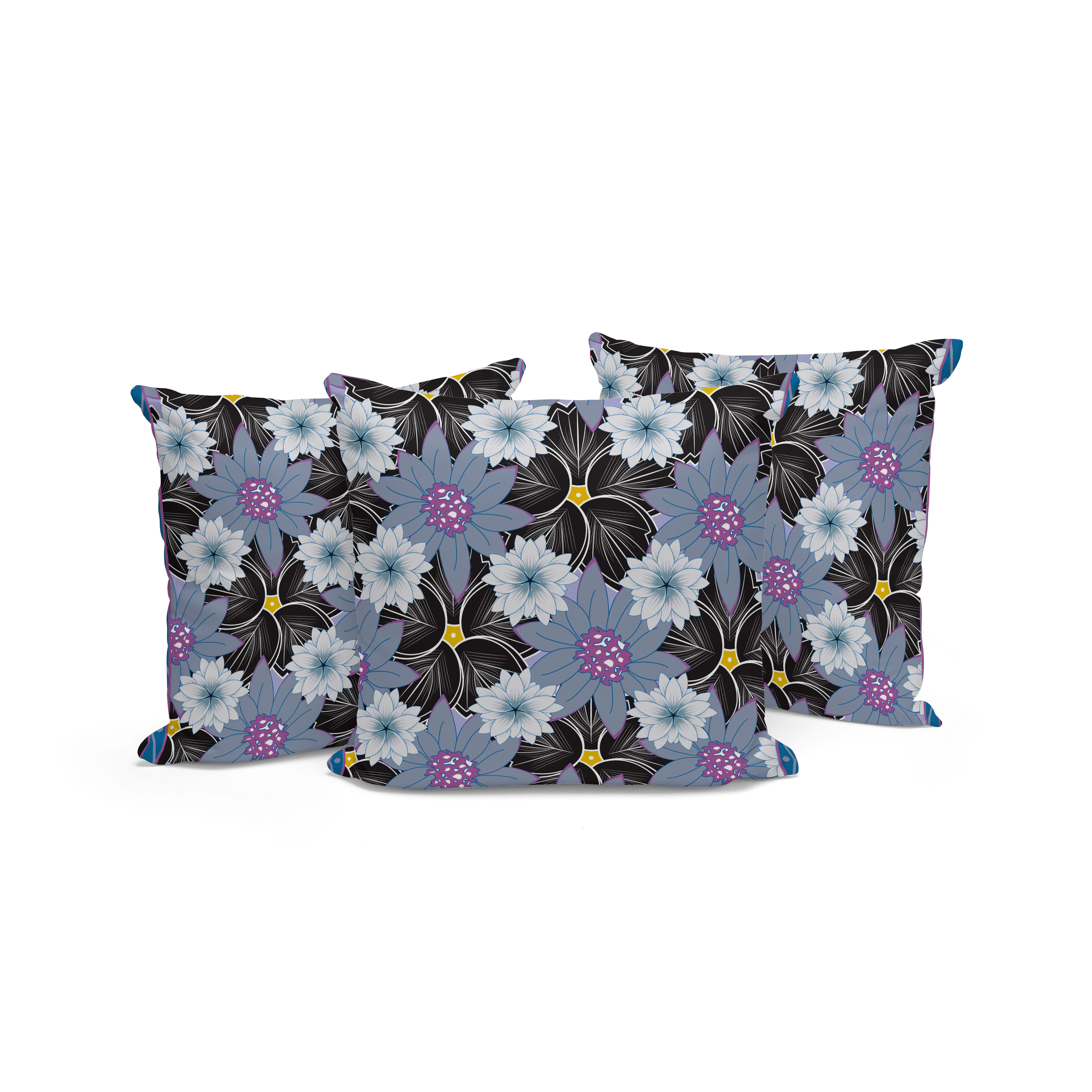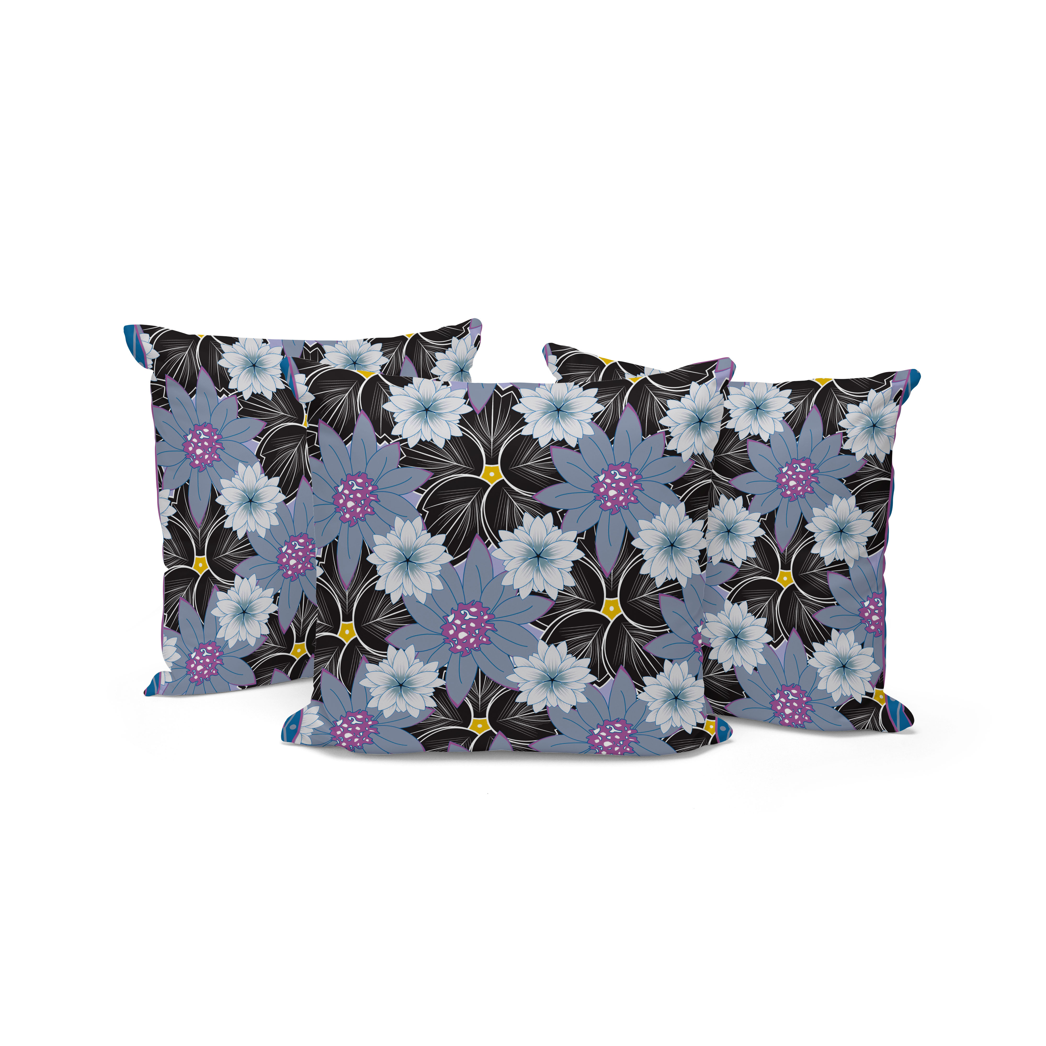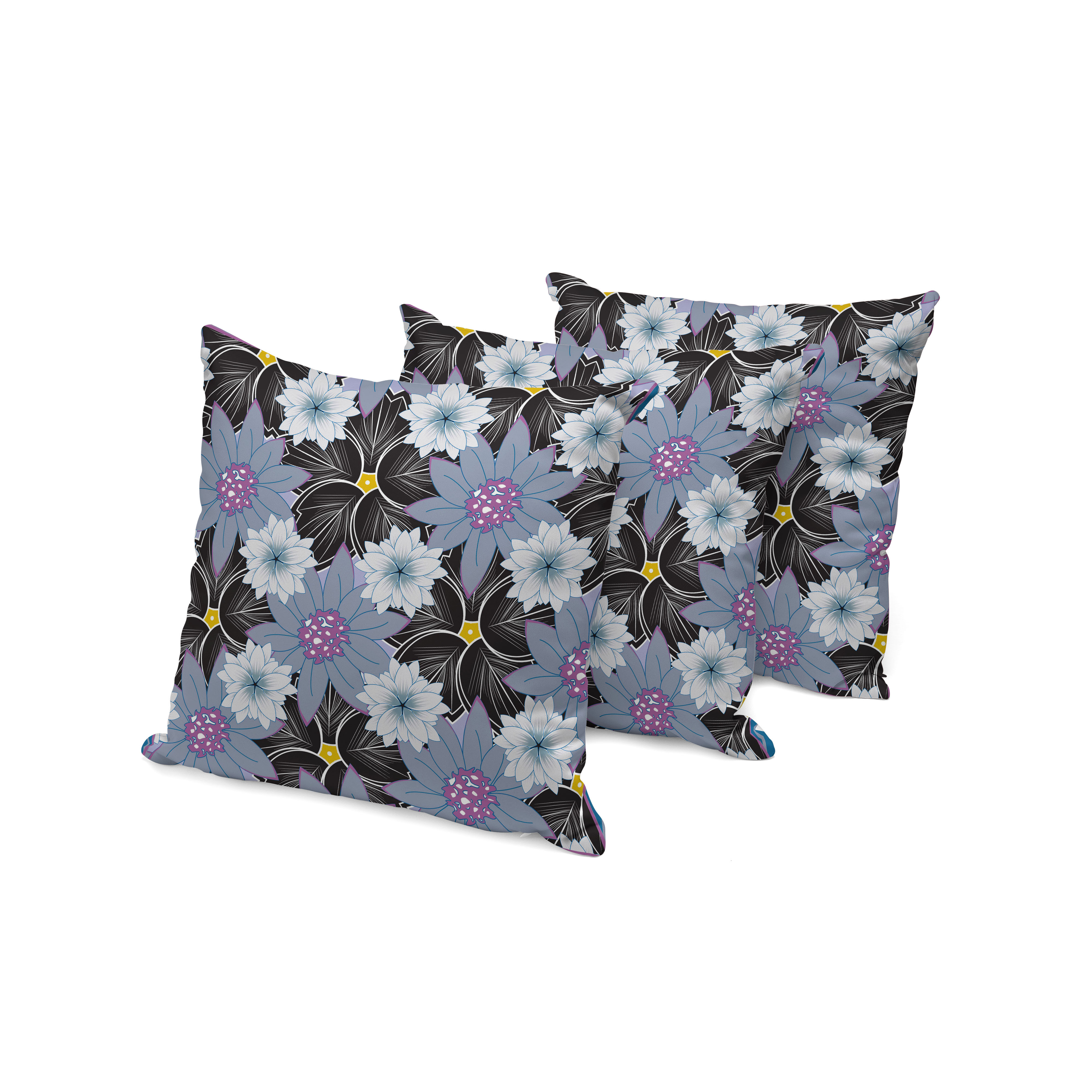 Sun Flowers Indoor/Outdoor Set of 3 Pillows in Gray Black Pink