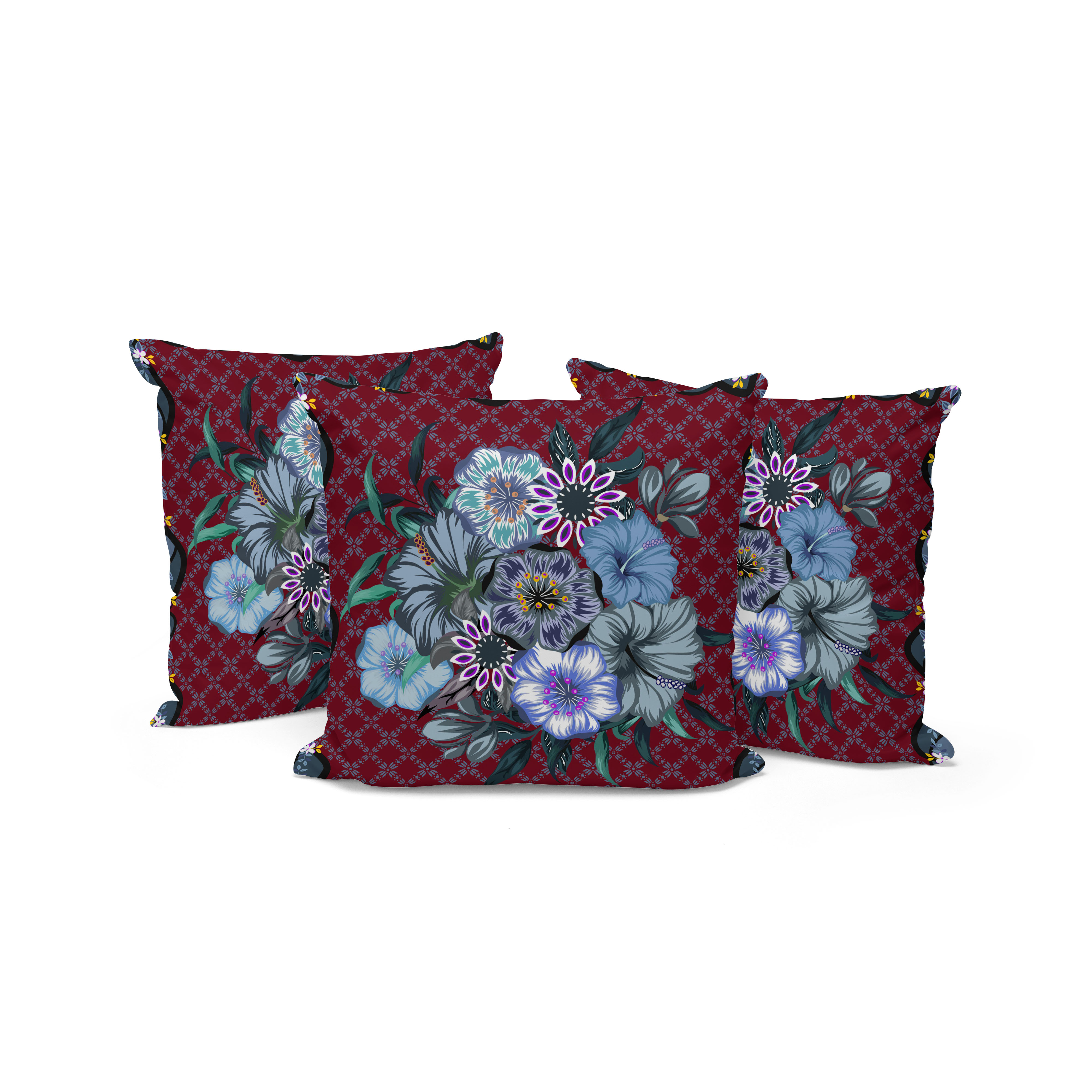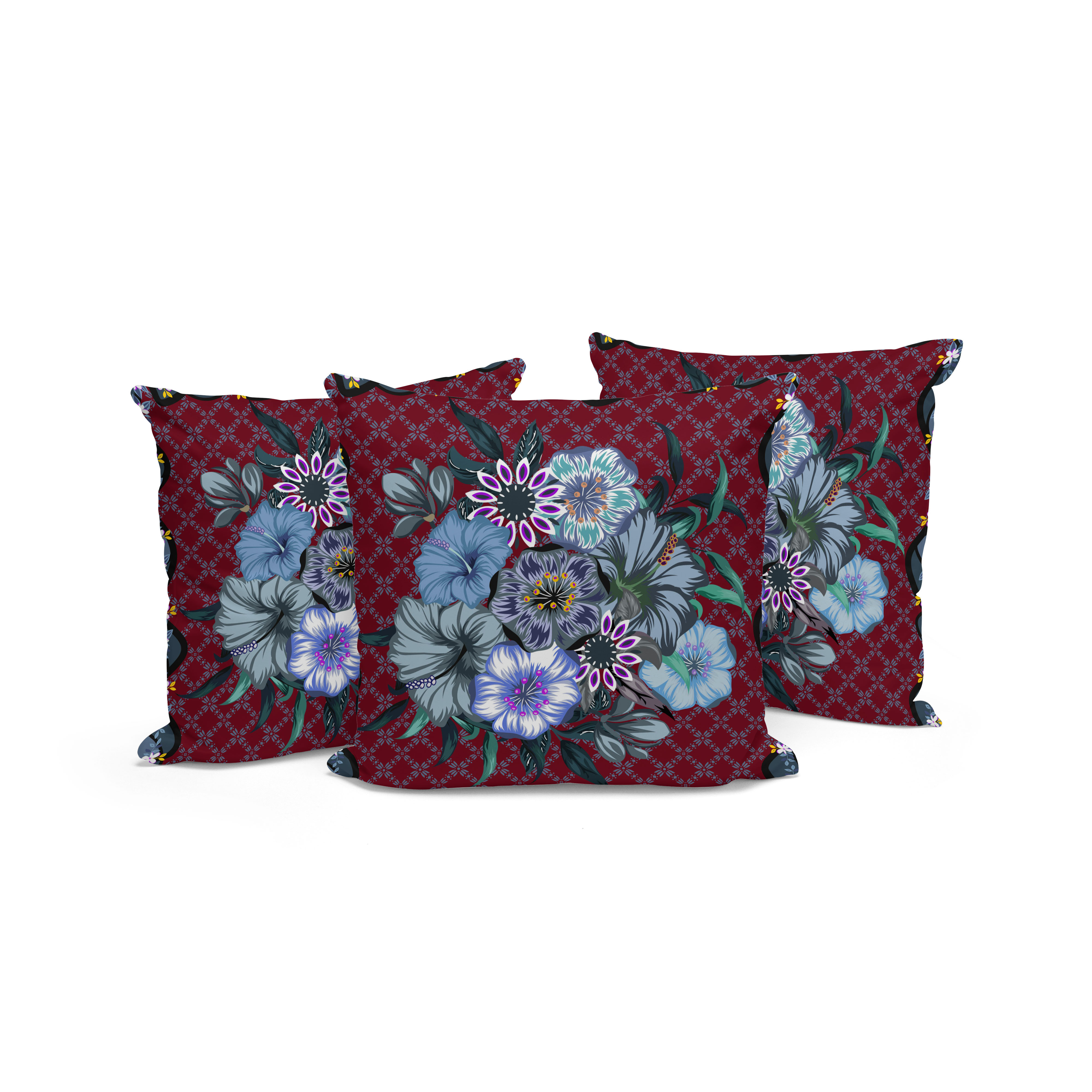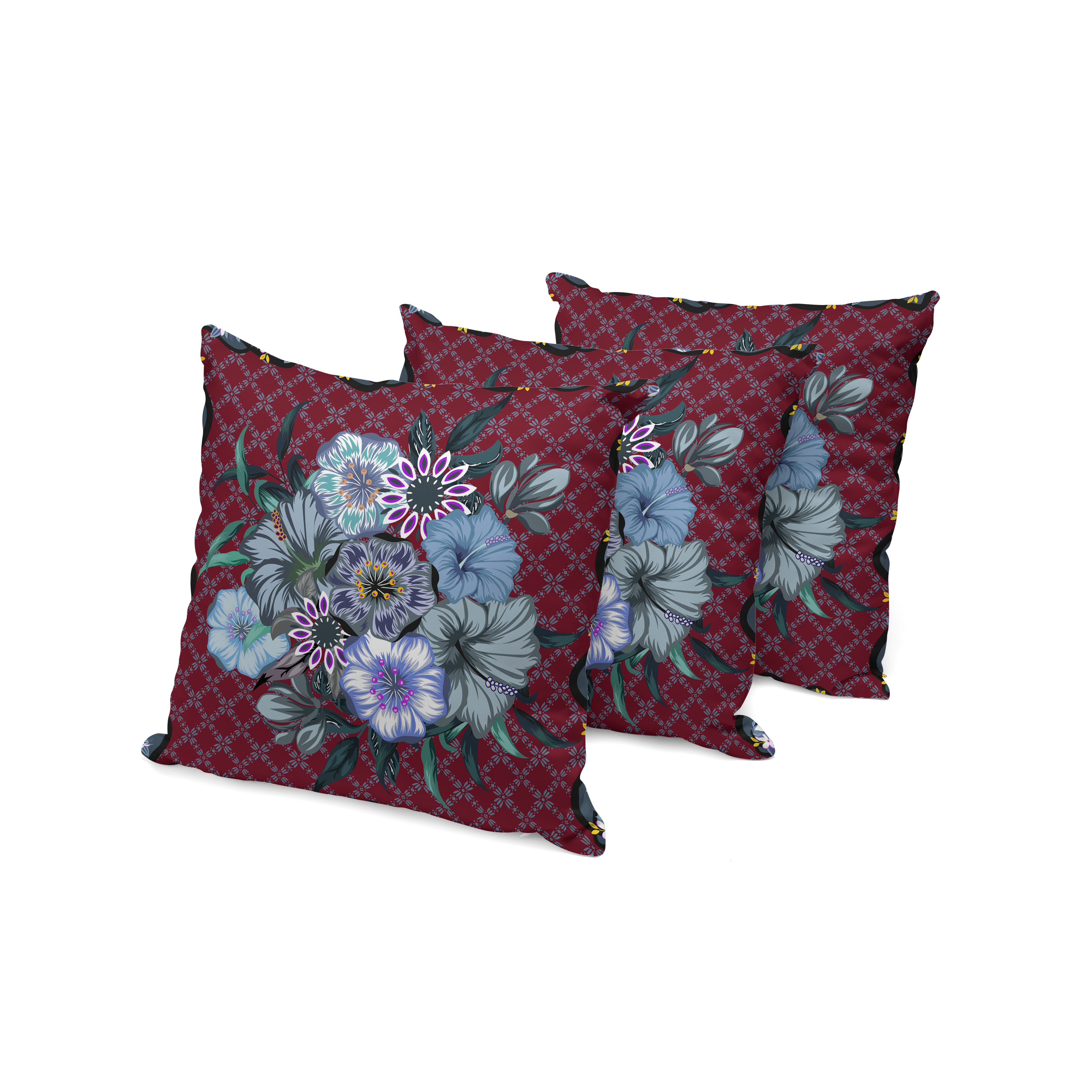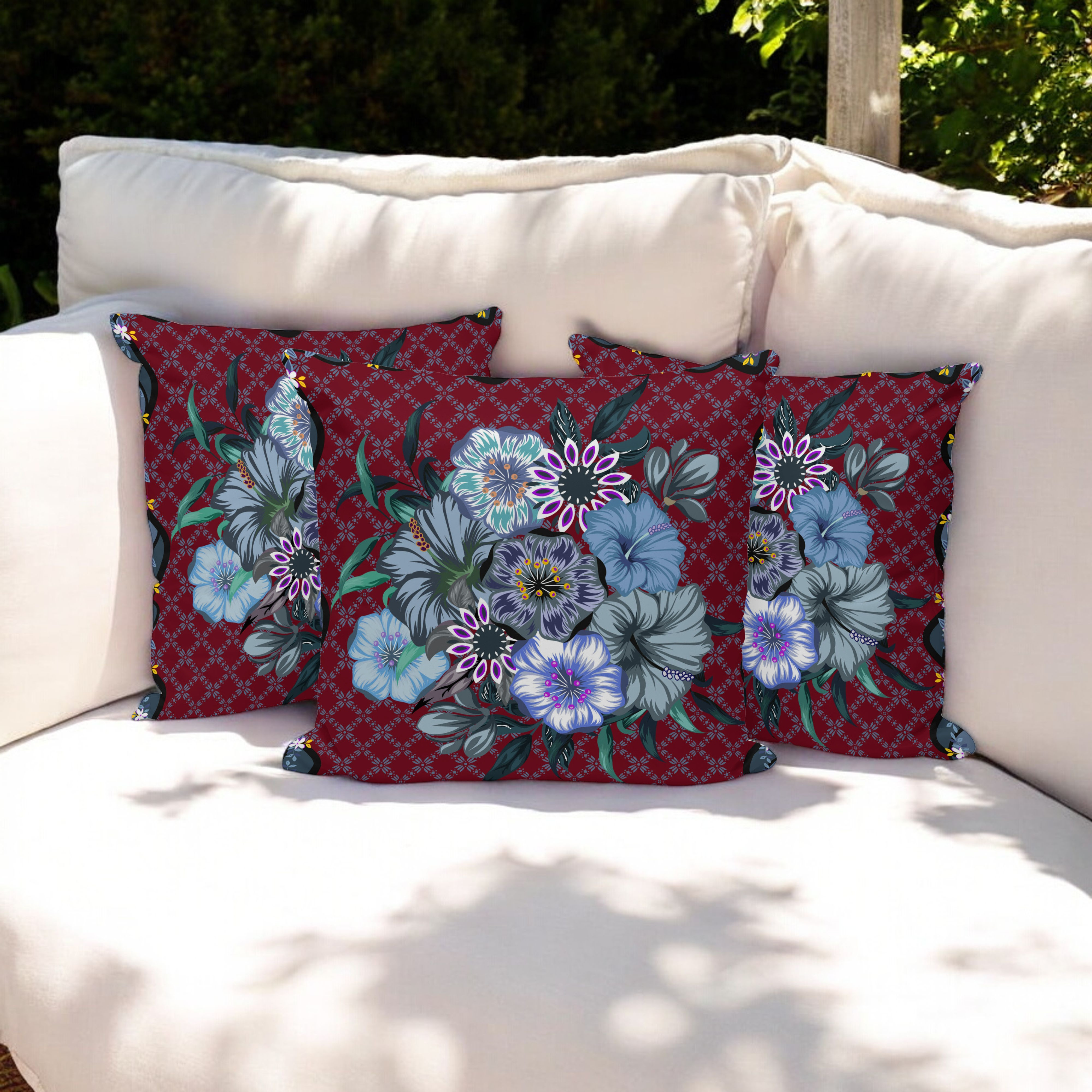 Flowers Indoor/Outdoor Set of 3 Pillows in Red Gray