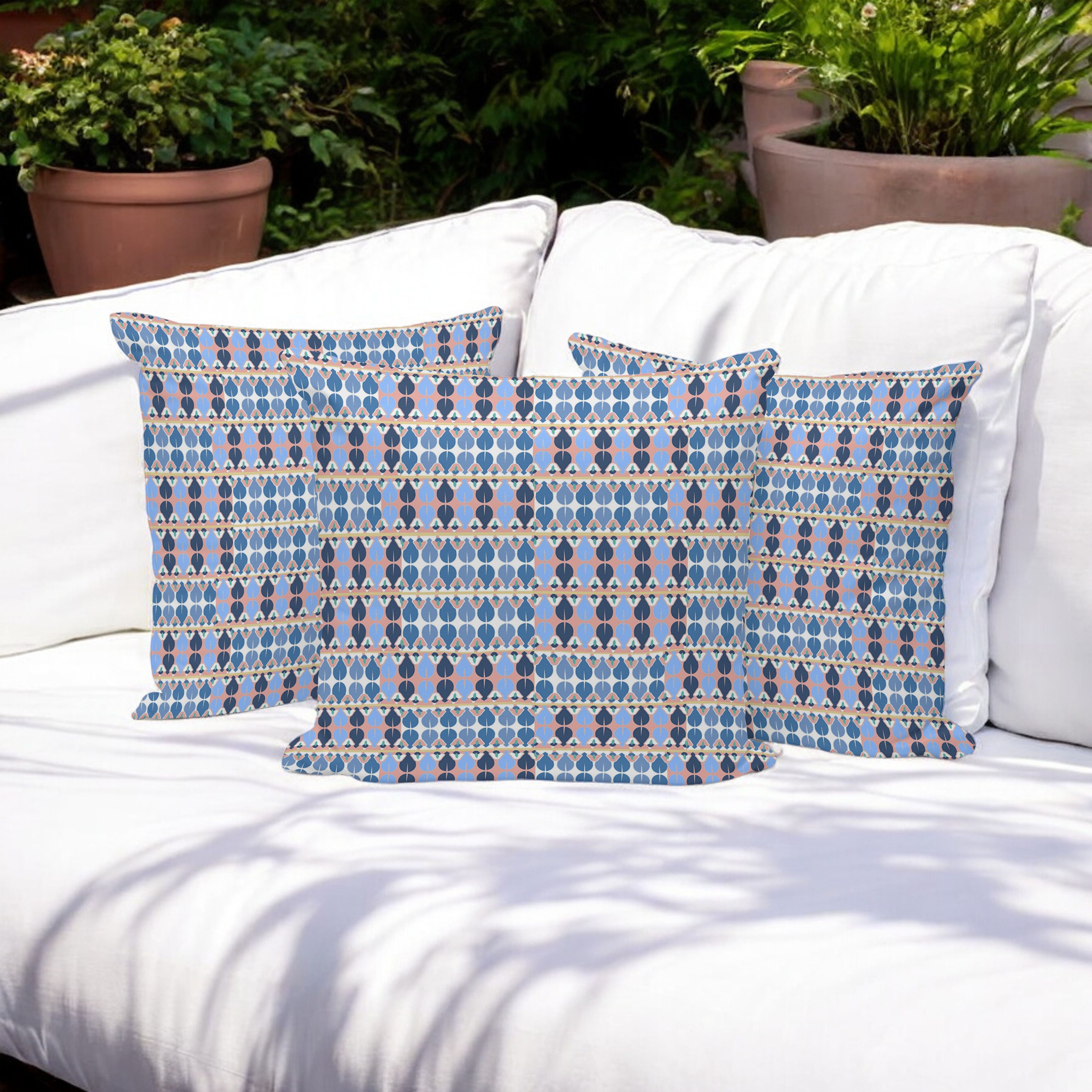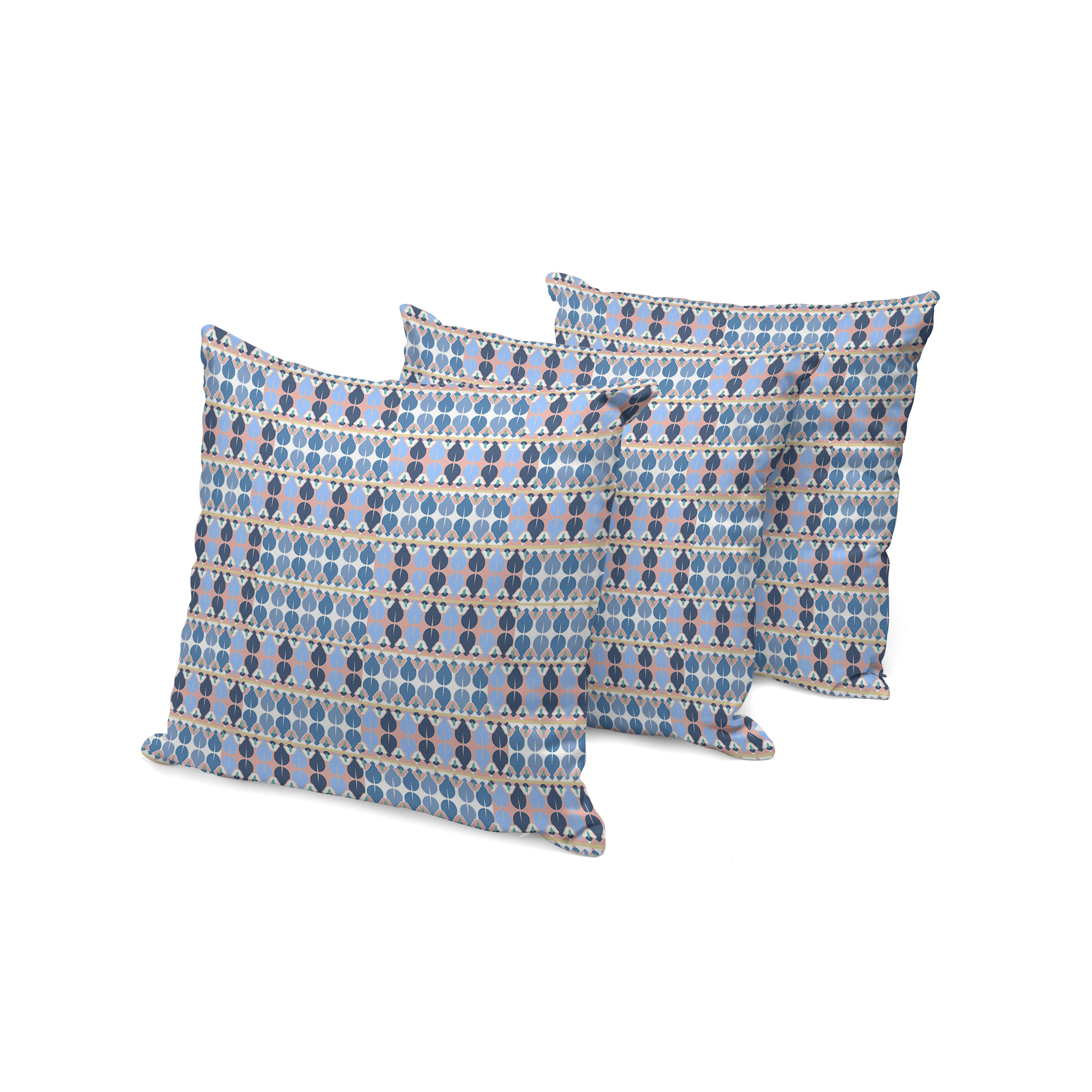 Set of Three Blue Abstract Indoor Outdoor Throw Pillow