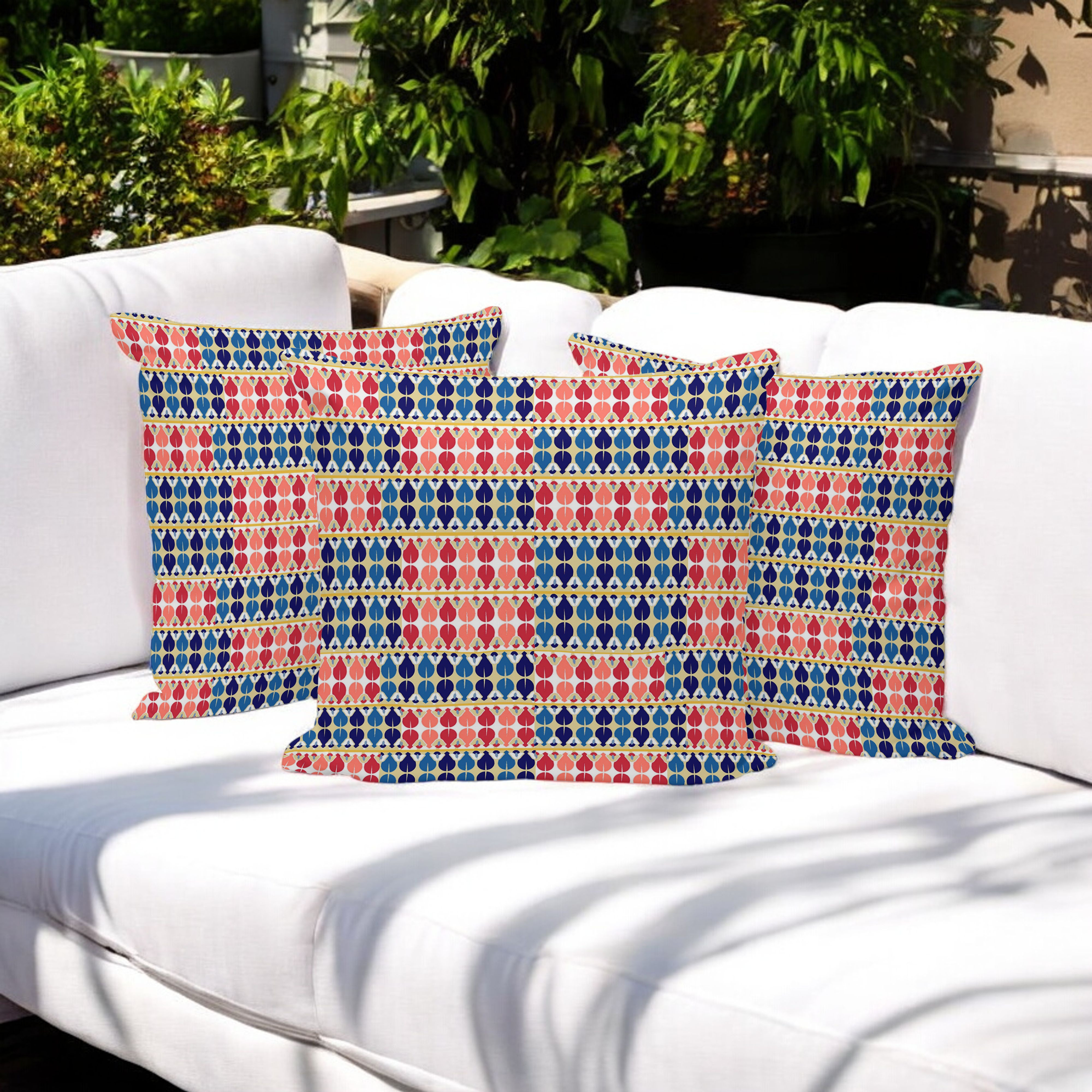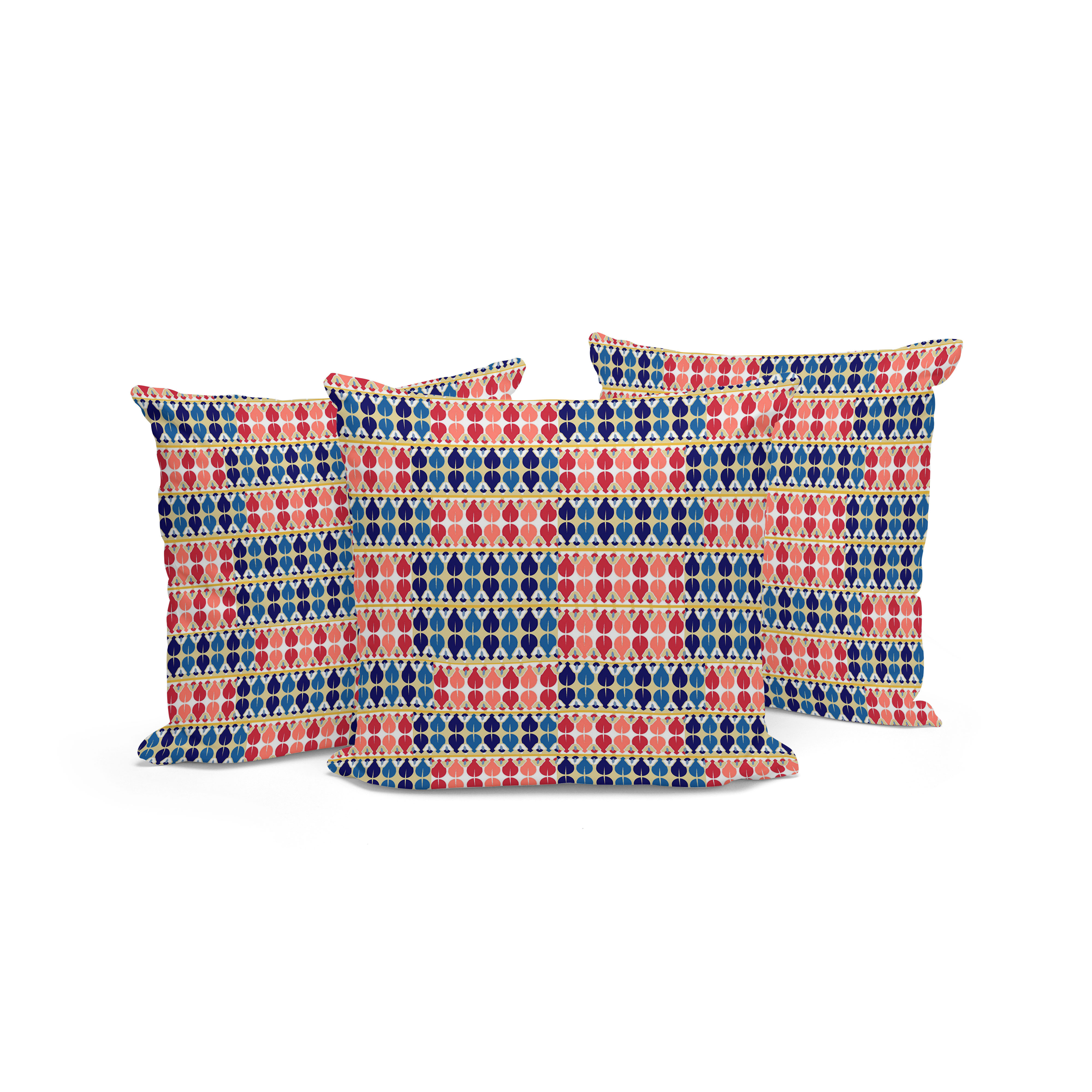 Set of Three Red Abstract Indoor Outdoor Throw Pillow