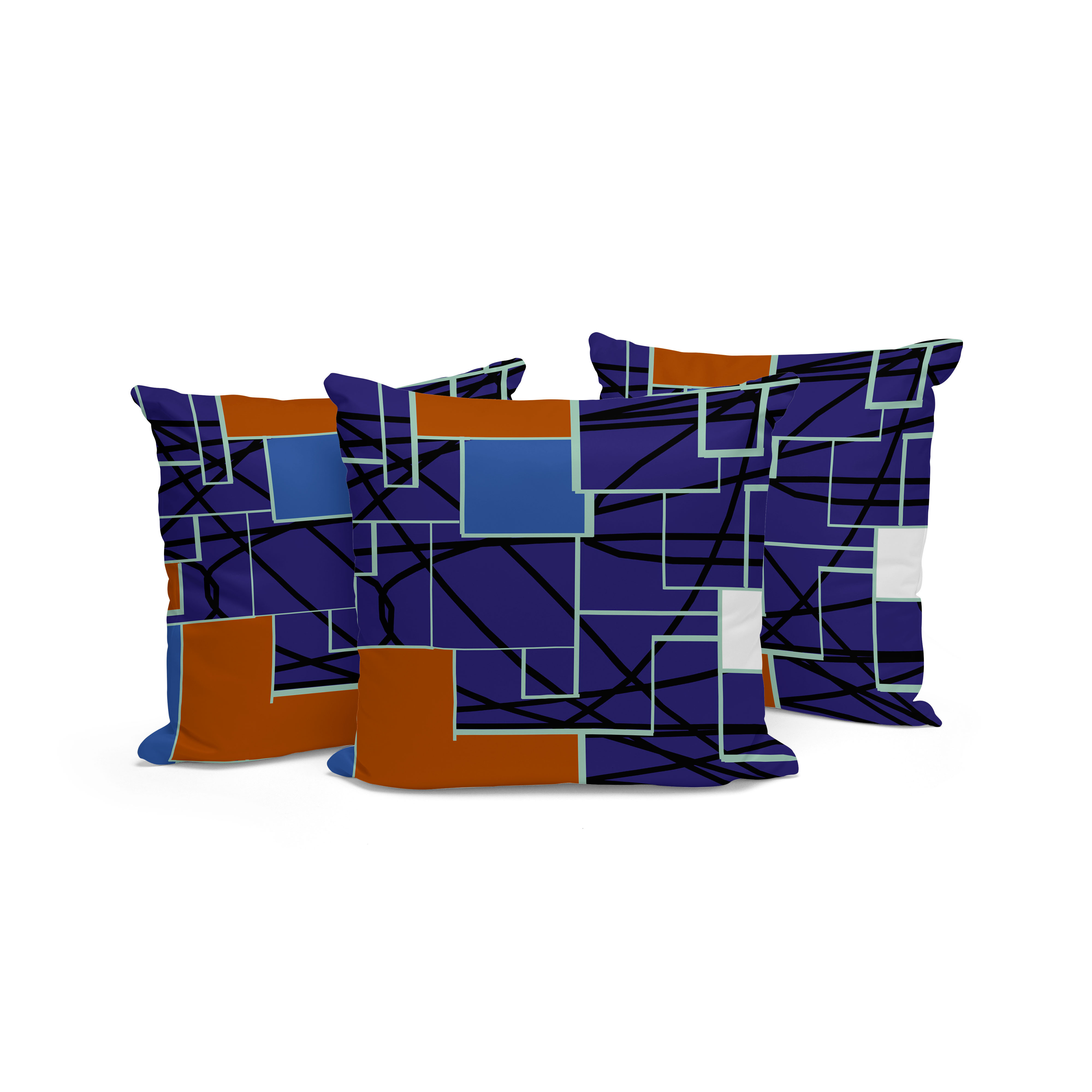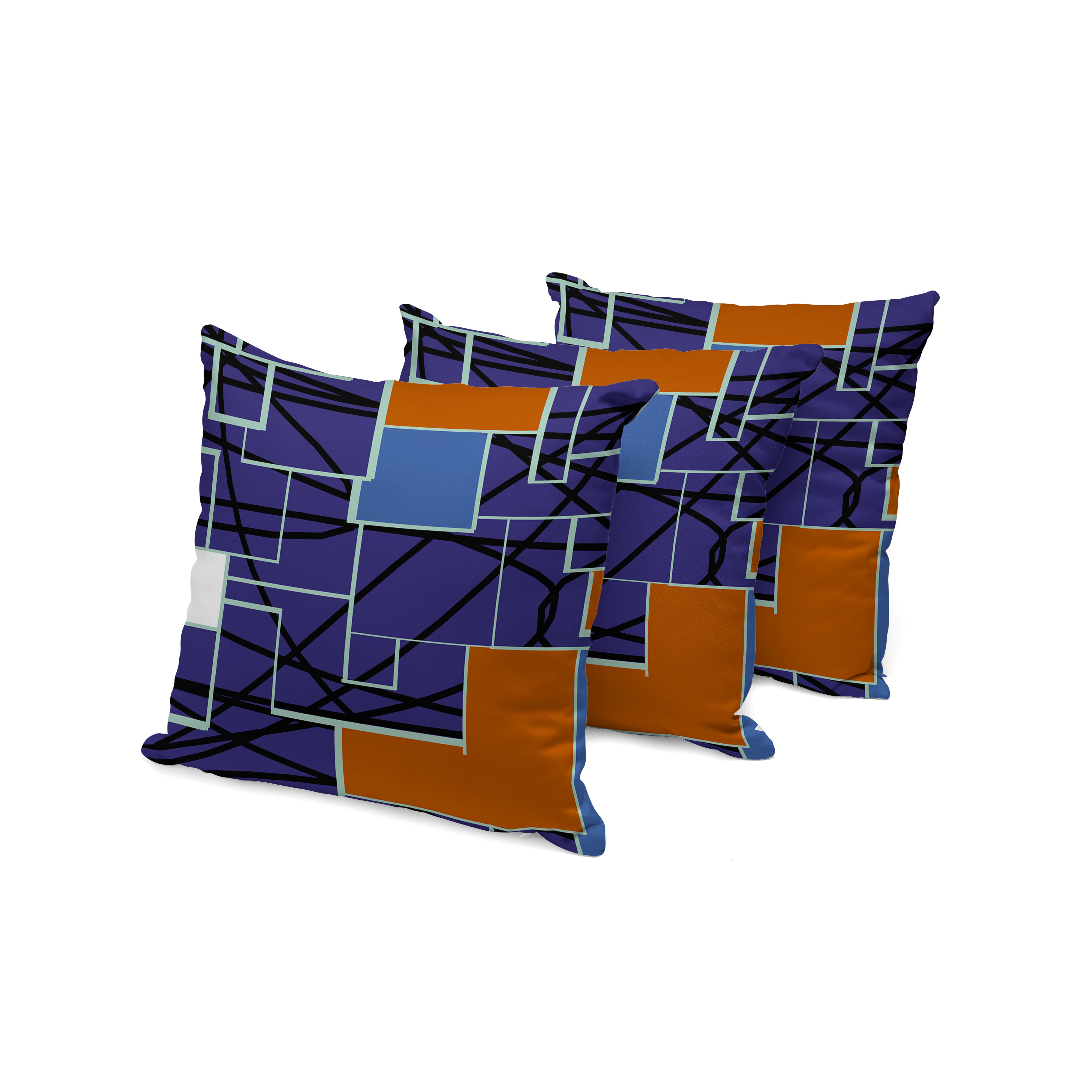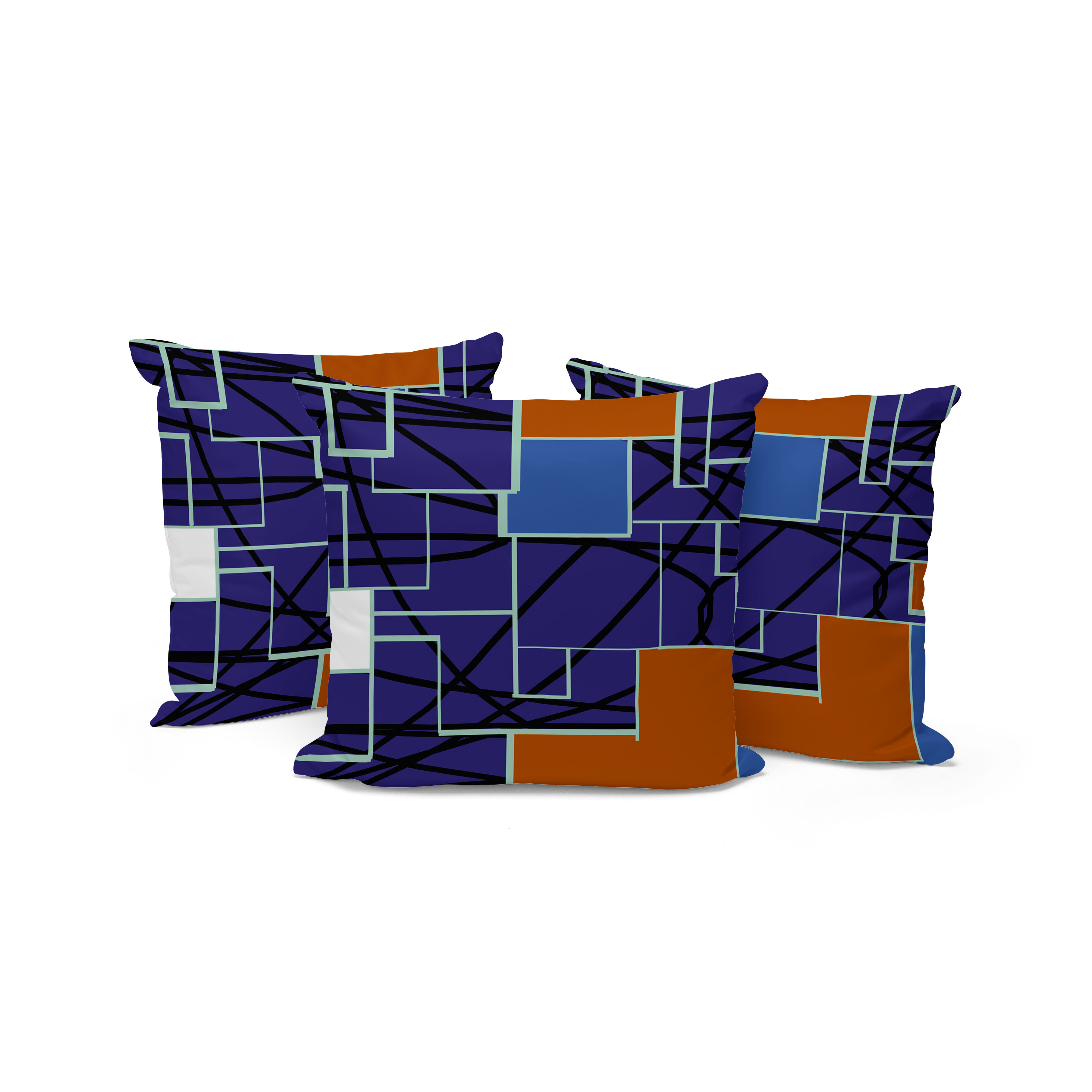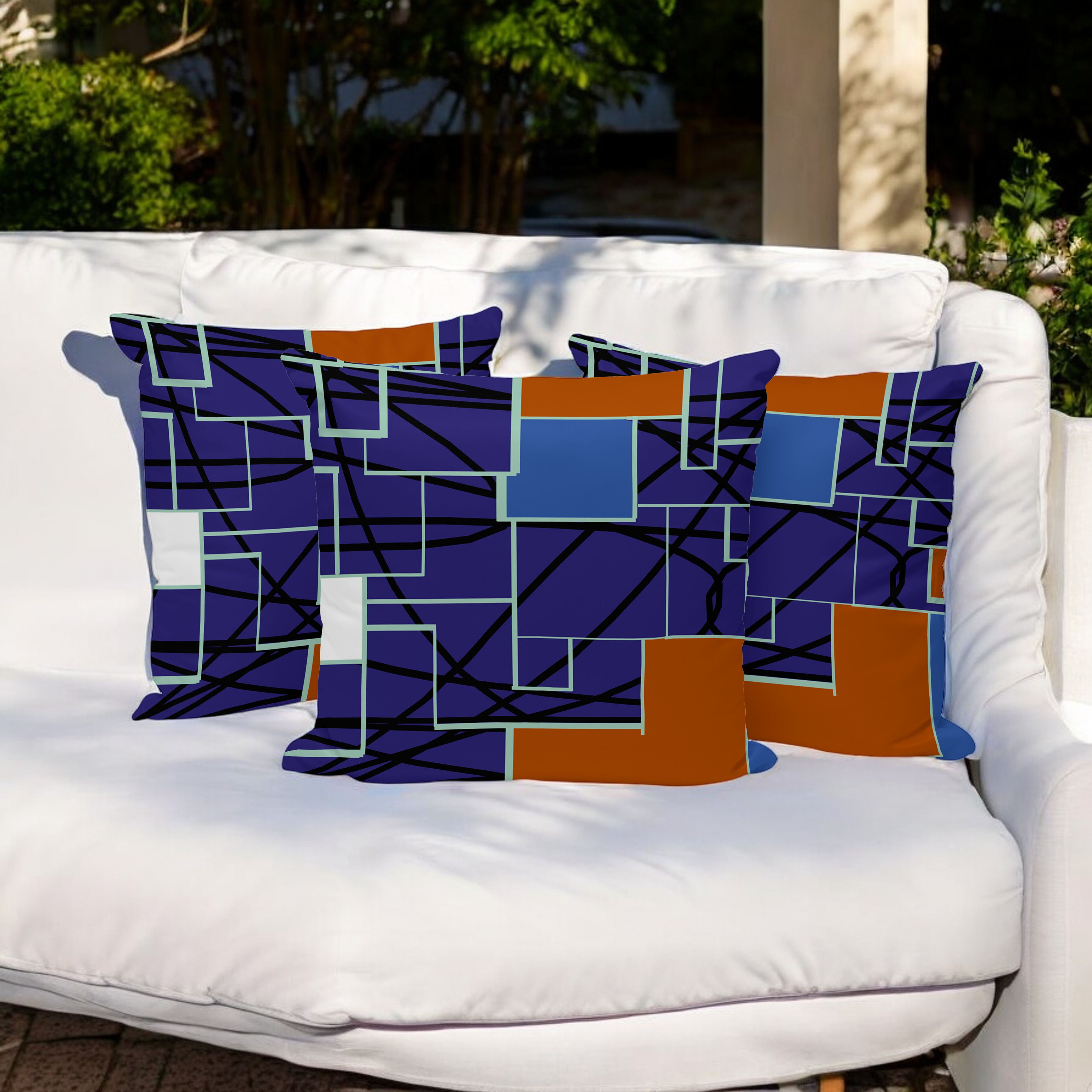 Set of Three Navy Blue Abstract Indoor Outdoor Throw Pillow