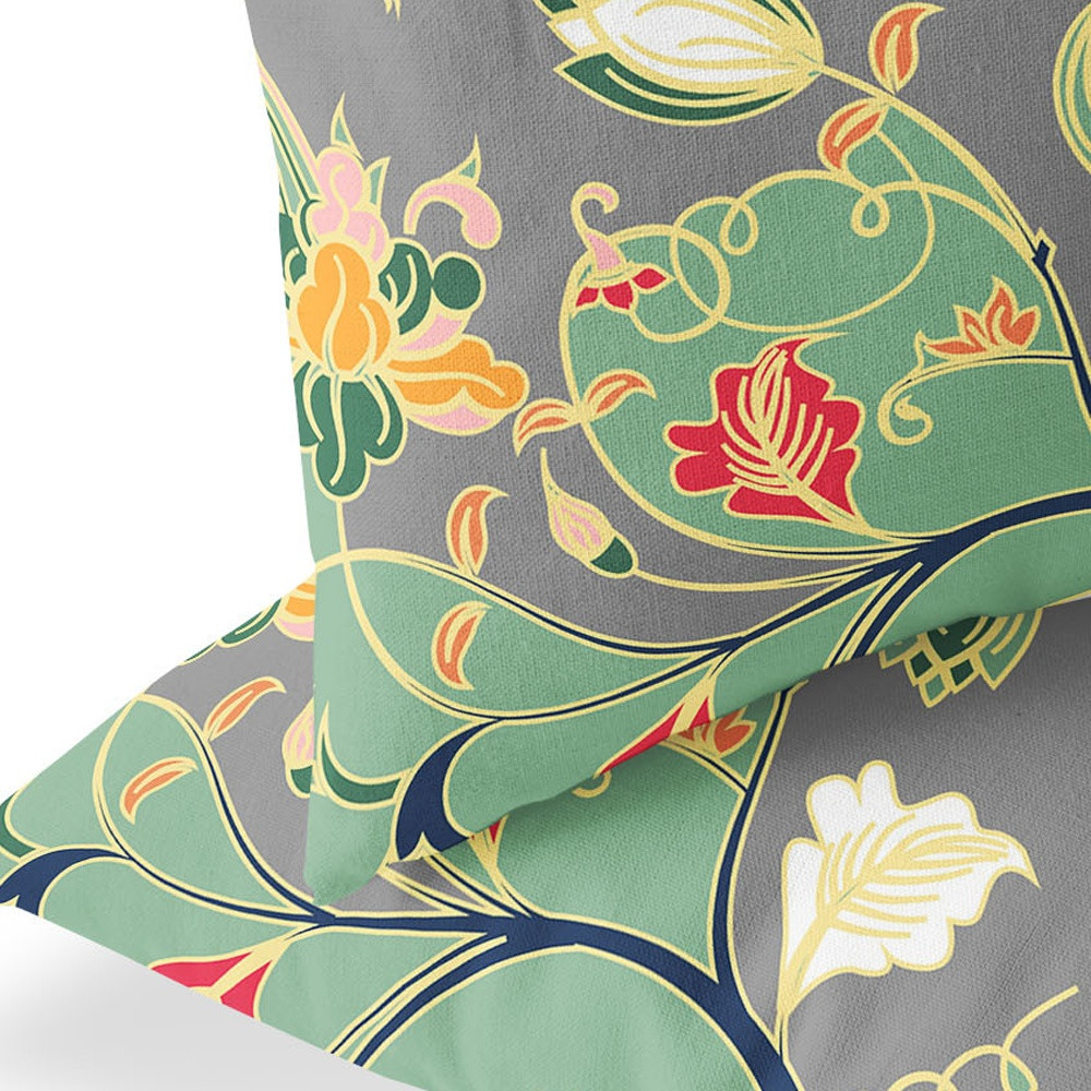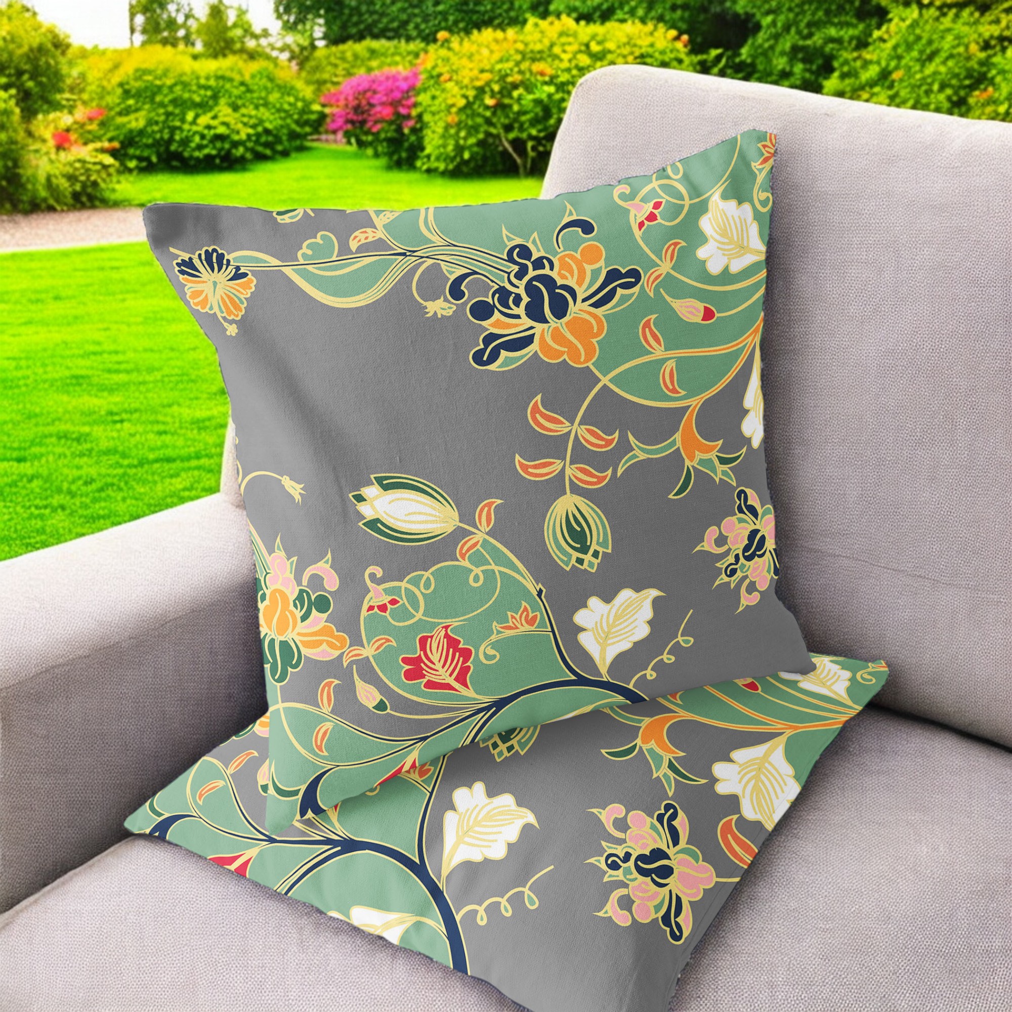 Carnation Garden Indoor/Outdoor Set of 2 Pillows in Orange Green on Gray