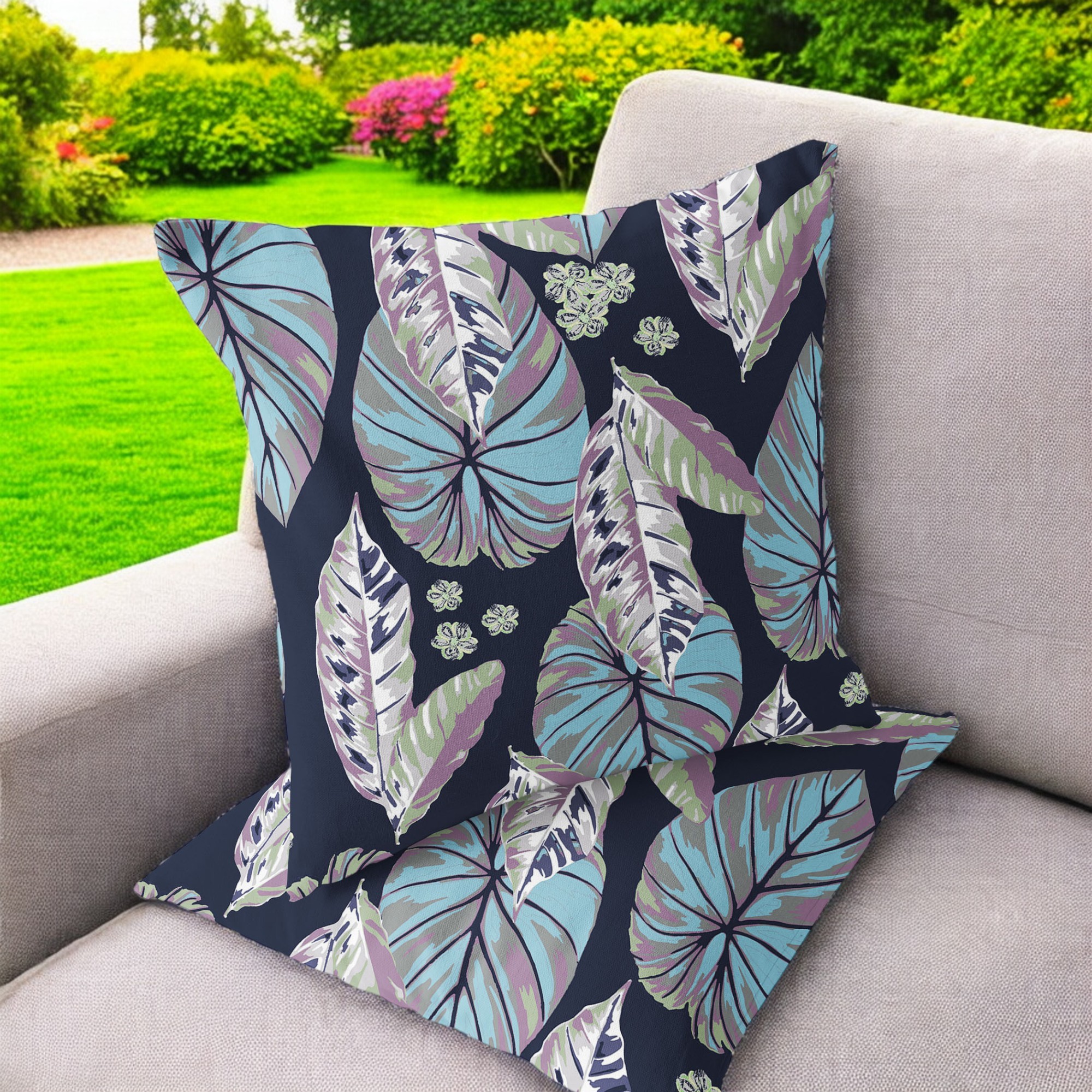 Set of Two Blue Botanical Indoor Outdoor Throw Pillow