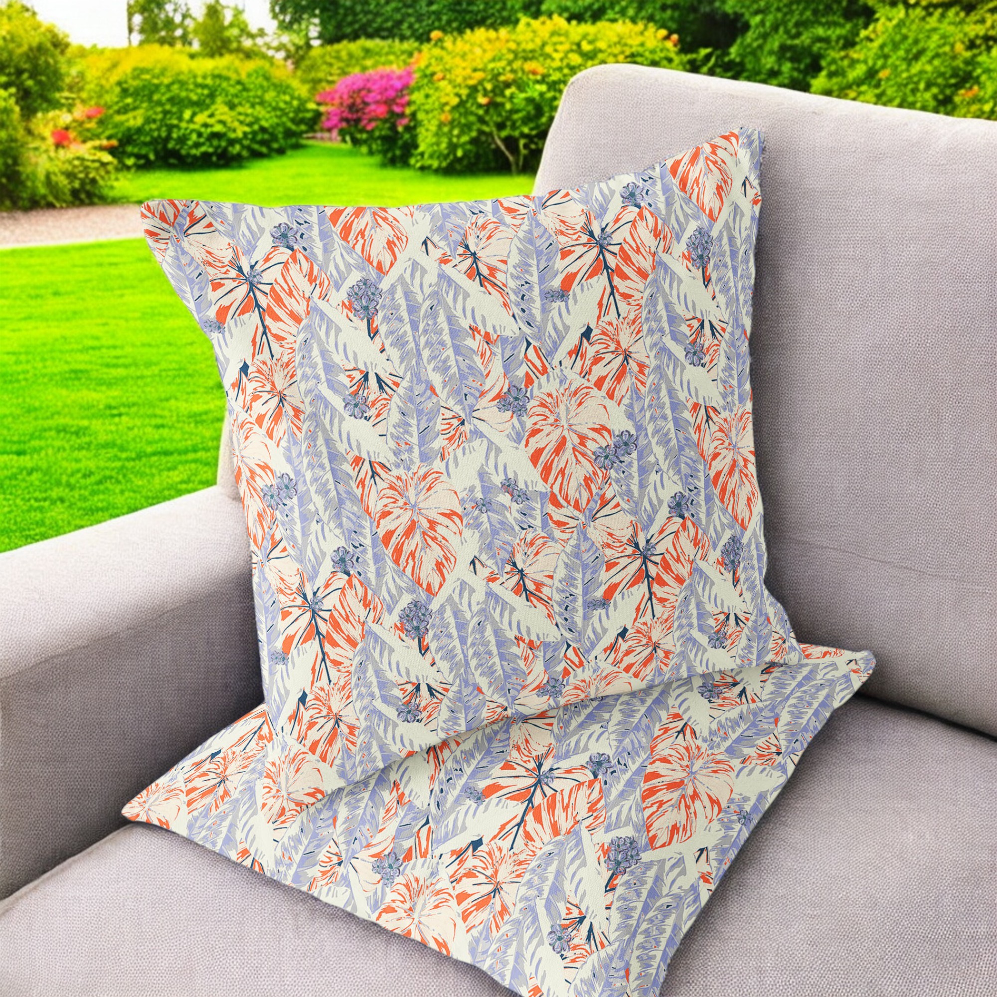 Set of Two Orange Botanical Indoor Outdoor Throw Pillow