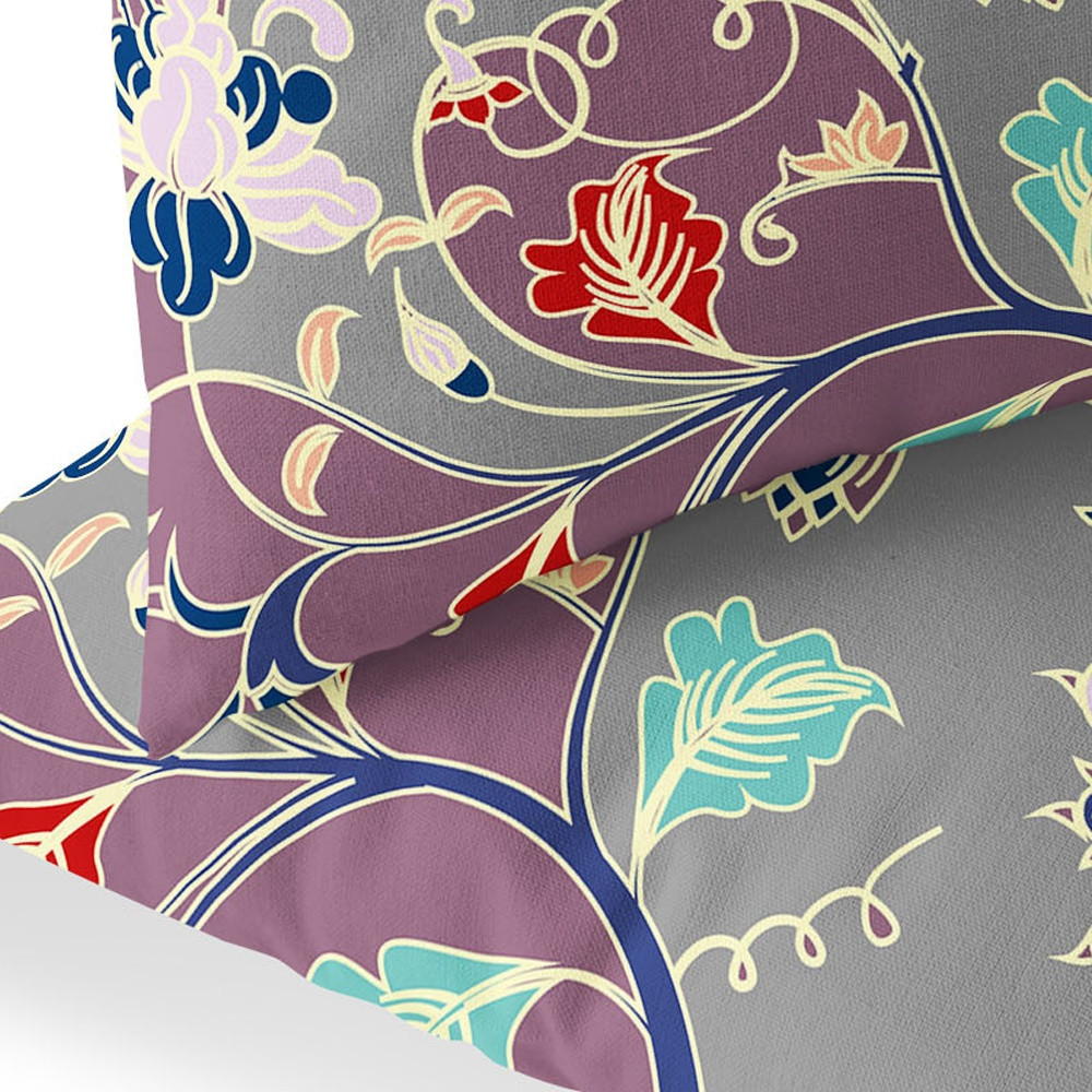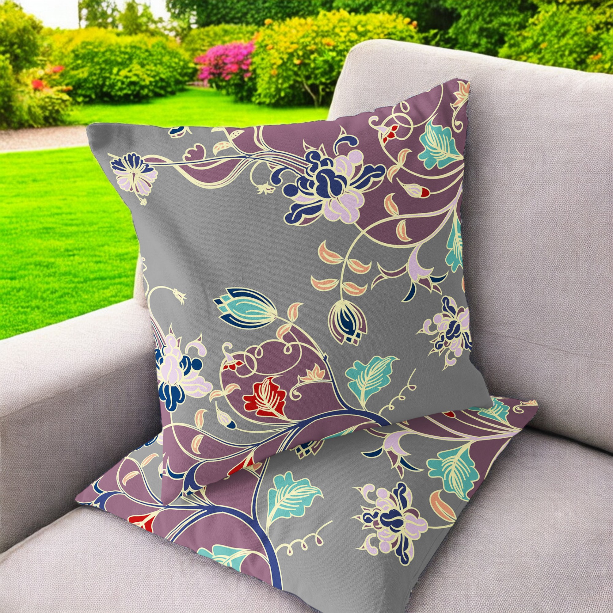 Carnation Vines Indoor/Outdoor Set of 2 Pillows in Purple On Gray