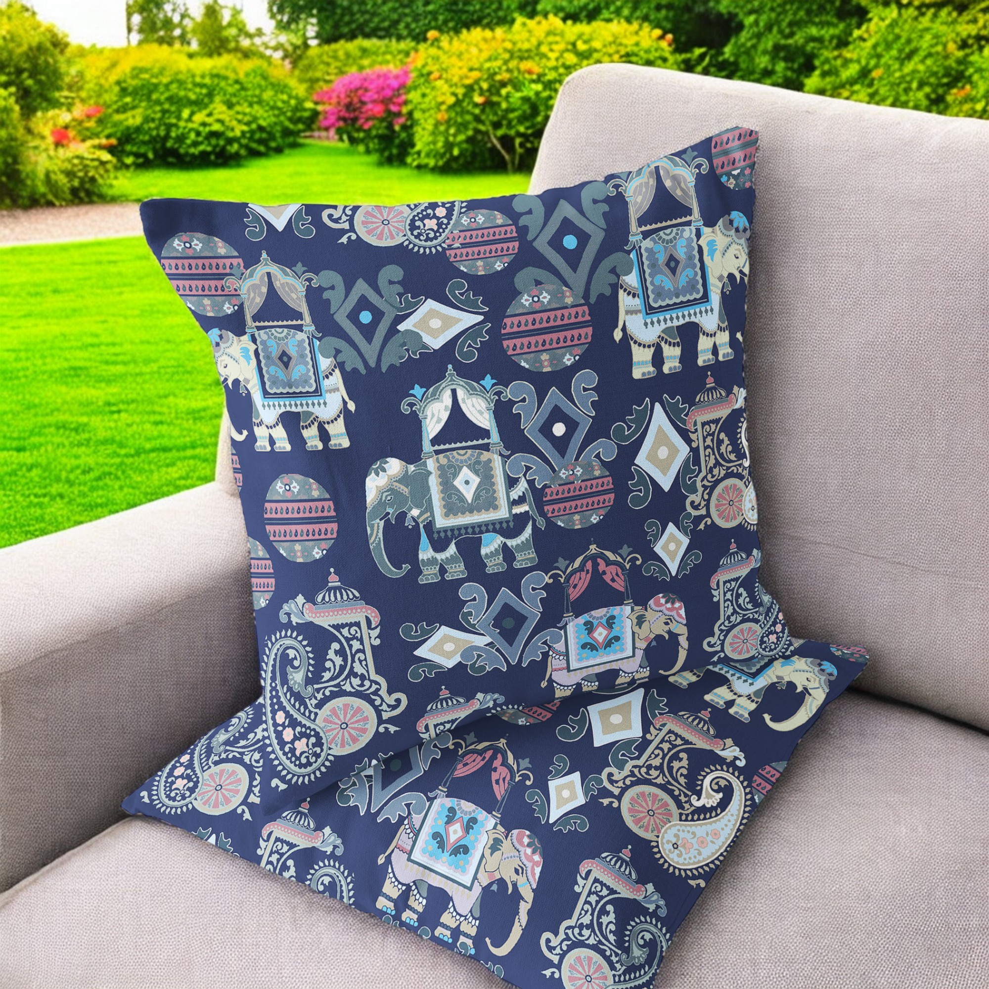 Elephant Howdah Indoor/Outdoor Set of 2 Pillows in Blue Gray