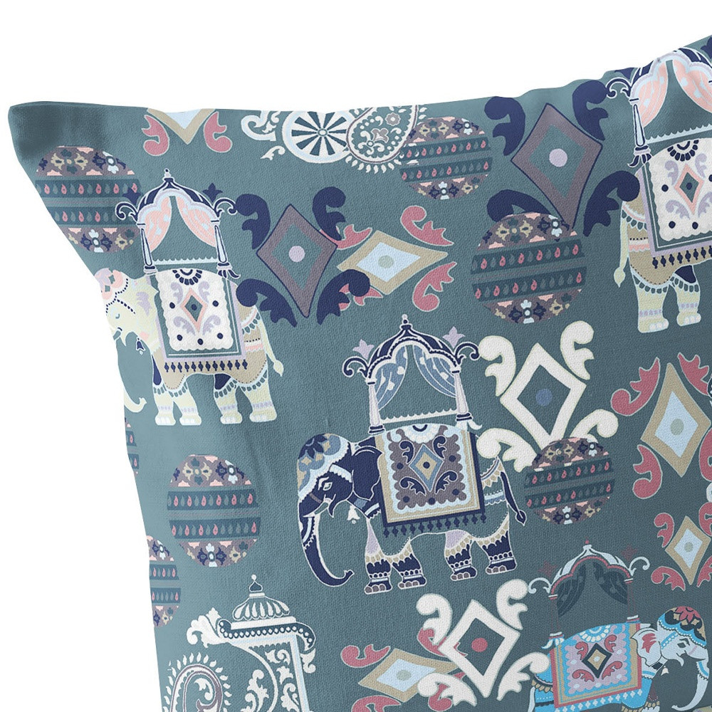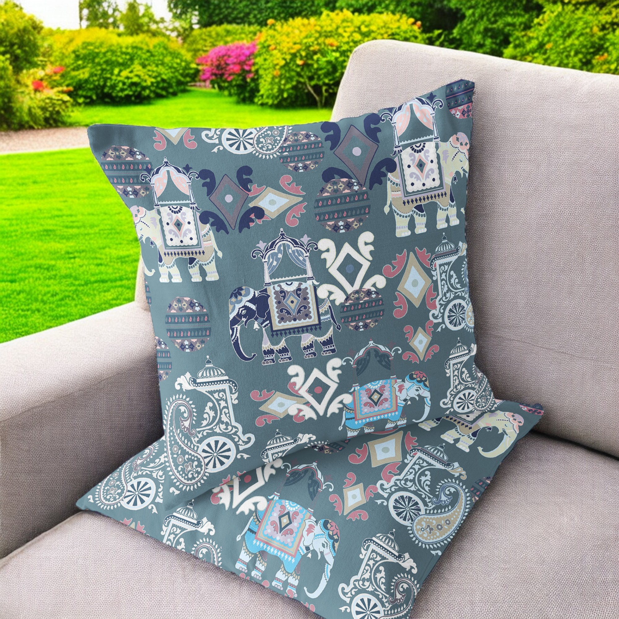 Elephant Howdah Indoor/Outdoor Set of 2 Pillows in Gray White